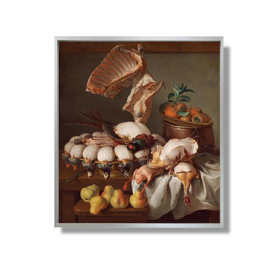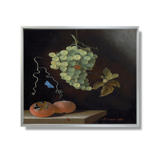 Still Life with a Hanging Bunch of Grapes, Two Medlars, and a Butterfly - Adriaen Coorte