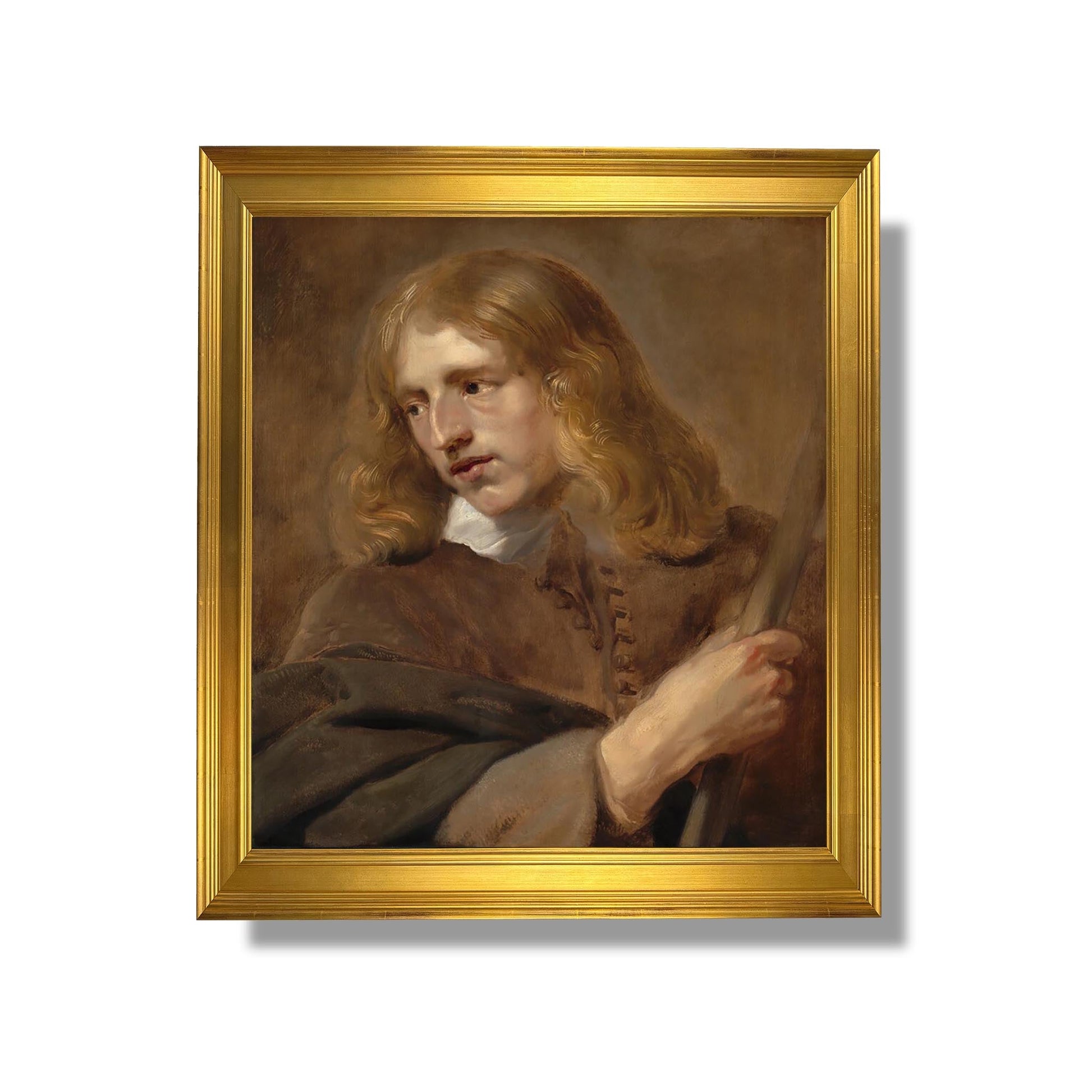 „Ein junger Mann mit einem Stab“ von Pieter Claesz Soutman ist ein ikonisches Werk aus dem 17. Jahrhundert, das das Talent des niederländischen Malers im Porträt-Genre veranschaulicht. Dieses Gemälde zeigt einen jungen Mann, elegant und selbstbewusst, der einen Stock hält, ein Symbol der Macht und Autorität. Soutmans Meisterschaft bei der Darstellung von Texturen und Details, insbesondere bei Kleidung und Accessoires, ist ein Beweis für sein technisches Können. Durch den subtilen Einsatz von Licht und Schatten entsteht eine Atmosphäre, die sowohl intim als auch feierlich ist und den Betrachter einlädt, über die Persönlichkeit des Motivs nachzudenken. Dieses Werk verkörpert die Werte der Zeit und vermischt Ästhetik und Symbolik.