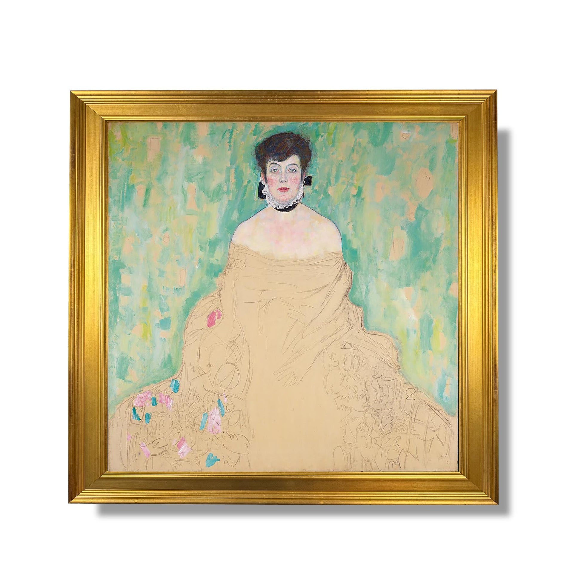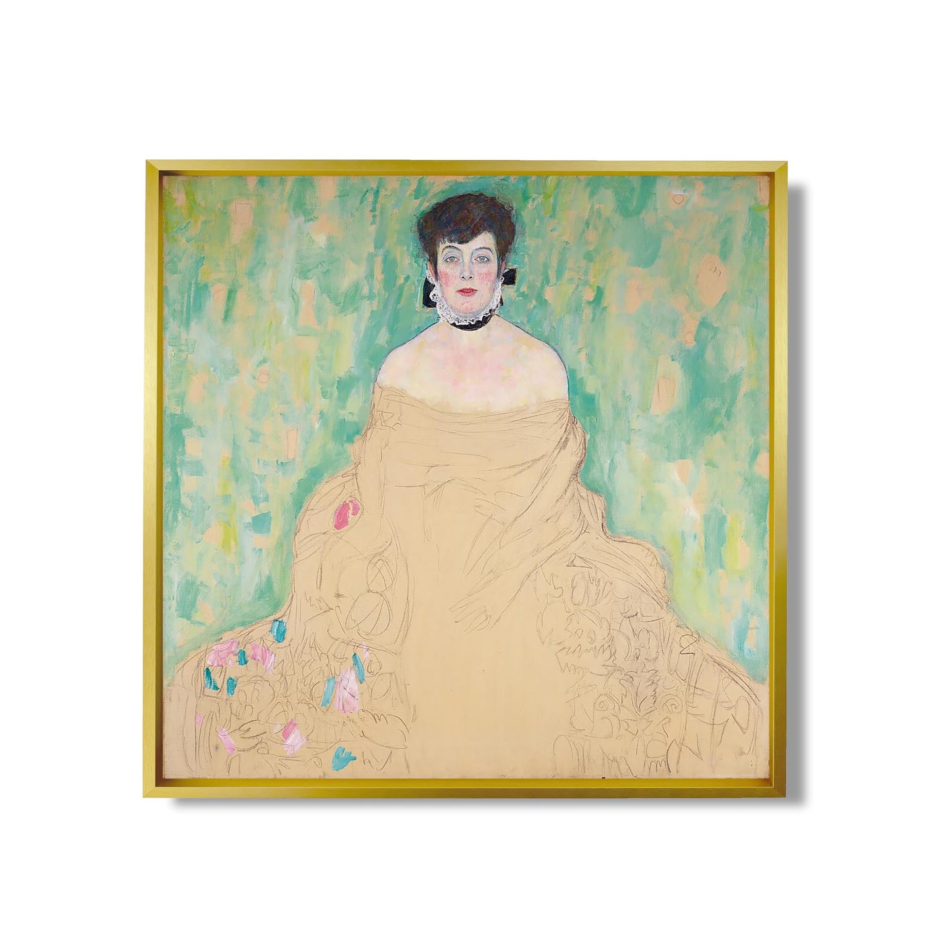 Amalie Zuckerkandl, Modell und Muse von Gustav Klimt, verkörpert die Eleganz und Modernität des Jugendstils. Ihr 1917 gemaltes Porträt zeigt eine Frau, die zugleich stark und zart ist, eingehüllt in florale Motive und kräftige Farben, die charakteristisch für Klimts Stil sind. Das Werk illustriert nicht nur Amalies körperliche Schönheit, sondern auch ihren Intellekt und ihre lebhafte Persönlichkeit. Durch den Einsatz von Vergoldungstechniken und unterschiedlichen Texturen schafft Klimt eine intime Atmosphäre und zollt der Komplexität seines Modells Tribut. Dieses Gemälde zeugt von der künstlerischen und persönlichen Beziehung zwischen dem Künstler und seiner Muse.