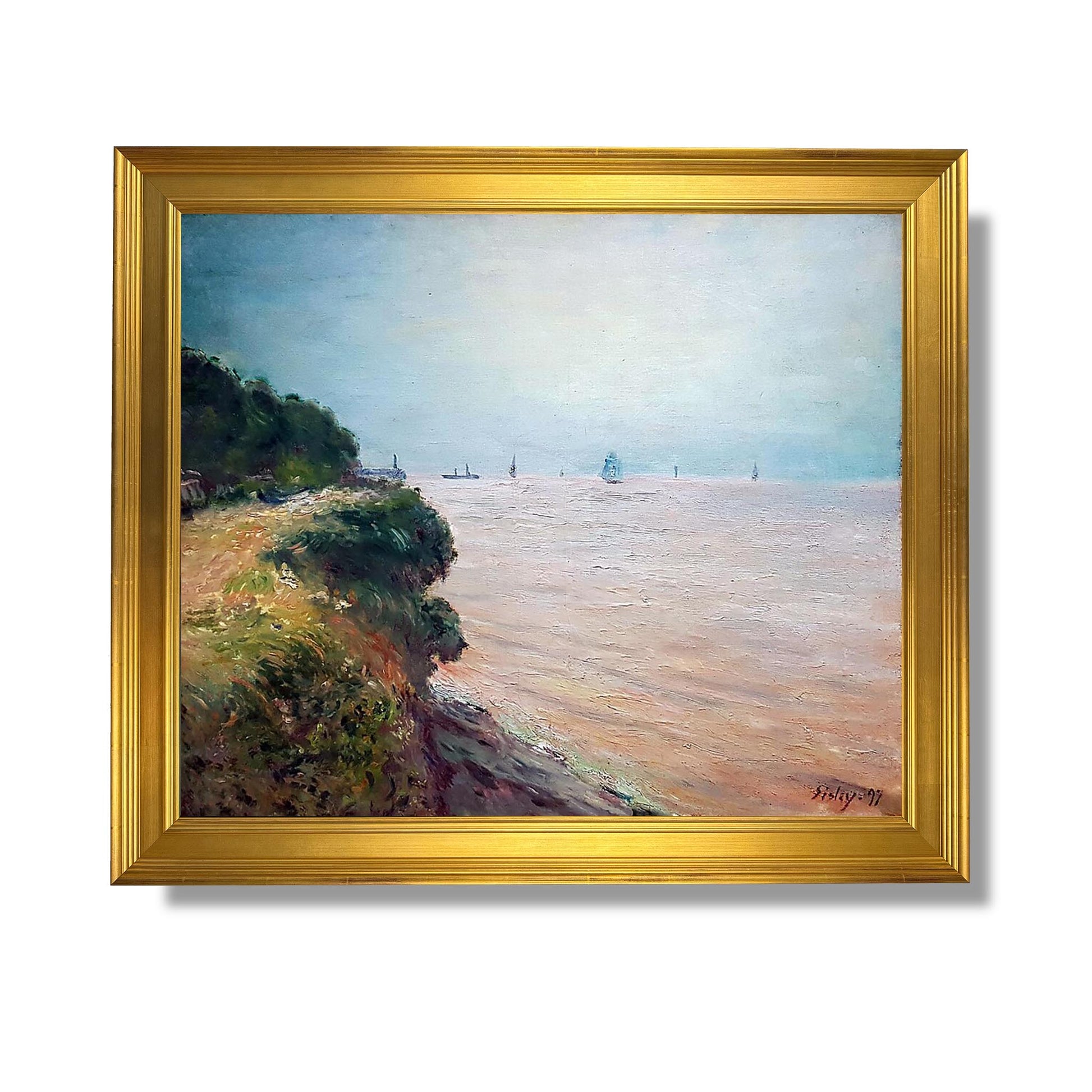 „Langland Bay“ ist ein ikonisches Werk des impressionistischen Malers Alfred Sisley aus dem Jahr 1897. Dieses Gemälde fängt die heitere Schönheit der walisischen Küste ein, wo das Licht auf dem ruhigen Wasser der Bucht spielt. Sisley, bekannt für seine meisterhafte Landschaftsmalerei, verwendet zarte Farbtupfer, um die friedliche Atmosphäre und die umgebende Natur hervorzurufen. Blau- und Grüntöne verschmelzen harmonisch und erzeugen ein Gefühl von Tiefe und Ruhe. Dieses Werk veranschaulicht perfekt Sisleys Engagement für die Darstellung von Licht und dem flüchtigen Augenblick, Merkmale des Impressionismus.