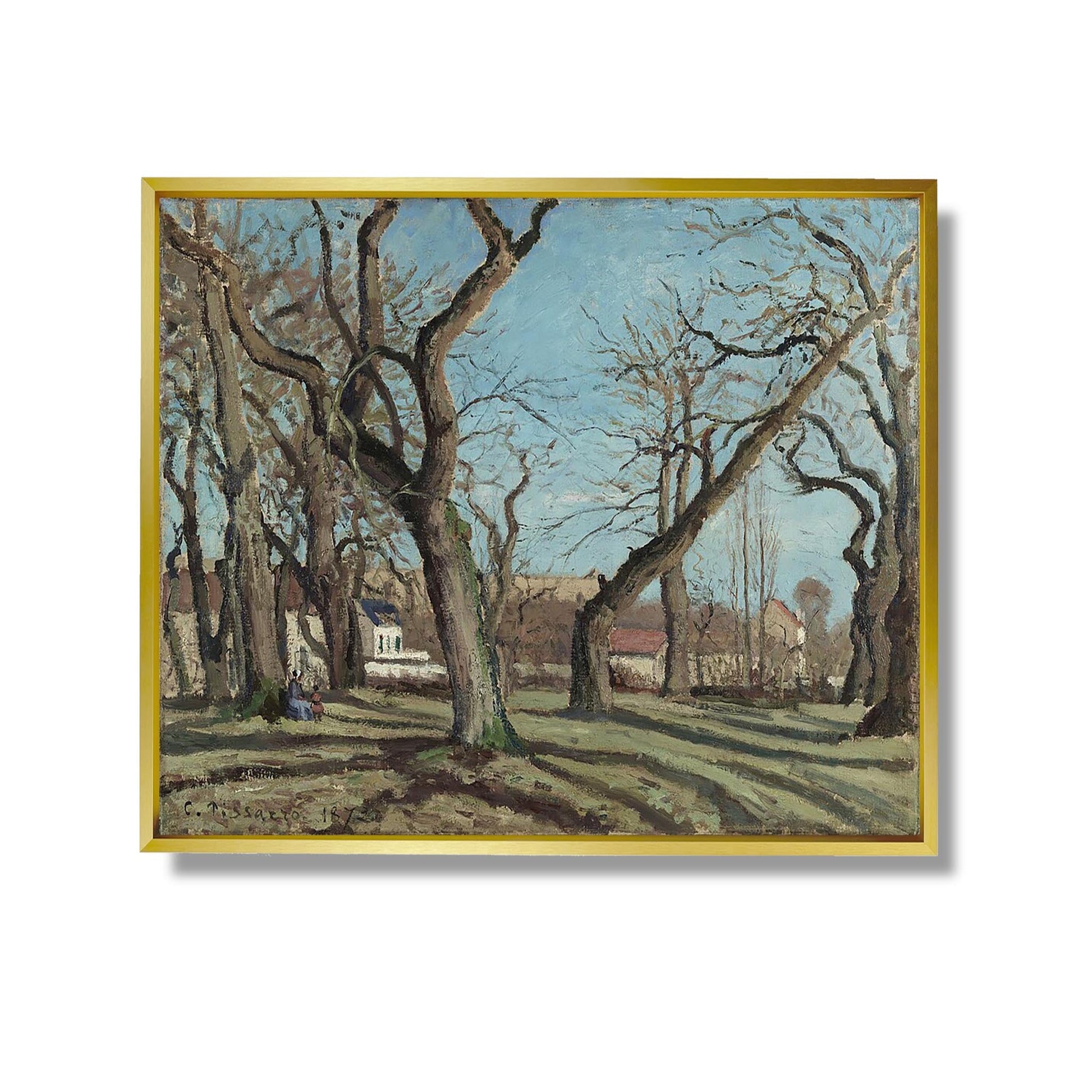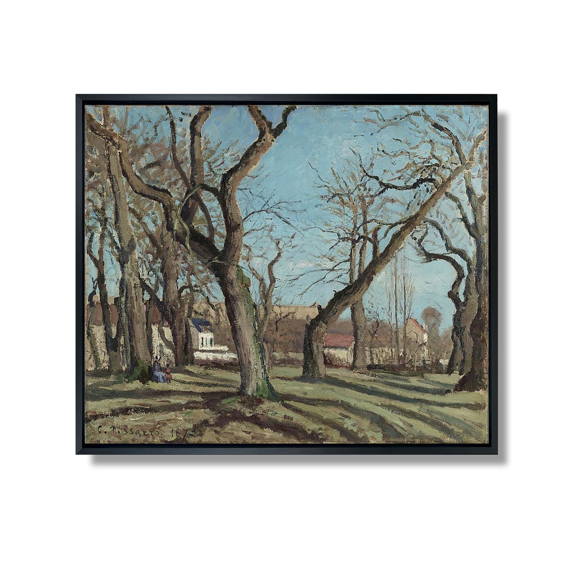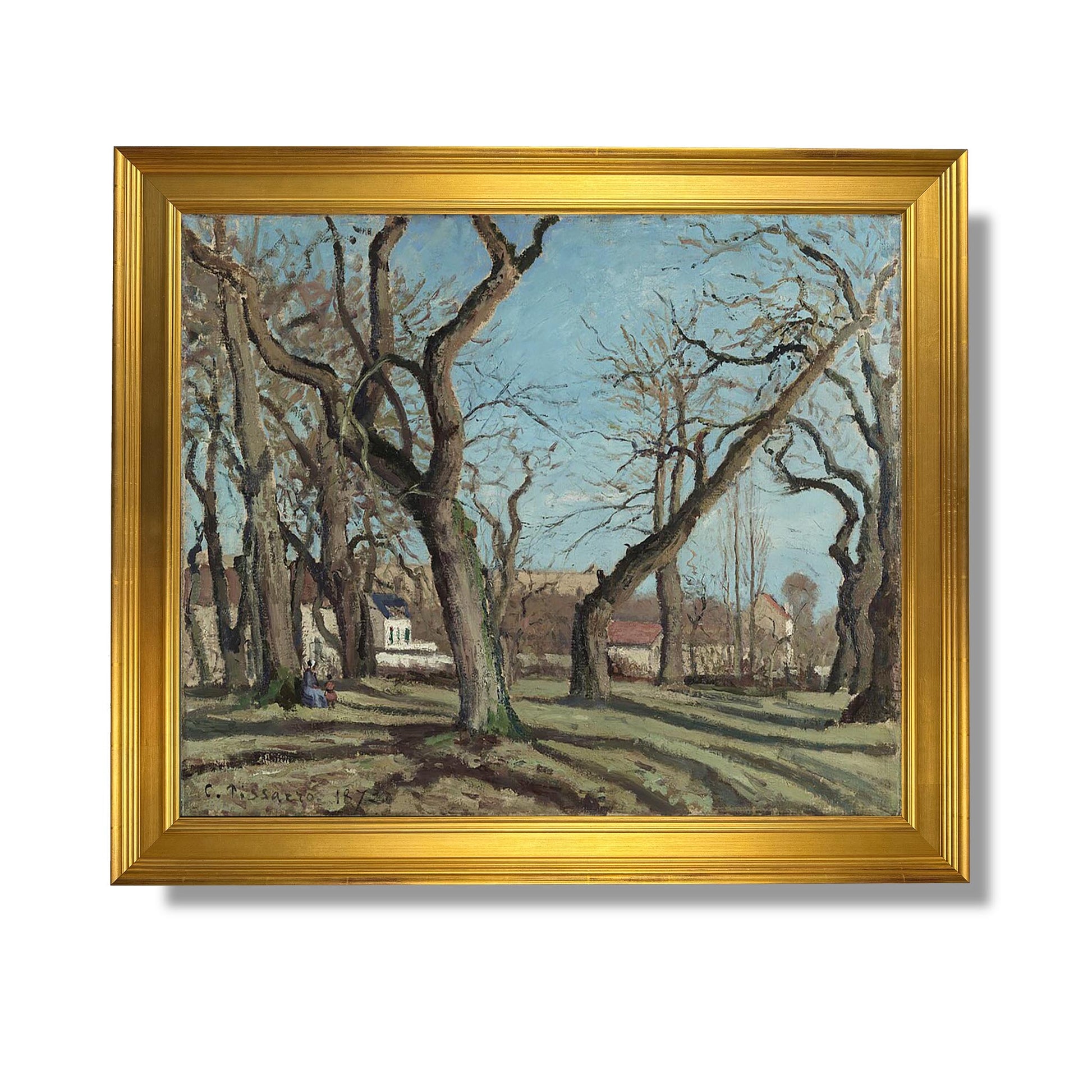 „Kastanienwald bei Louveciennes“ ist ein emblematisches Werk von Camille Pissarro aus dem Jahr 1879. Dieses Gemälde illustriert die Schönheit der Natur anhand einer für den Impressionismus typischen ländlichen Landschaft. Pissarro, Meister des Lichts und der Farben, fängt die Nuancen des Laubes und die Sanftheit der Atmosphäre ein. Die majestätischen, grünen Kastanienbäume stehen im Herzen einer friedlichen Szenerie und laden zur Kontemplation ein. Mit schnellen, lebendigen Pinselstrichen vermittelt der Künstler ein Gefühl von Bewegung und Leben und feiert die Einfachheit und Schönheit des Alltags.