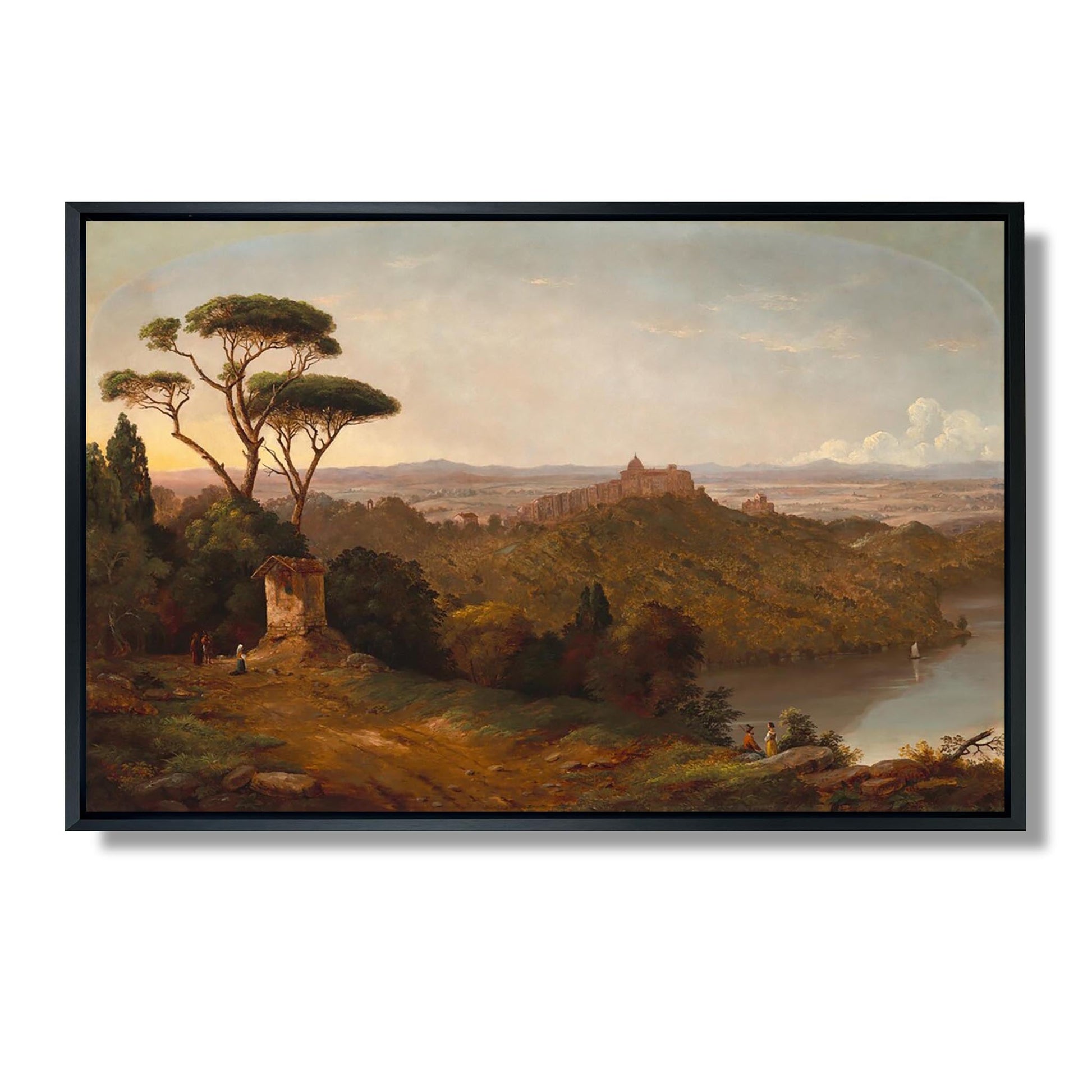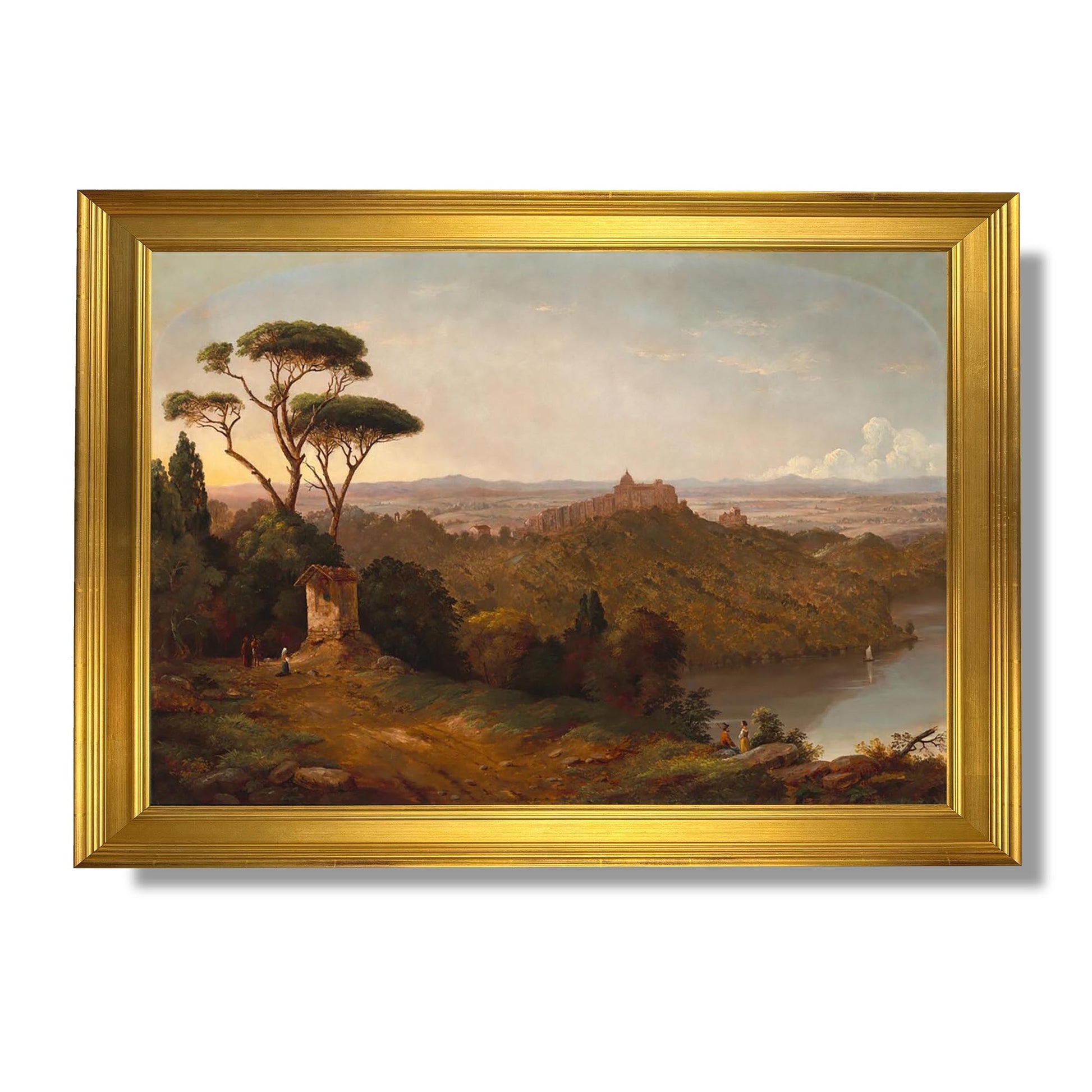 „Schloss Gondolfo, Albaner See, Italien“ ist ein ikonisches Werk von Christopher Pearse Cranch, einem amerikanischen Künstler des 19. Jahrhunderts. Als Maler und Dichter fängt Cranch die heitere Schönheit der italienischen Landschaft mit romantischem Gespür ein. In diesem Gemälde stellt er das Schloss Gondolfo mit Blick auf den Albaner See dar, eingehüllt in sanftes Licht und eine friedliche Atmosphäre. Die lebendigen Farben und kleinsten Details zeugen von seiner Bewunderung für die Natur. Dieses Werk veranschaulicht nicht nur sein technisches Talent, sondern auch seinen Wunsch, Harmonie zwischen dem Menschen und seiner Umwelt zu vermitteln.