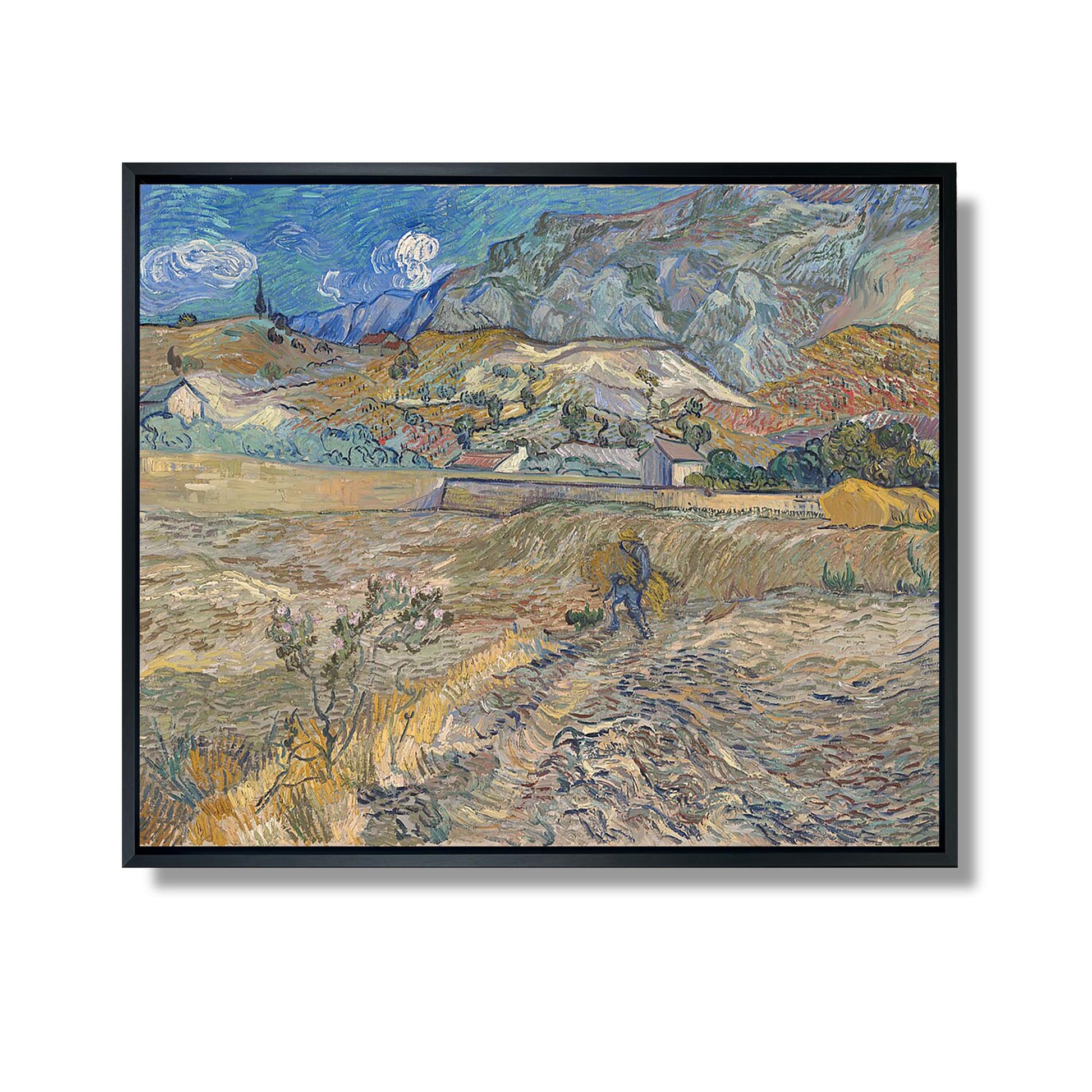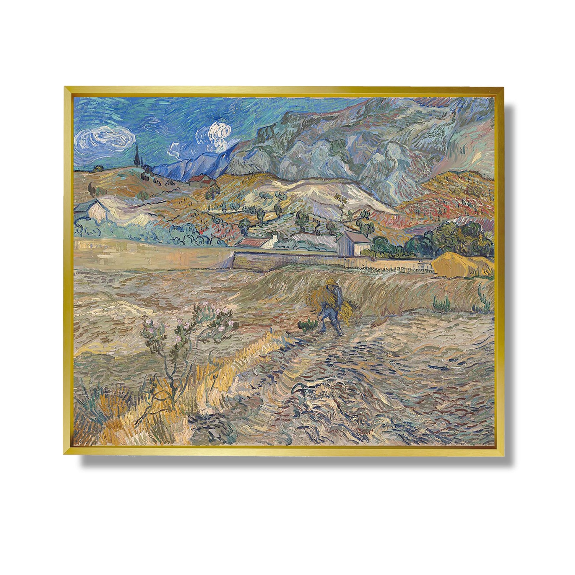 „Weizenfeld mit Bauer“ und „Landschaft bei Saint-Rémy“ sind zwei ikonische Werke von Vincent Van Gogh, die seine tiefe Verbundenheit mit der Natur und dem ländlichen Leben veranschaulichen. In „Eingezäuntes Weizenfeld“ fängt Van Gogh die Schönheit der goldenen Felder ein, auf denen ein Bauer arbeitet, und symbolisiert damit die Harmonie zwischen Mensch und Erde. Die leuchtenden Farben und dynamischen Pinselstriche spiegeln ihre intensiven Emotionen wider. „Landschaft in Saint-Rémy“ wiederum erinnert an die Ruhe provenzalischer Landschaften mit wirbelndem Himmel und üppigen Feldern. Diese Werke zeugen von seinem künstlerischen Genie und seiner Suche nach innerem Frieden.