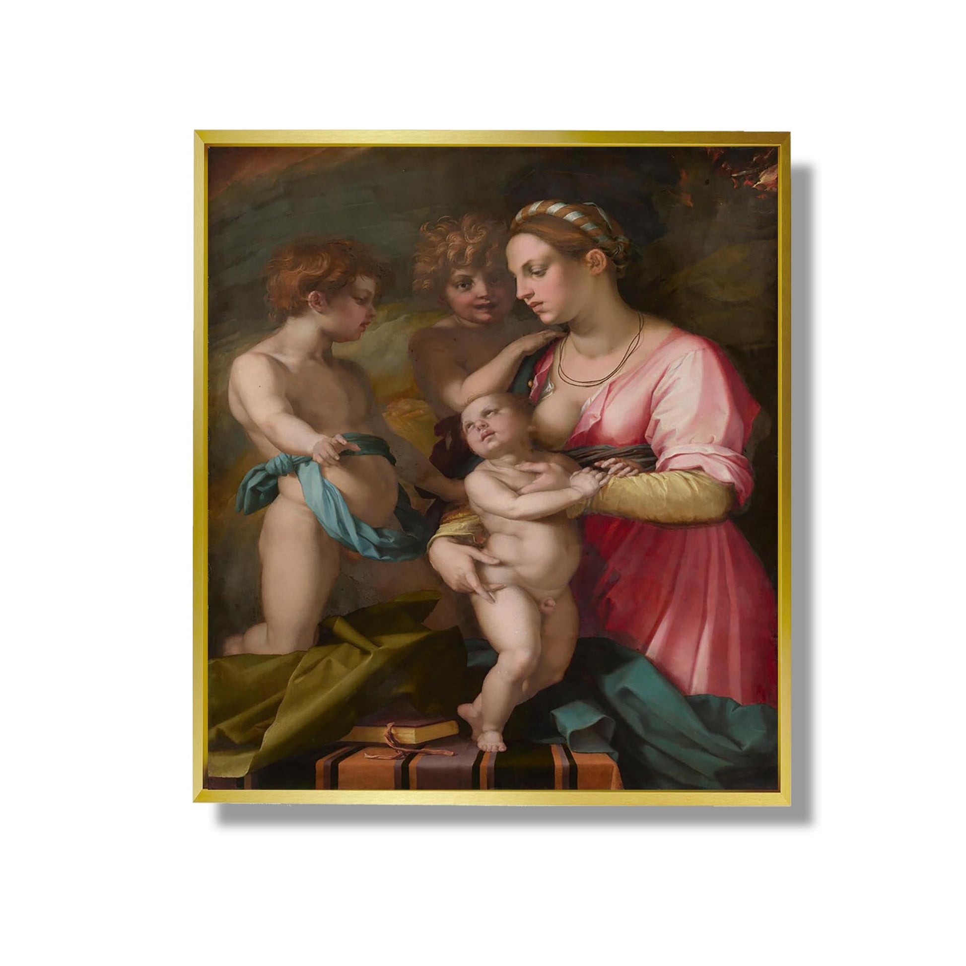 „Charity“ von Andrea del Sarto ist ein ikonisches Werk der italienischen Renaissance, das zwischen 1515 und 1520 entstand. Dieses Gemälde stellt die Nächstenliebe in Form einer majestätischen Frau dar, umgeben von Kindern, und symbolisiert Liebe und Mitgefühl. Die Hauptfigur verkörpert mit ihrem sanften und beschützenden Blick Güte. Warme Farben und subtiles Licht heben die Details der Vorhänge und Gesichter hervor. Das Werk veranschaulicht die technische Meisterschaft Andrea del Sartos, verbindet Harmonie und Emotion und spiegelt zugleich die humanistischen Werte seiner Zeit wider. Es ist ein Fest der Menschlichkeit und Großzügigkeit.