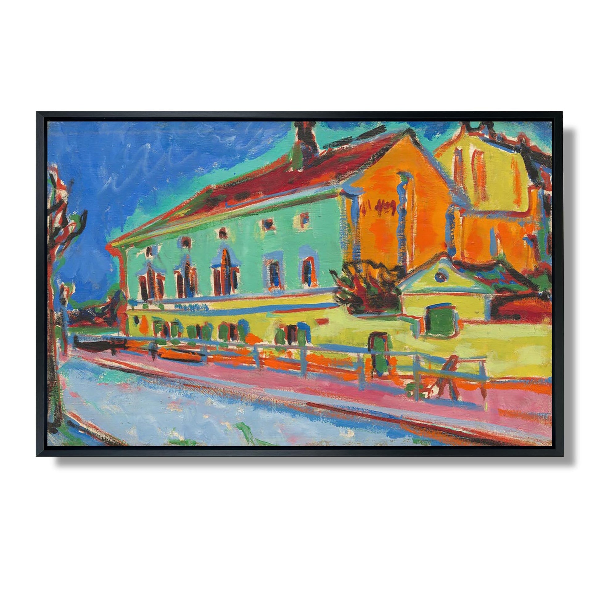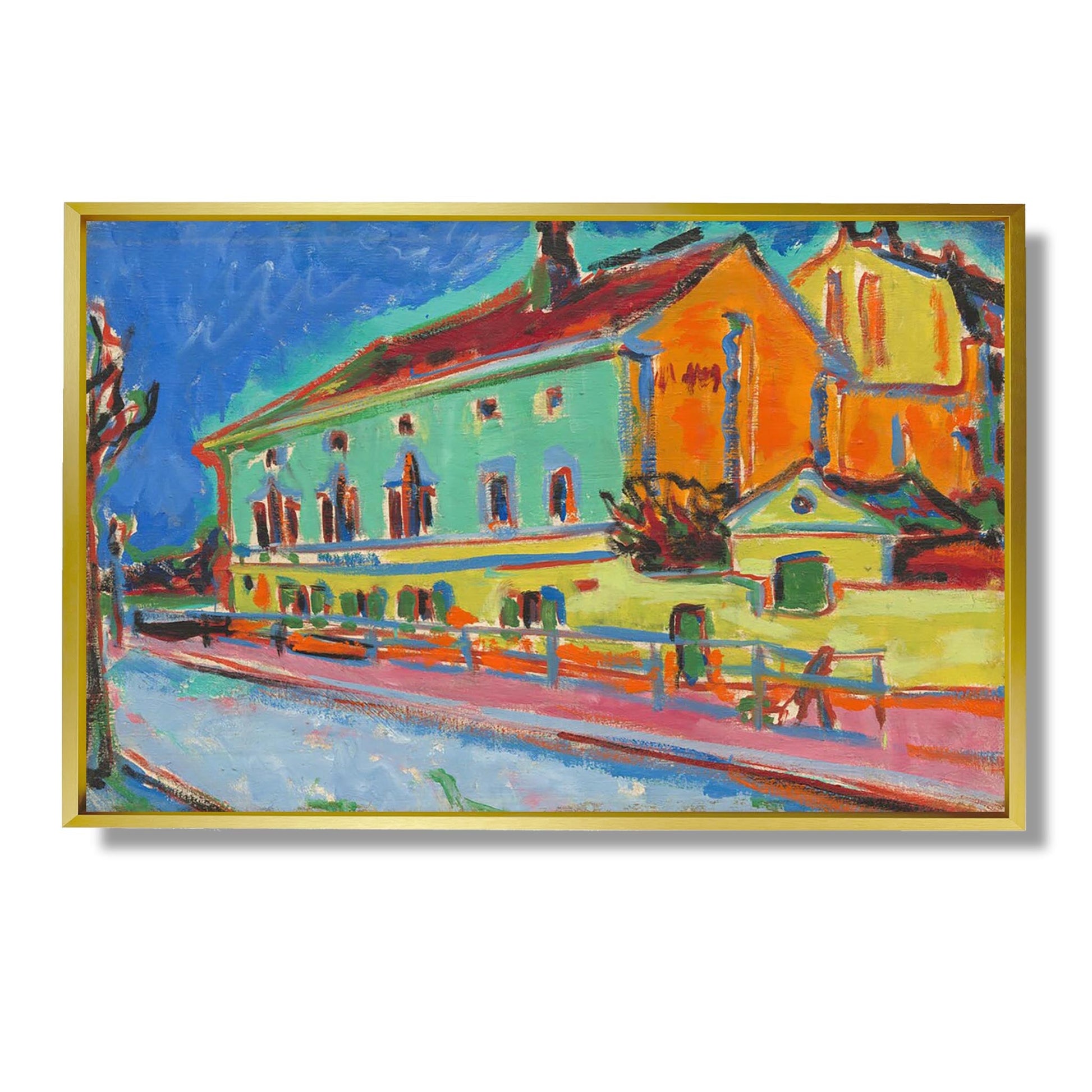 „Tanzsaal Bellevue“ ist ein ikonisches Werk von Ernst Ludwig Kirchner, gemalt im Jahr 1914, das die Aufregung des Berliner Nachtlebens einfängt. In diesem Gemälde stellt Kirchner einen Volksball dar, bei dem stilisierte und farbenfrohe Figuren in einem lebendigen Raum tanzen und interagieren. Kantige Linien und leuchtende Farben spiegeln die Energie und Entfremdung der Moderne wider. Der dem Expressionismus angehörende Künstler bringt mit verzerrten Formen intensive Emotionen zum Ausdruck und betont die Dualität zwischen Lebensfreude und Einsamkeit. Dieses Werk illustriert perfekt Kirchners Bestreben, die menschliche Psyche angesichts der Moderne darzustellen.
