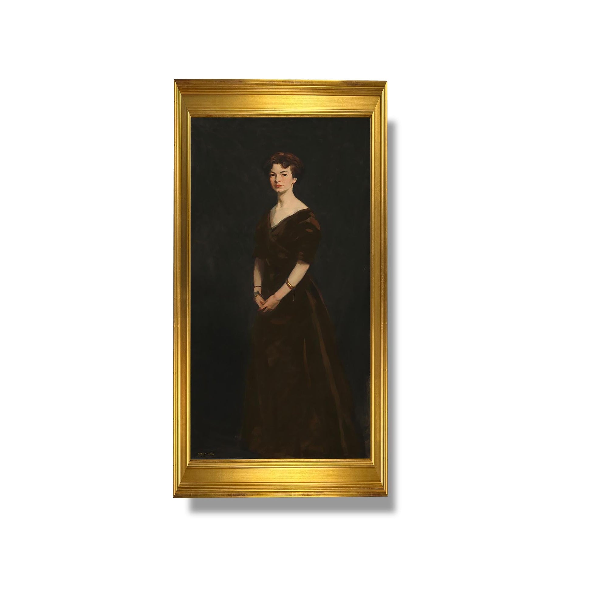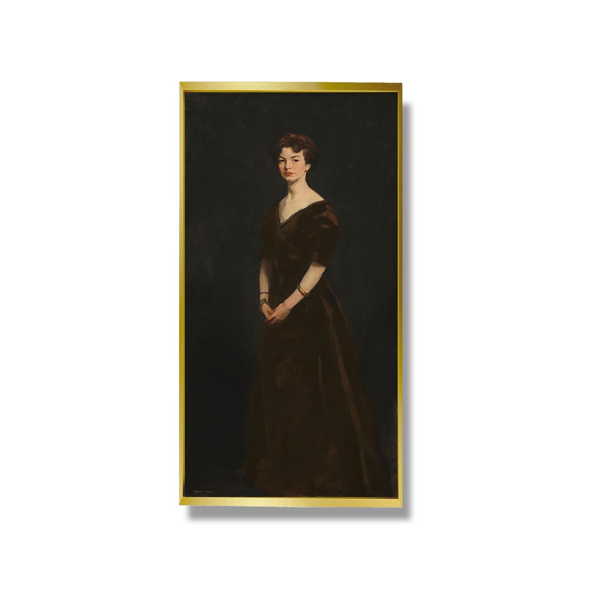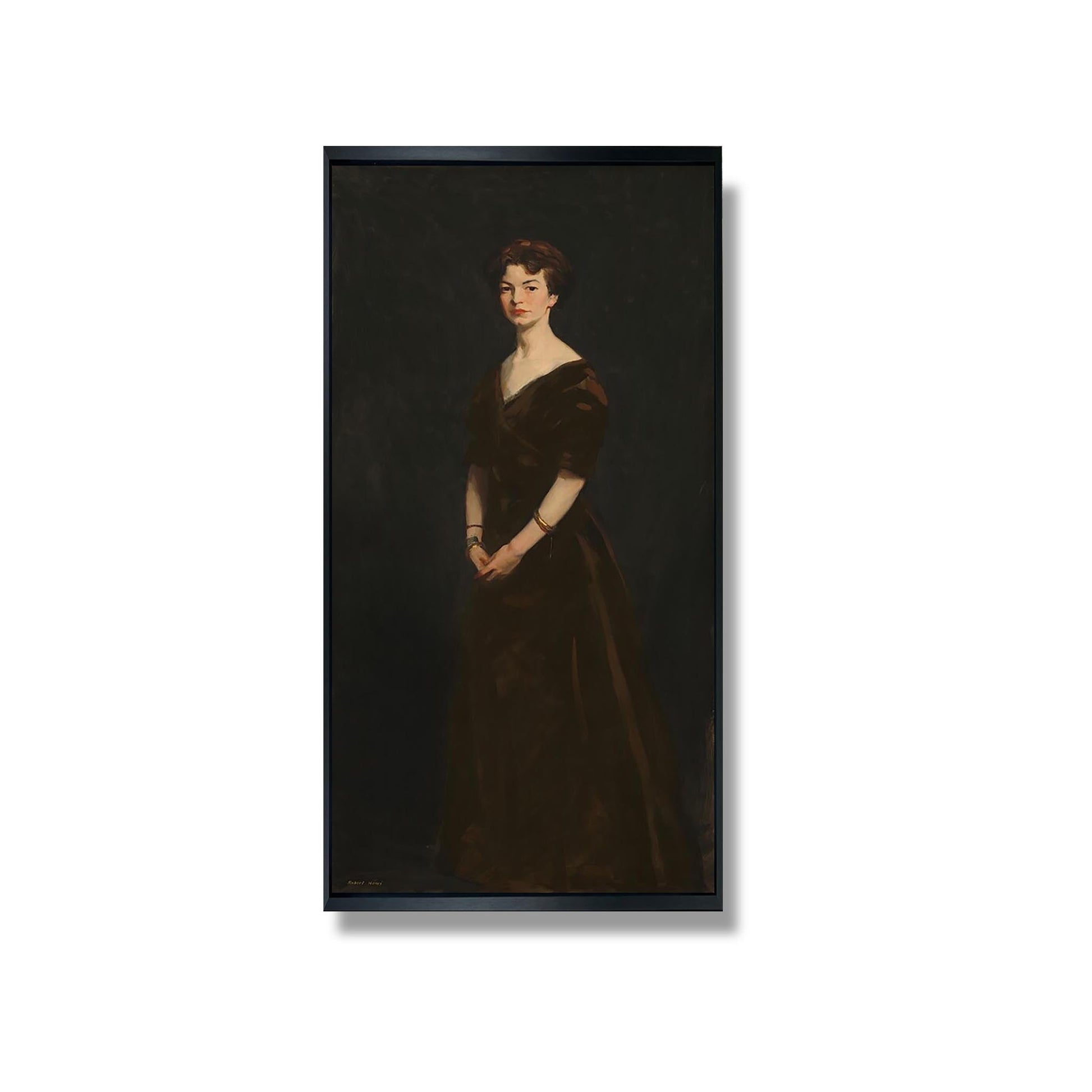 Edith Reynolds, 1910 von Robert Henri gemalt, verkörpert den lebendigen Geist der amerikanischen realistischen Bewegung. Henri, eine zentrale Figur der Ashcan School, konzentriert sich auf das alltägliche Leben und intime Porträts. In diesem Werk fängt er Ediths Persönlichkeit mit einer reichen Palette und ausdrucksstarken Pinselstrichen ein und offenbart sowohl ihre Stärke als auch ihre Verletzlichkeit. Der direkte Blick des Modells fesselt den Betrachter, während der unscharfe Hintergrund ihre Bedeutung betont. Dieses Gemälde veranschaulicht Henris Fähigkeit, über das einfache Porträt hinauszugehen und die menschliche Tiefe zu erforschen.