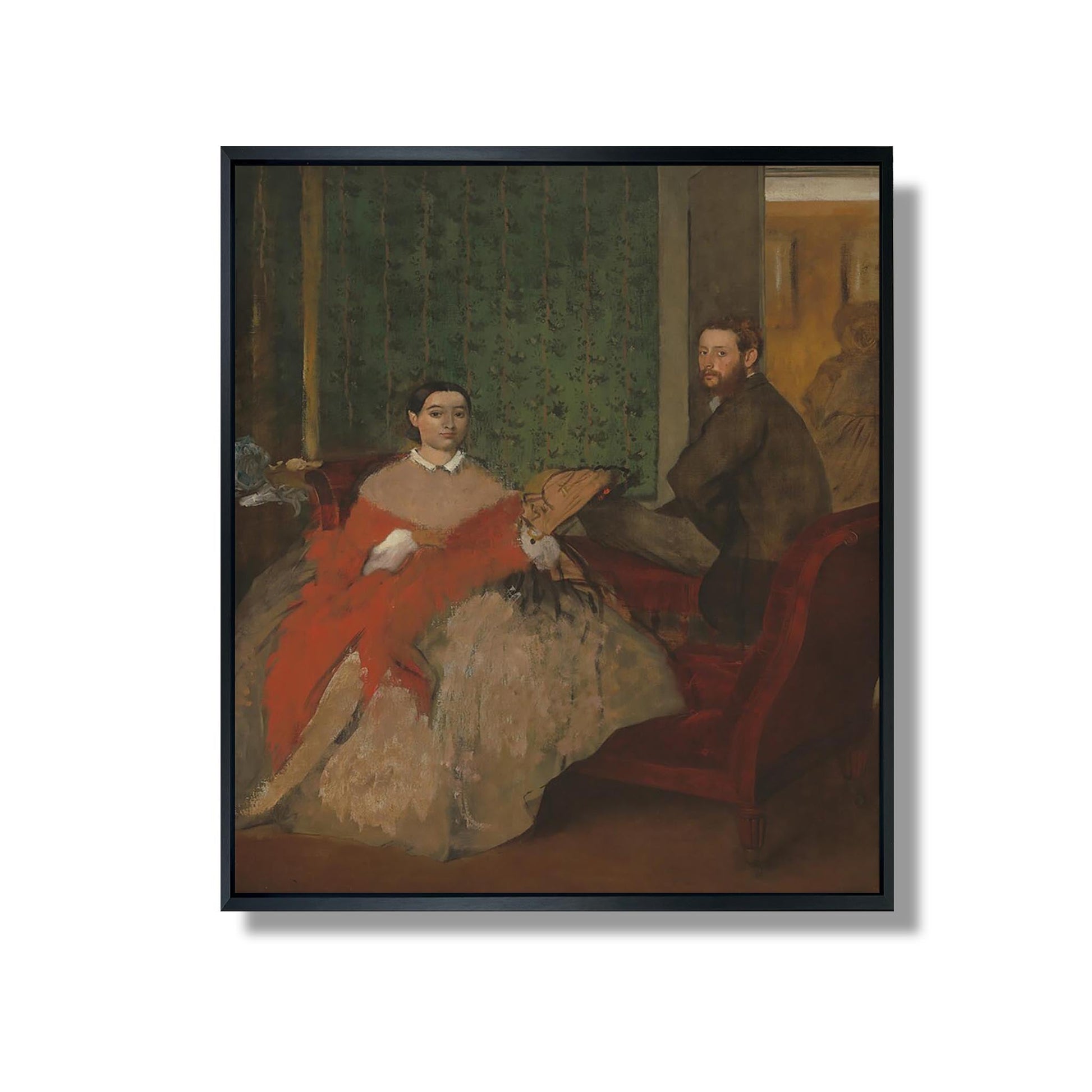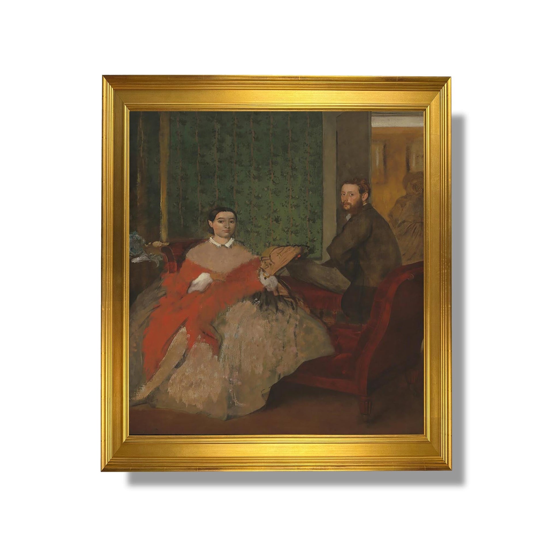 Edgar Degas, Meister des Impressionismus, schuf 1876 „Edmondo und Thérèse Morbilli“, ein ikonisches Werk, das sein Interesse am alltäglichen Leben und menschlichen Beziehungen veranschaulicht. Dieses Gemälde zeigt ein Paar, Edmondo und Thérèse, in einer intimen Atmosphäre und fängt einen Moment der Zärtlichkeit und Komplizenschaft ein. Die von dynamischen Linien und Lichtspielen geprägte Komposition demonstriert Degas‘ meisterhafte Beherrschung von Farbe und Perspektive. Mit diesem Gemälde erforscht der Künstler menschliche Emotionen und integriert zugleich Elemente der Moderne, wodurch das Werk zu einem ergreifenden Spiegelbild seiner Zeit wird.