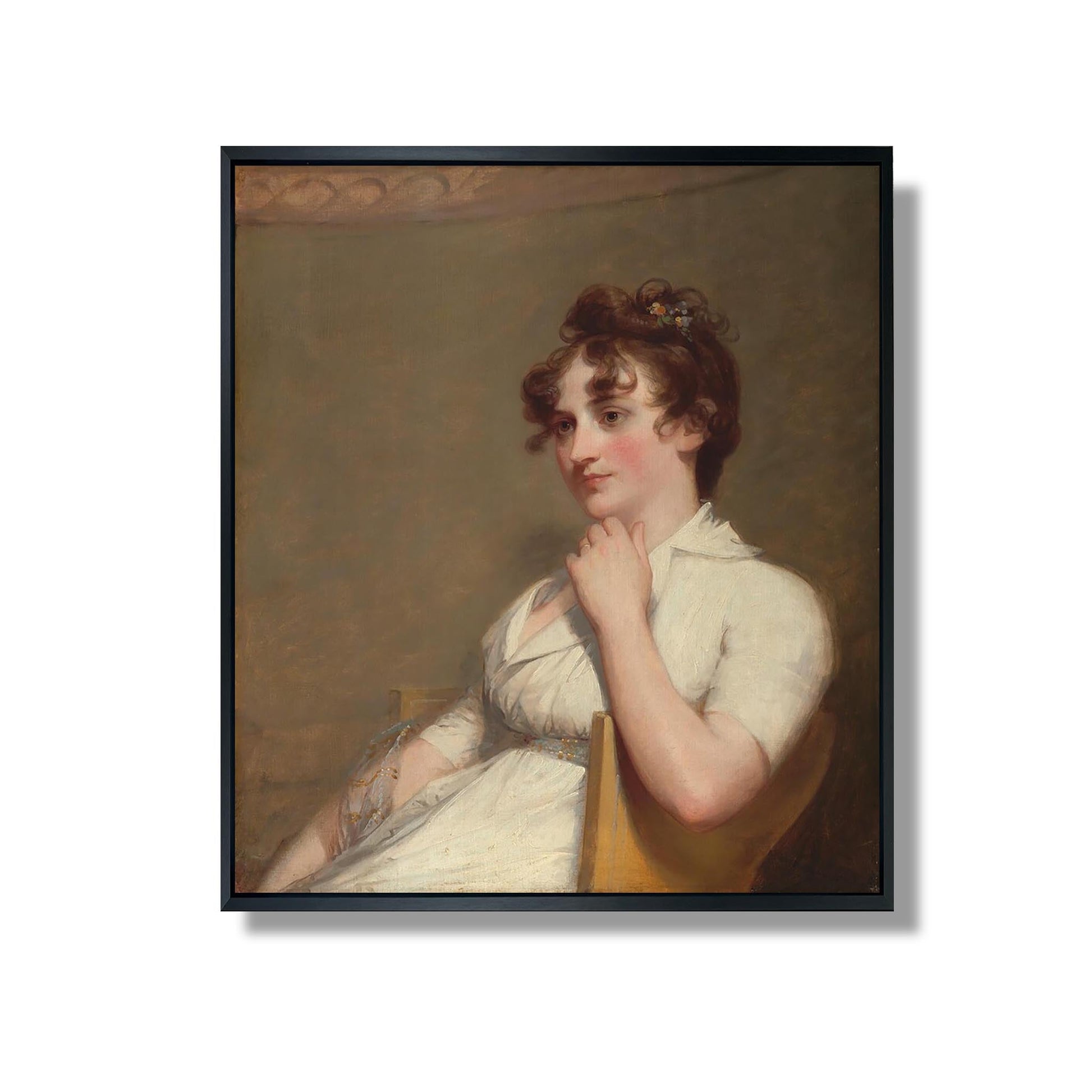 Eleanor Parke Custis Lewis, bekannt als Mrs. Lawrence Lewis ist ein ikonisches Porträt, das 1796 von Gilbert Stuart gemalt wurde. Dieses Werk veranschaulicht Stuarts außergewöhnliches Talent, der für seine realistischen und ausdrucksstarken Porträts berühmt ist. In diesem Gemälde wird Eleanor, die Schwiegertochter George Washingtons, mit raffinierter Eleganz dargestellt, in einem weißen Kleid, das ihre Anmut betont. Der direkte, selbstbewusste Blick der Dargestellten erzeugt in Kombination mit einem dunklen Hintergrund einen markanten Kontrast und hebt ihr Gesicht hervor. Dieses Porträt verkörpert nicht nur die weibliche Schönheit der damaligen Zeit, sondern auch den sozialen Status und den Einfluss der Frauen in der aufstrebenden amerikanischen Gesellschaft.