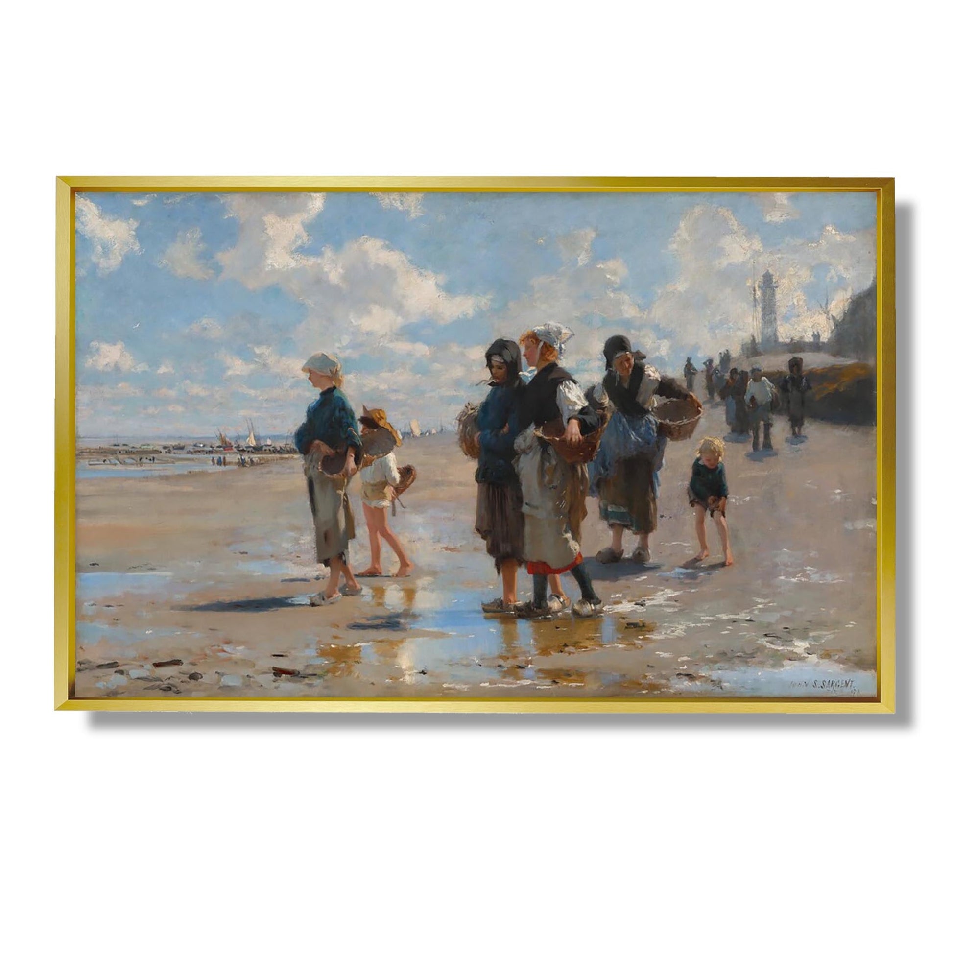 „Setting Out to Fish“ ist ein ikonisches Gemälde von John Singer Sargent aus dem Jahr 1880. Das Gemälde zeigt eine Szene aus dem alltäglichen Leben und fängt den Moment ein, in dem Fischer im Begriff sind, ein kleines Boot zu besteigen. Sargent, bekannt für sein geschicktes Spiel mit Licht und Wasser, verwendet fließende Pinselstriche, um Bewegung und Vitalität in die Szene zu bringen. Die lebendigen Farben und die dynamische Komposition vermitteln eine Atmosphäre der Freude und Kameradschaft. Dieses Werk ist ein Beweis für Sargents Talent, einfache Momente mit großer emotionaler Tiefe einzufangen.