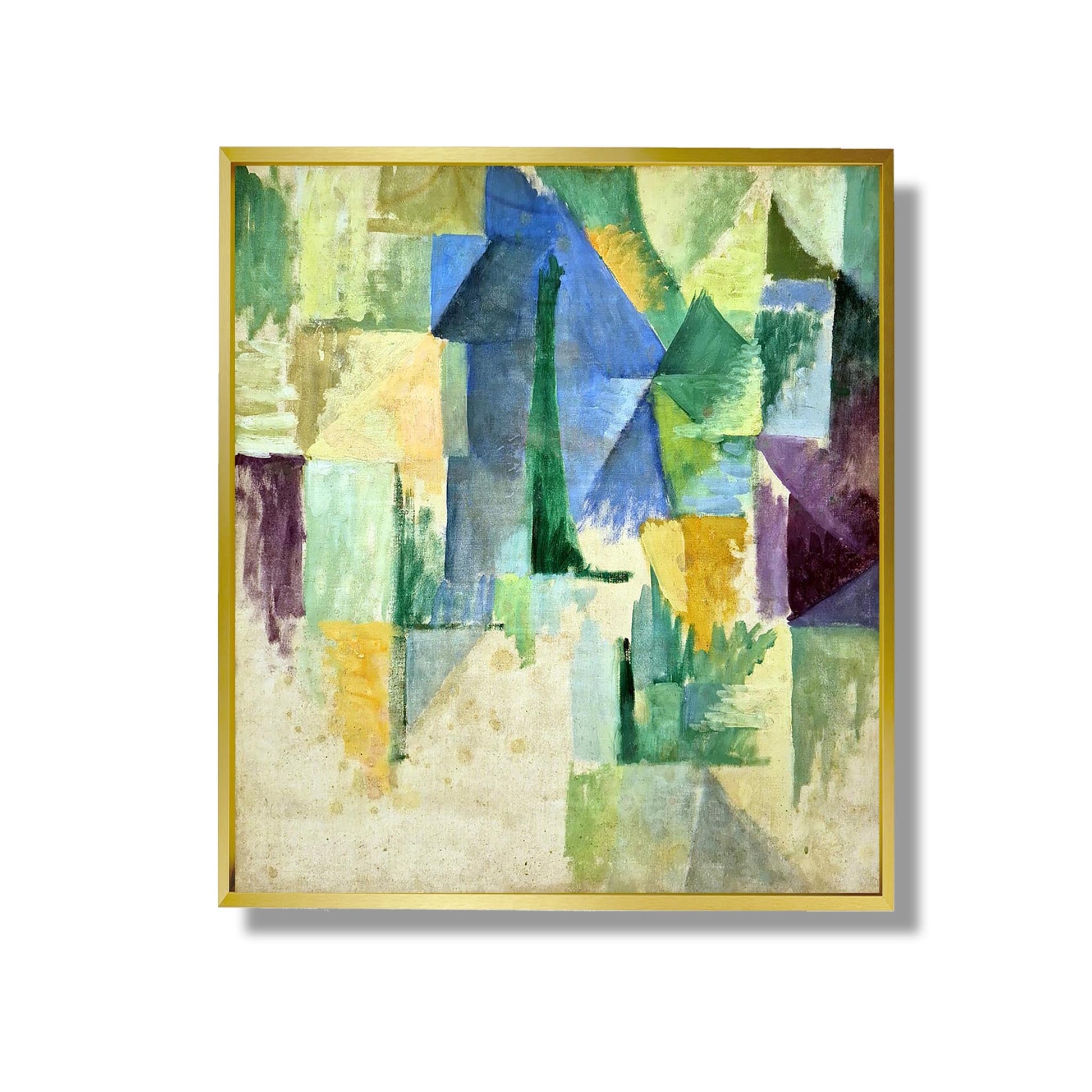 „Fenster“ von Robert Delaunay ist ein emblematisches Werk der orphistischen Bewegung, die Licht und Farbe durch abstrakte Formen erforscht. Dieses 1912 entstandene Gemälde zeigt ein offenes Fenster zu einer lebendigen Landschaft, in der sich Farben vermischen und überlappen und so ein Gefühl von Bewegung und Dynamik erzeugen. Delaunay verwendet Kreise und Linien, um eine visuelle Wahrnehmung hervorzurufen und den Betrachter einzuladen, die Energie des Lichts zu spüren. Dieses Werk veranschaulicht das Bestreben des Künstlers, die Essenz der Moderne und die Schönheit einer sich ständig verändernden Welt einzufangen.