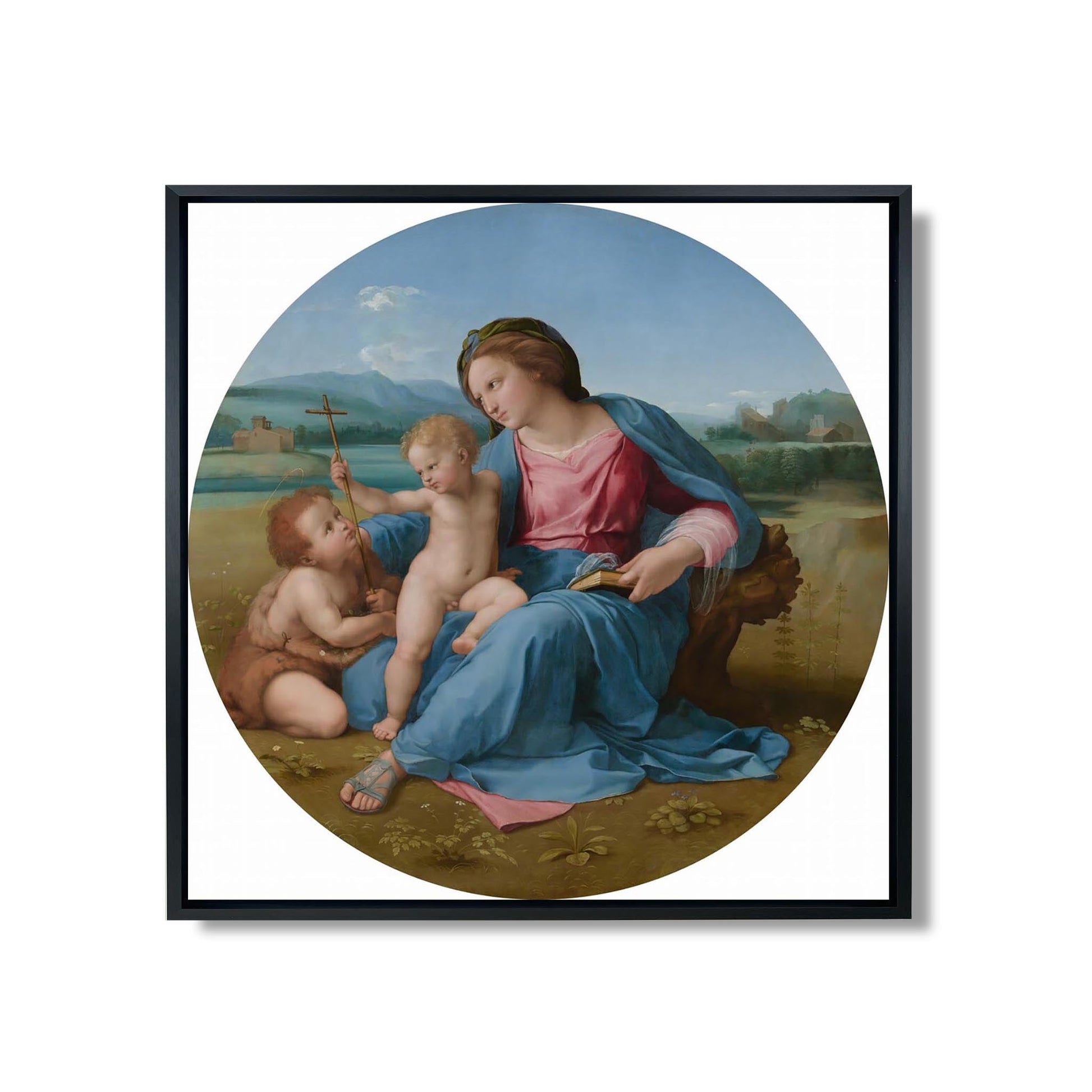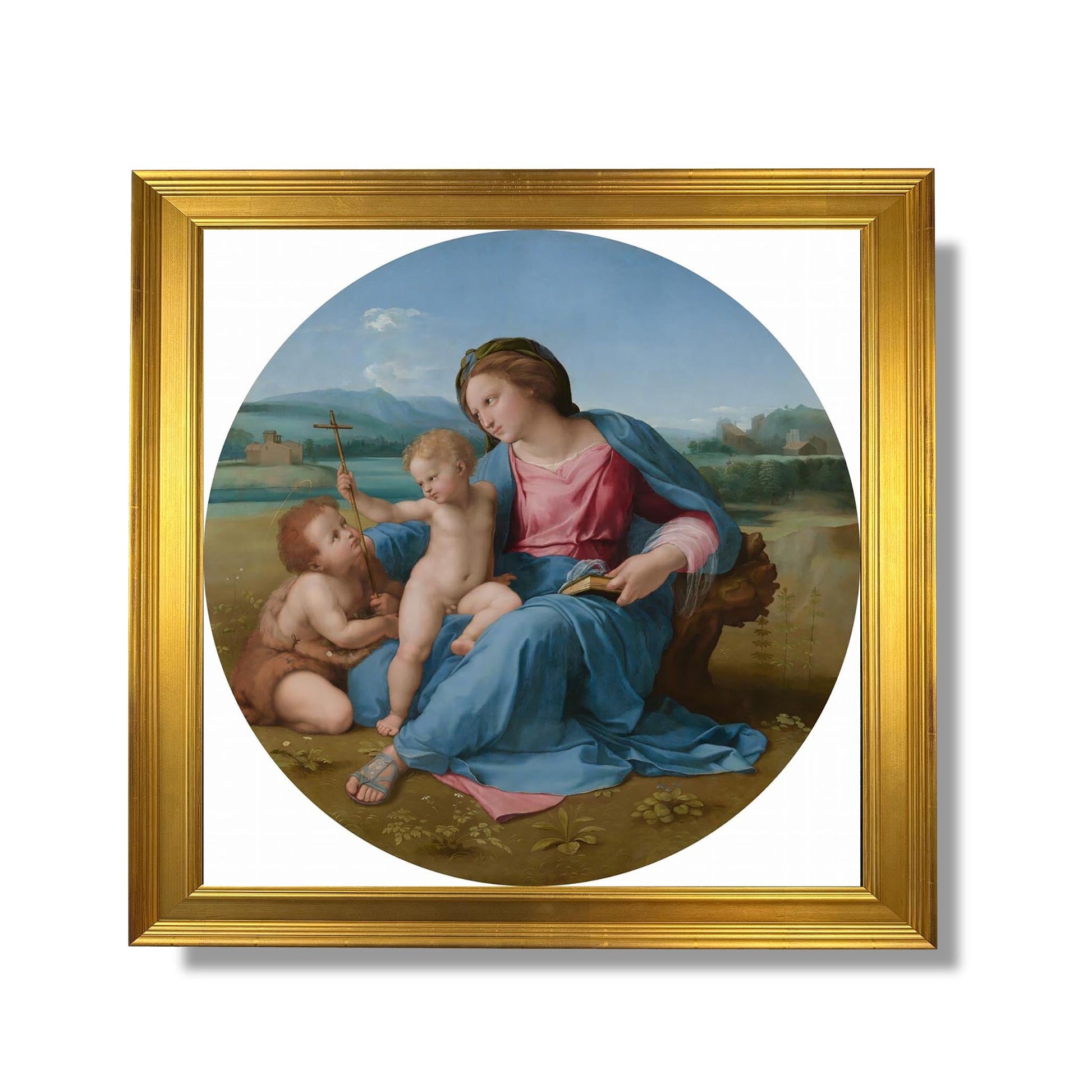 „Die Madonna von Alba“ ist ein emblematisches Werk Raffaels, das um 1510 entstand. Das Gemälde stellt die Jungfrau Maria dar, die das Jesuskind hält, umgeben von Symbolen der Süße und Zärtlichkeit. Die Komposition zeichnet sich durch perfekte Harmonie mit fließenden Linien und subtiler Beleuchtung aus, die die Gesichter der Protagonisten hervorhebt. Die lebendigen Farben und feinen Details zeugen von Raffaels Genie bei der Darstellung göttlicher Schönheit. Dieses Werk veranschaulicht die Verschmelzung von Menschlichkeit und Spiritualität und macht „Die Madonna von Alba“ zu einem Meisterwerk der Renaissance.