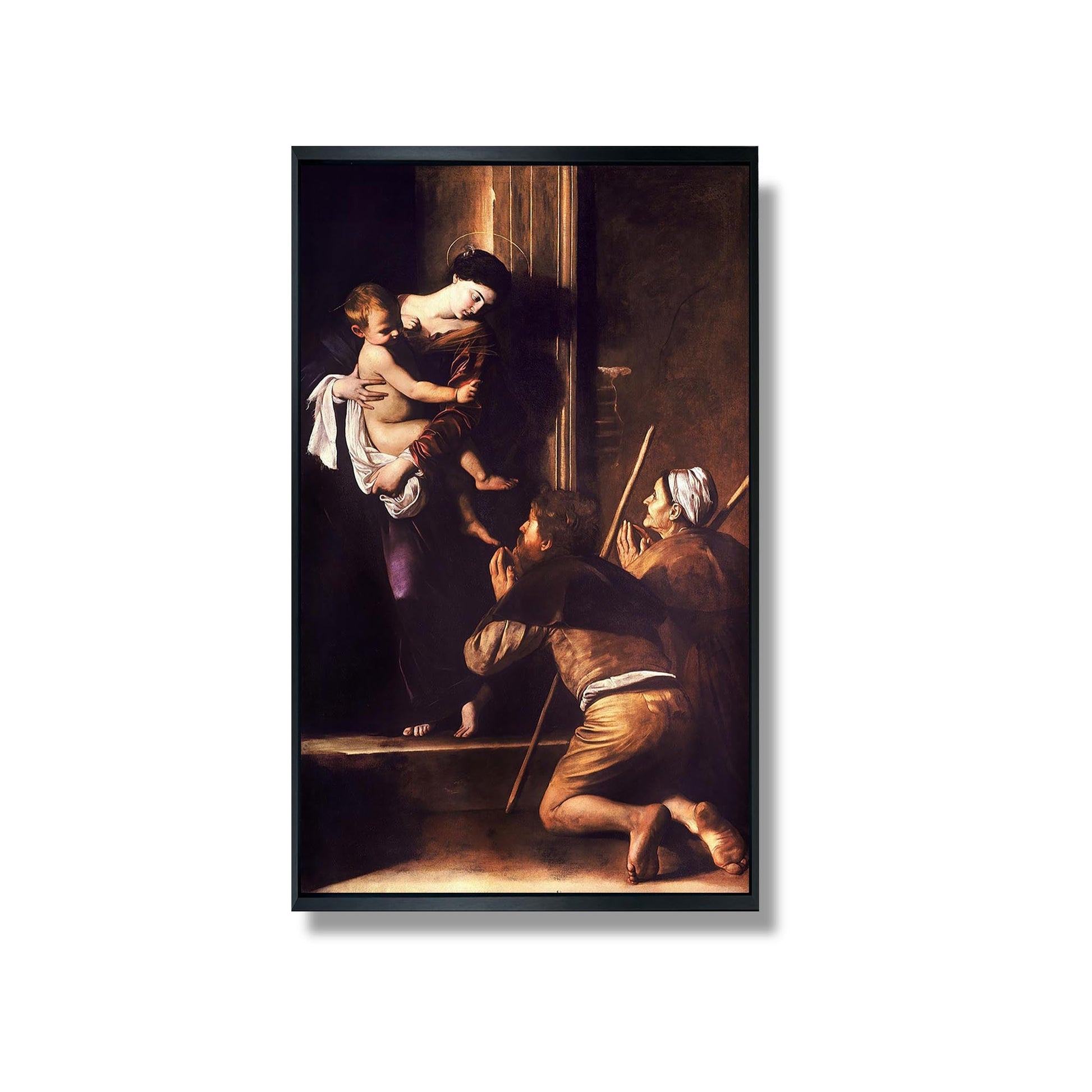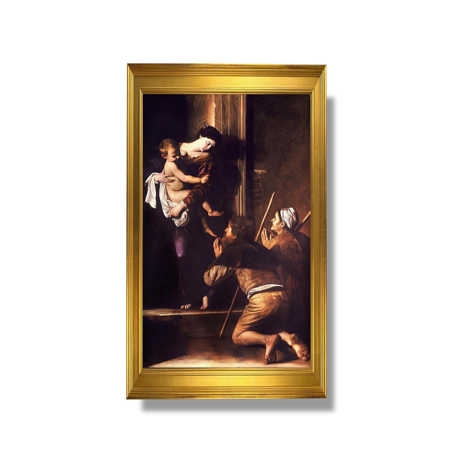 „Die Madonna von Loreto“ ist ein emblematisches Werk von Caravaggio, das um 1604 gemalt wurde. Dieses Gemälde zeigt die Jungfrau Maria, die das Jesuskind hält, umgeben von Heiligen. Caravaggio zeichnet sich durch seinen kühnen Einsatz von Hell-Dunkel aus, wodurch ein eindrucksvoller Kontrast zwischen göttlichem Licht und Schatten entsteht. Die dynamische und realistische Komposition fängt die Emotionen und die Menschlichkeit der Charaktere ein und entfernt sich so von der idealisierten Darstellung der Religion. Dieses Werk ist ein perfektes Beispiel für den Barockstil, eine Mischung aus Spiritualität und Realismus, und zeugt von Caravaggios nachhaltigem Einfluss auf die westliche Kunst.