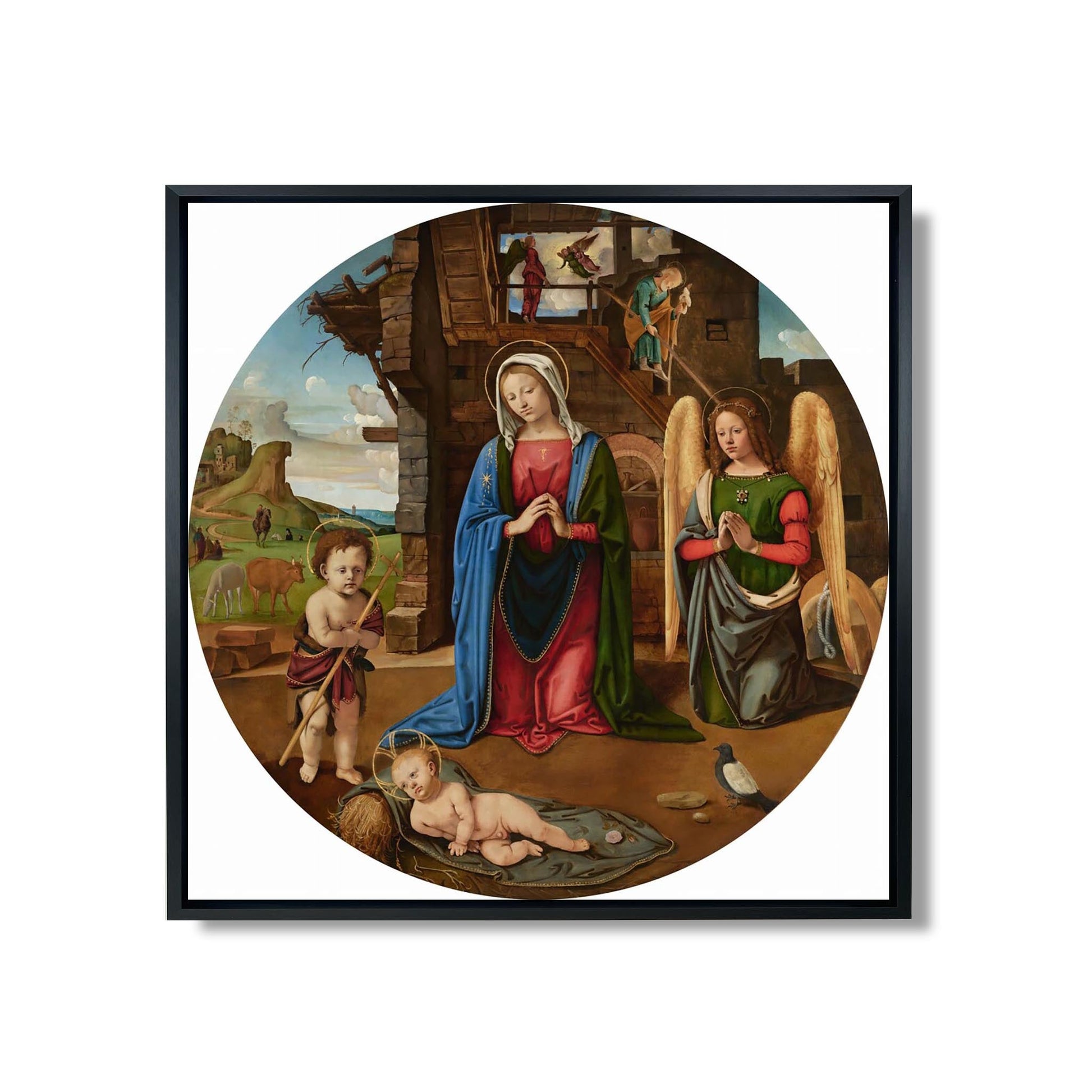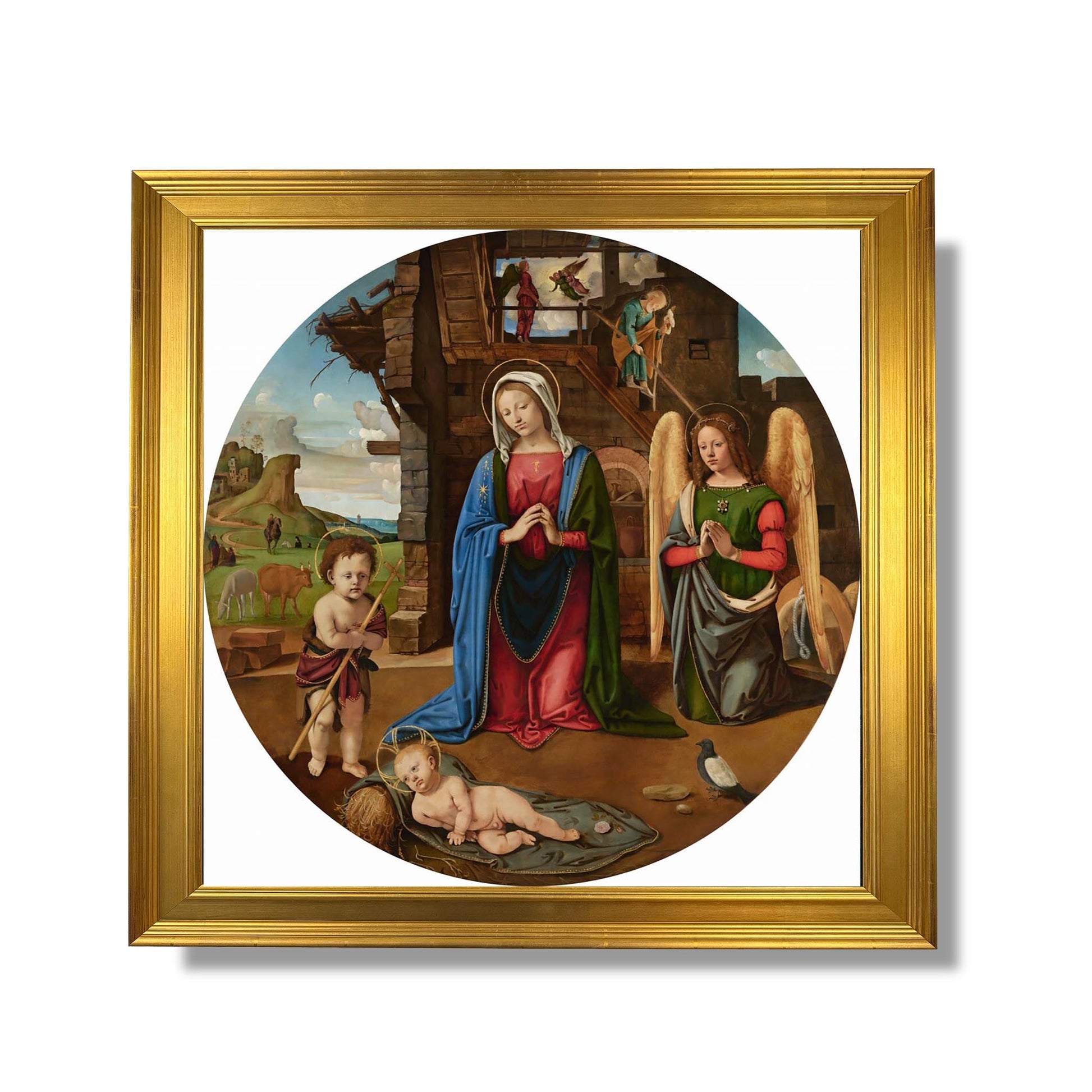 „Die Geburt Christi mit dem Johannesknaben“ von Piero di Cosimo ist ein ikonisches Werk der italienischen Renaissance, das um 1500 entstand. Dieses Gemälde zeigt die Weihnachtskrippe auf einzigartige Weise und vermischt Realismus und fantastische Elemente. In der Mitte sind die Jungfrau Maria und das Jesuskind von Engelsfiguren und Heiligen umgeben, darunter der junge Johannes der Täufer. Die lebendigen Farben und kleinsten Details zeugen von Cosimos unverwechselbarem Stil, der ein poetisches Gespür mit einer genauen Beobachtung der Natur verbindet. Das Werk lädt zum Nachdenken und Nachdenken über die Spiritualität und die Schönheit des Göttlichen ein.