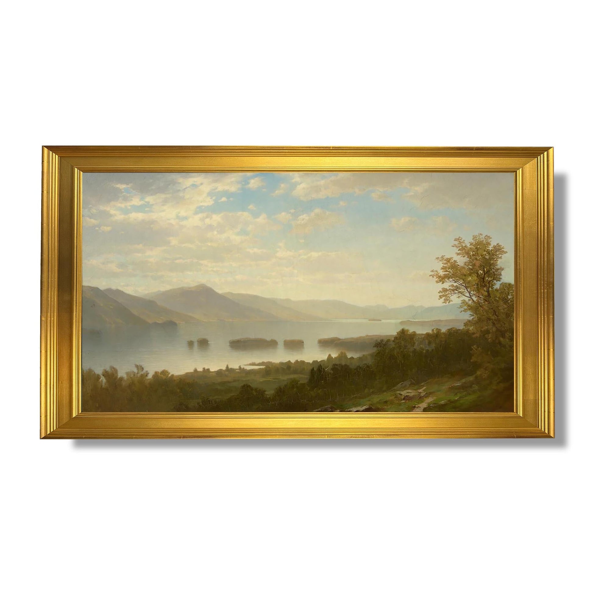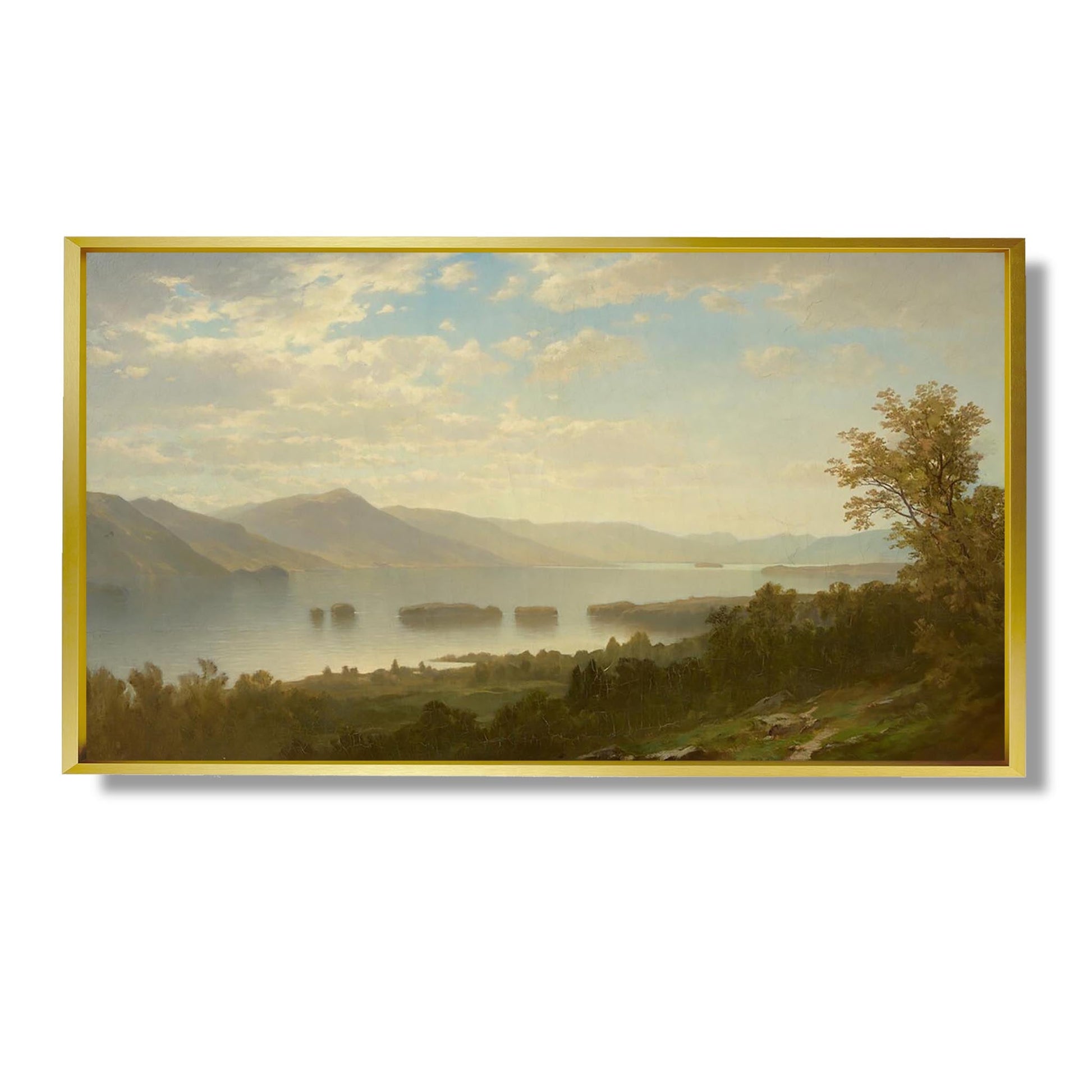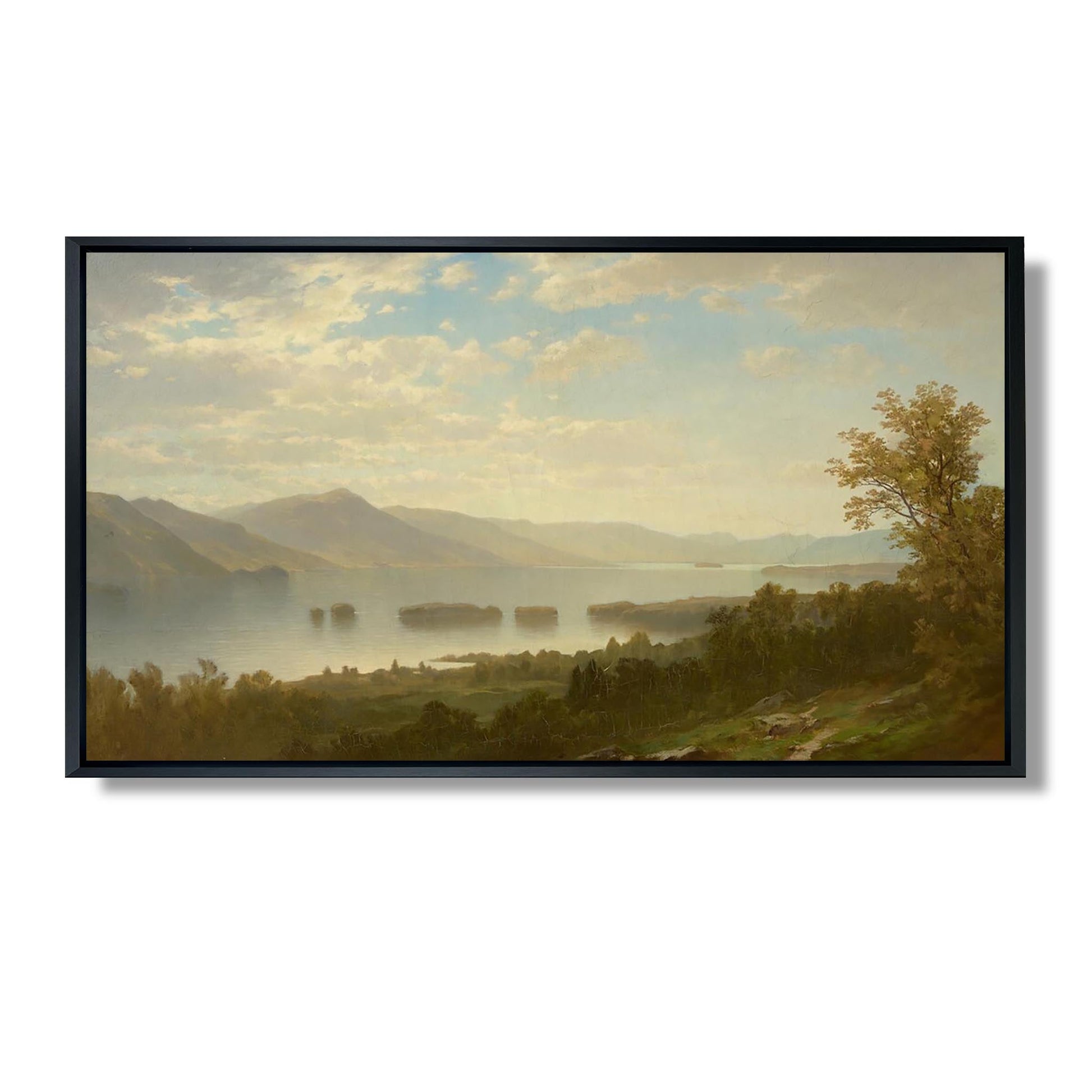 „Lake George“ ist ein ikonisches Werk von John William Casilear, einem amerikanischen Maler des 19. Jahrhunderts, der für sein Talent für romantische Landschaften bekannt ist. Dieses 1860 gemalte Gemälde fängt die ruhige Schönheit des Lake George im Bundesstaat New York ein. Casilear verwendet eine sanfte Farbpalette und zarte Pinselstriche, um natürliches Licht und Reflexionen auf dem Wasser hervorzurufen. Die harmonische Komposition mit Bergen im Hintergrund und üppiger Vegetation lädt zur Kontemplation ein. Dieses Werk veranschaulicht perfekt die Harmonie zwischen Mensch und Natur, die für die amerikanische Landschaftsbewegung charakteristisch ist.