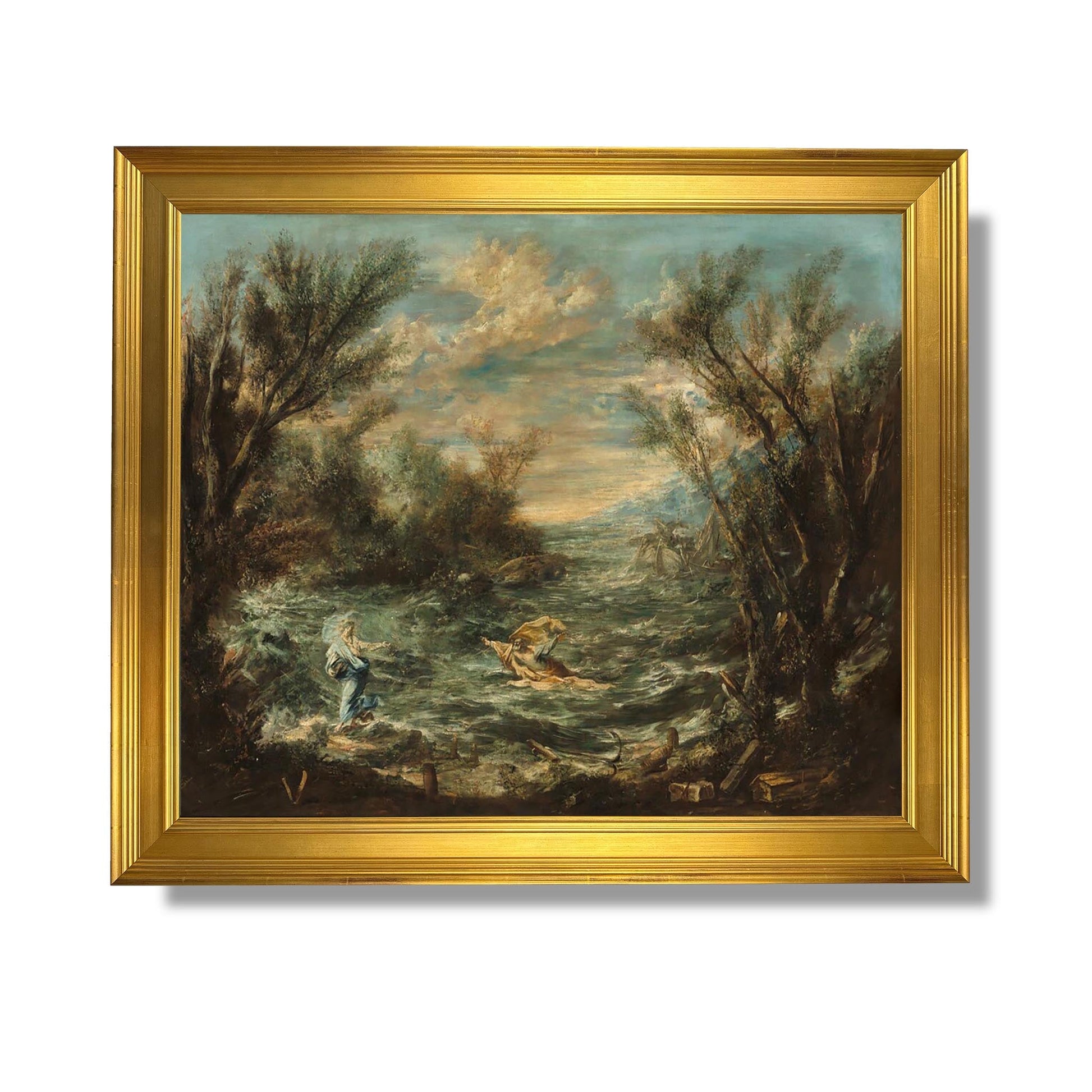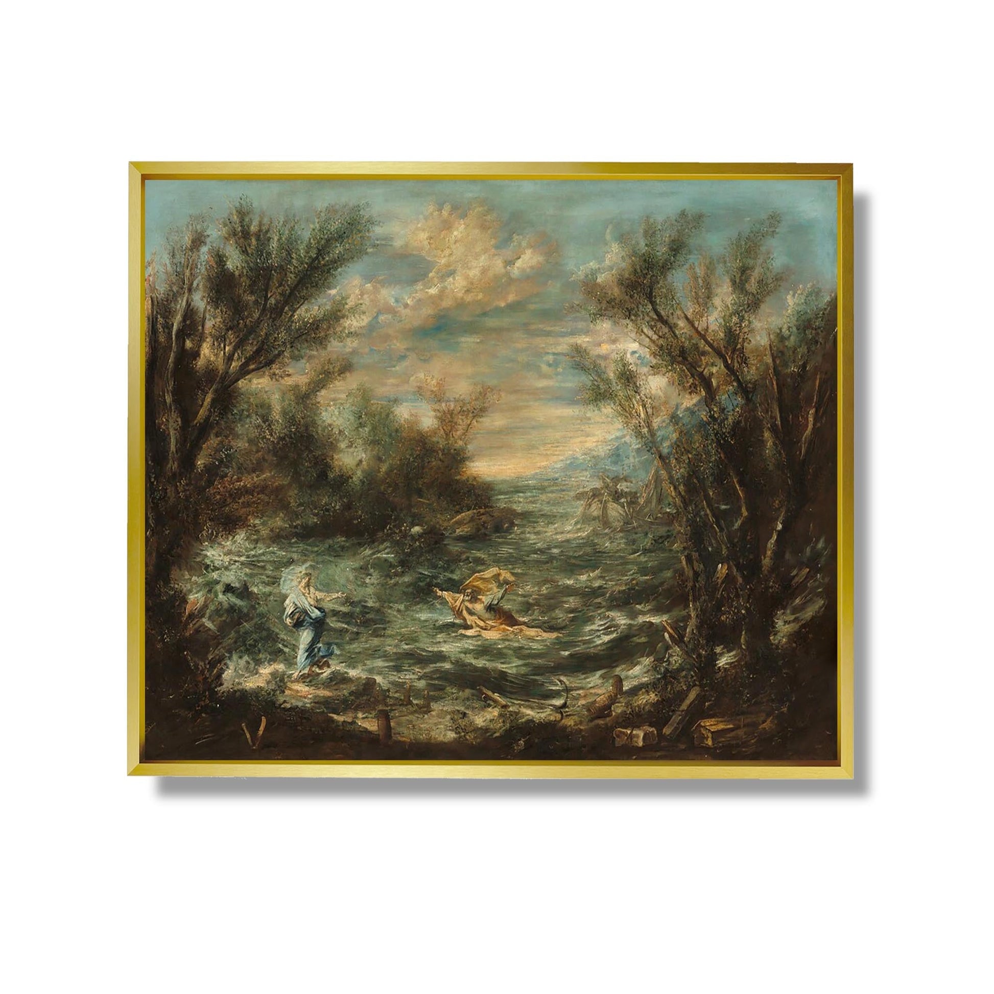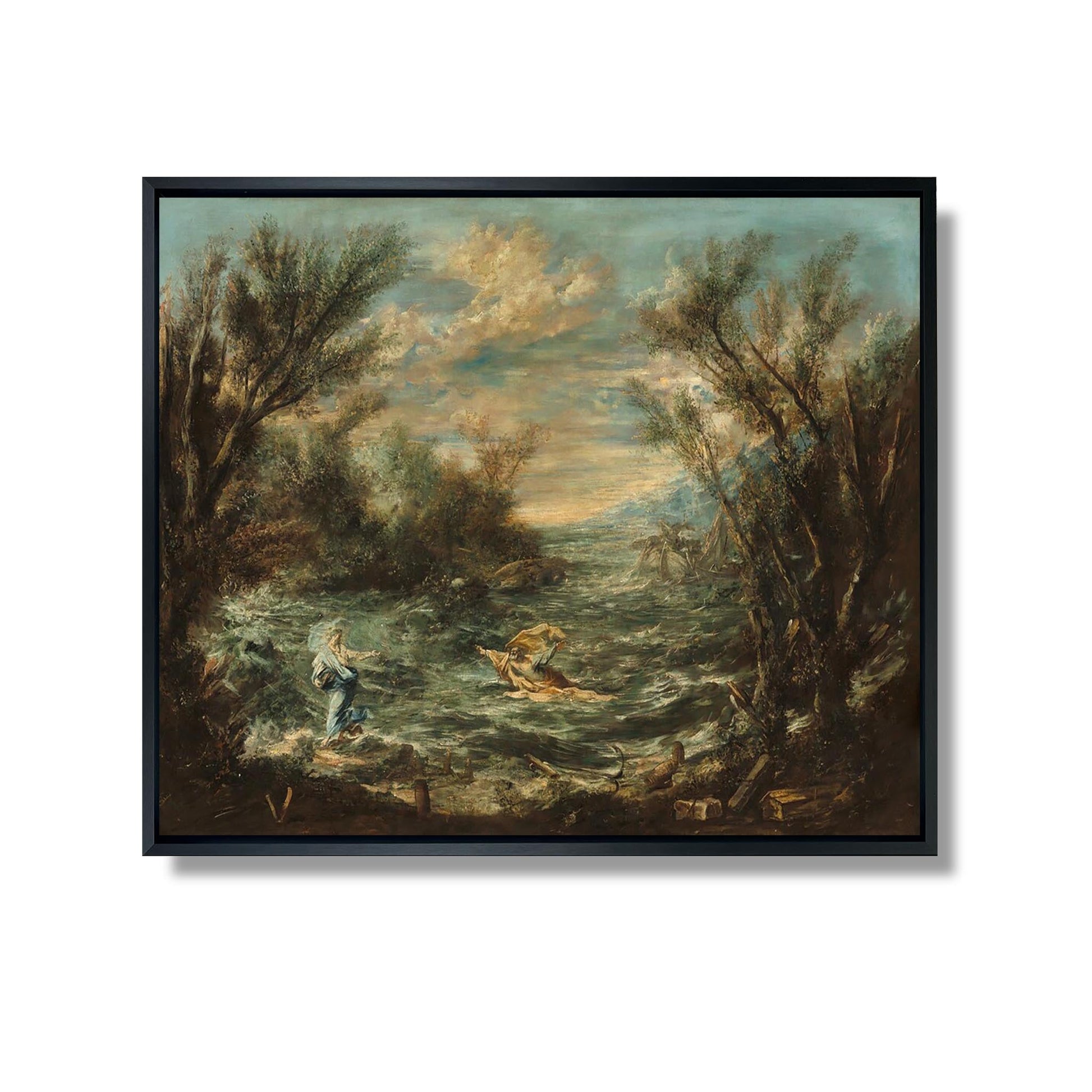 „Christus am See Genezareth“ von Alessandro Magnasco ist ein emblematisches Werk des italienischen Barock, entstanden im 18. Jahrhundert. Dieses Gemälde zeigt einen Schlüsselmoment des Neuen Testaments, in dem Jesus, umgeben von seinen Jüngern, über das Wasser geht. Magnasco, bekannt für seinen dramatischen Stil und seine dynamischen Kompositionen, verwendet lebendige Farben und auffällige Kontraste, um die Emotionalität der Szene zu verstärken. Die ausdrucksstarken und bewegten Figuren zeugen von göttlicher Kraft und menschlichem Glauben. Das Werk lädt zur spirituellen Kontemplation ein und offenbart gleichzeitig Magnascos künstlerisches Genie.