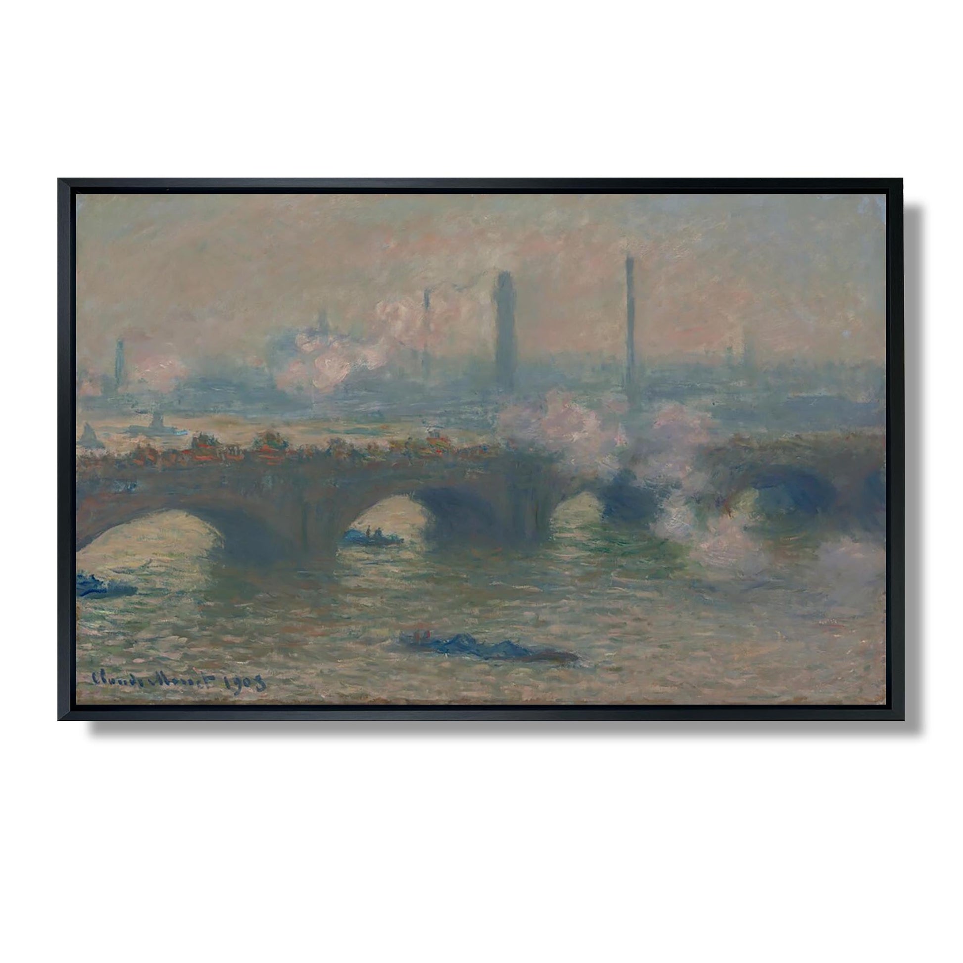 „Waterloo Bridge, grauer Tag“ ist ein ikonisches Werk von Claude Monet, gemalt im Jahr 1903. Dieses Gemälde zeigt die berühmte London Bridge unter einem bewölkten Himmel und fängt die neblige und melancholische Atmosphäre der Stadt ein. Monet, ein Meister des Impressionismus, verwendet zarte Farbtupfer, um diffuses Licht und Spiegelungen auf dem Wasser darzustellen. Die Komposition ist einfach und kraftvoll zugleich und ruft ein Gefühl der Ruhe und Einsamkeit hervor. Mit diesem Werk erforscht Monet die wechselnden Auswirkungen von Licht und Umgebung und zeigt so seine Verbundenheit mit der Natur und dem gegenwärtigen Moment.