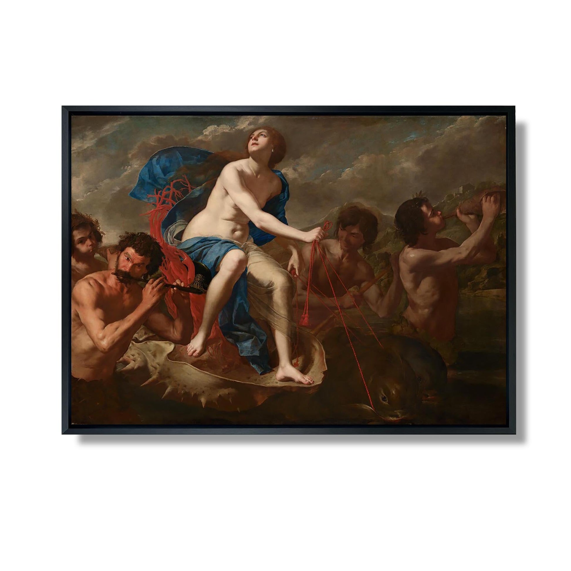 „Der Triumph der Galatea“ ist ein emblematisches Werk von Bernardo Cavallino, einem neapolitanischen Barockmaler des 17. Jahrhunderts. Dieses Gemälde illustriert die griechische Mythologie und zeigt Galatea, eine Meeresnymphe, umgeben von Meeresgöttern und fantastischen Kreaturen. Die dynamische Komposition und die lebendigen Farben sind ein Beweis für Cavallinos Talent, Licht und Bewegung einzufangen. Galatea in der Mitte verkörpert Schönheit und Liebe, während die umgebenden Figuren Freude und Bewunderung ausdrücken. Dieses Werk spiegelt die Harmonie zwischen Mensch und Natur wider und zelebriert gleichzeitig das klassische Schönheitsideal.