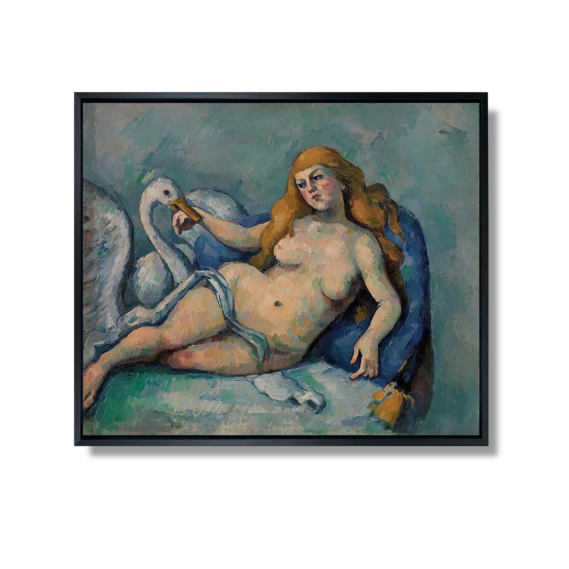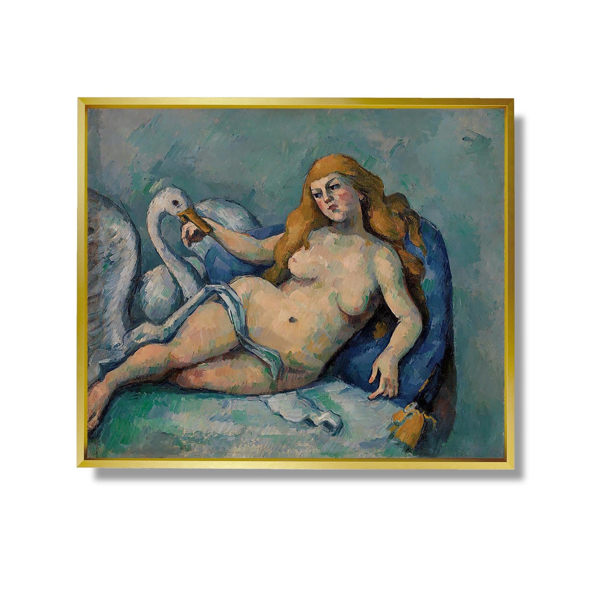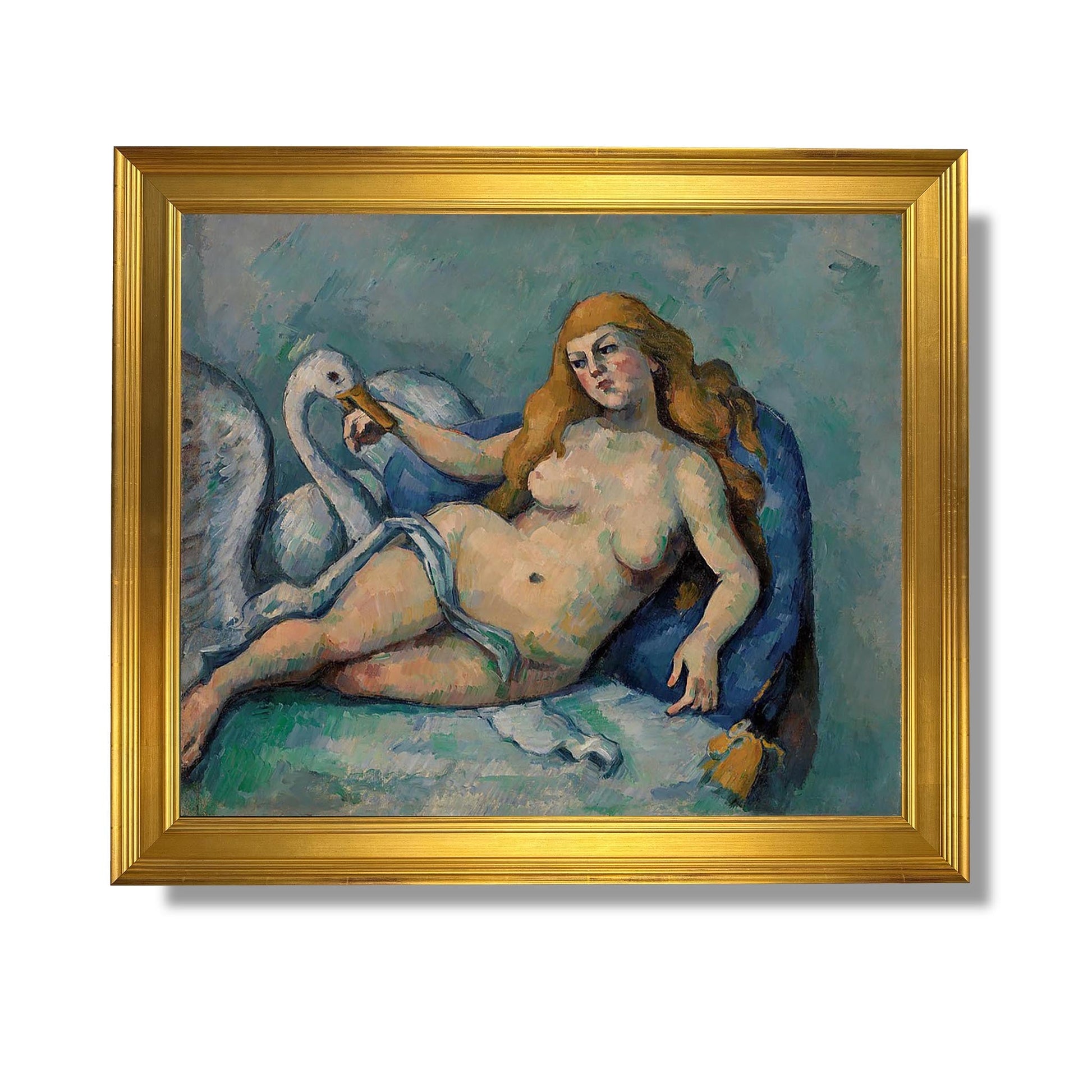 Paul Cézannes um 1898 entstandenes Werk „Leda und der Schwan“ veranschaulicht die Begegnung zwischen Mythologie und Impressionismus. Inspiriert vom griechischen Mythos, in dem Zeus in Gestalt eines Schwans Leda verführt, fängt dieses Gemälde die Intimität und Spannung zwischen den beiden Figuren ein. Cézanne schafft mit seiner sanften Farbpalette und geometrischen Formen eine Atmosphäre, die sowohl sinnlich als auch verstörend ist. Die verschwommenen Konturen und das Lichtspiel zeugen von seinem einzigartigen Stil, der Realismus und Abstraktion vermischt. Dieses Werk, ein Sinnbild seiner künstlerischen Forschung, lädt zum Nachdenken über die Natur der Liebe und Schönheit ein.