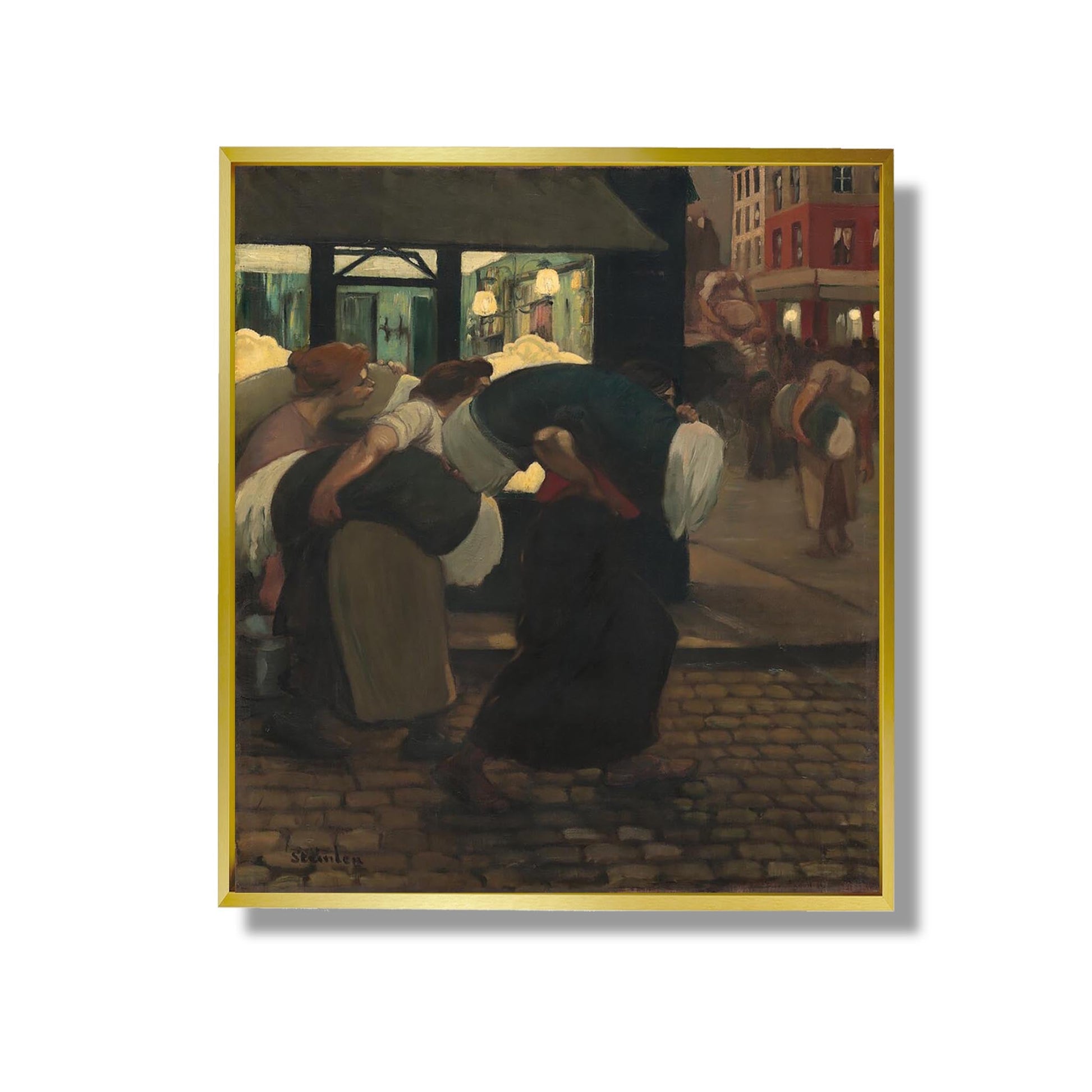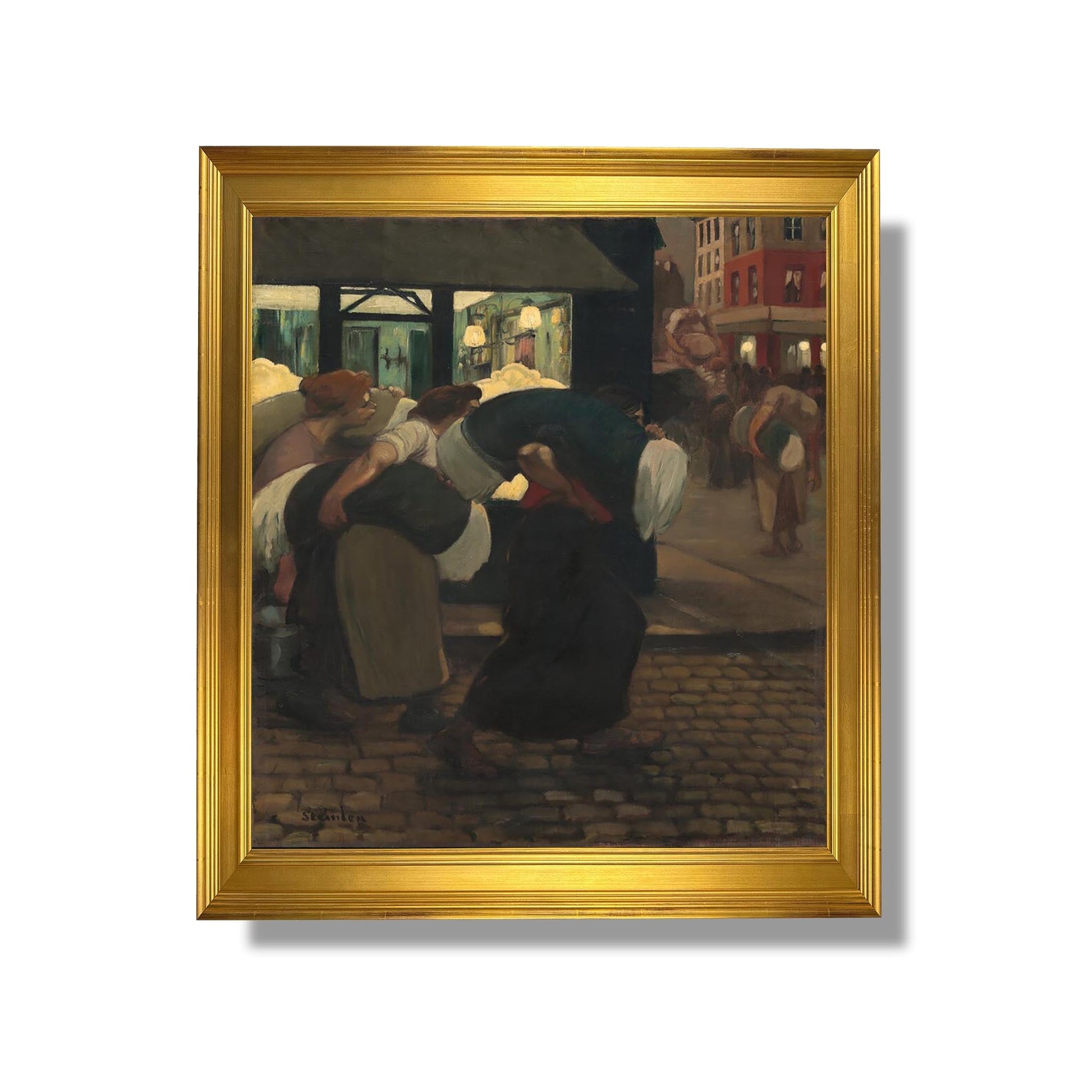 „Les Blanchisseuses“ von Théophile Alexandre Steinlen ist ein ikonisches Werk der postimpressionistischen Bewegung und entstand 1896. Dieses Gemälde zeigt Frauen bei der Arbeit in einer Wäscherei und fängt ihr tägliches Leben mit ergreifender Sensibilität ein. Steinlen, der für sein soziales Engagement bekannt ist, betont die Härte ihrer Arbeit und würdigt zugleich ihre Würde. Die warmen Farben und ausdrucksstarken Gesichtszüge vermitteln eine zugleich melancholische und menschliche Atmosphäre. Mit diesem Werk beleuchtet die Künstlerin die Realität der Arbeiterklasse und würdigt gleichzeitig die Stärke der Frauen.