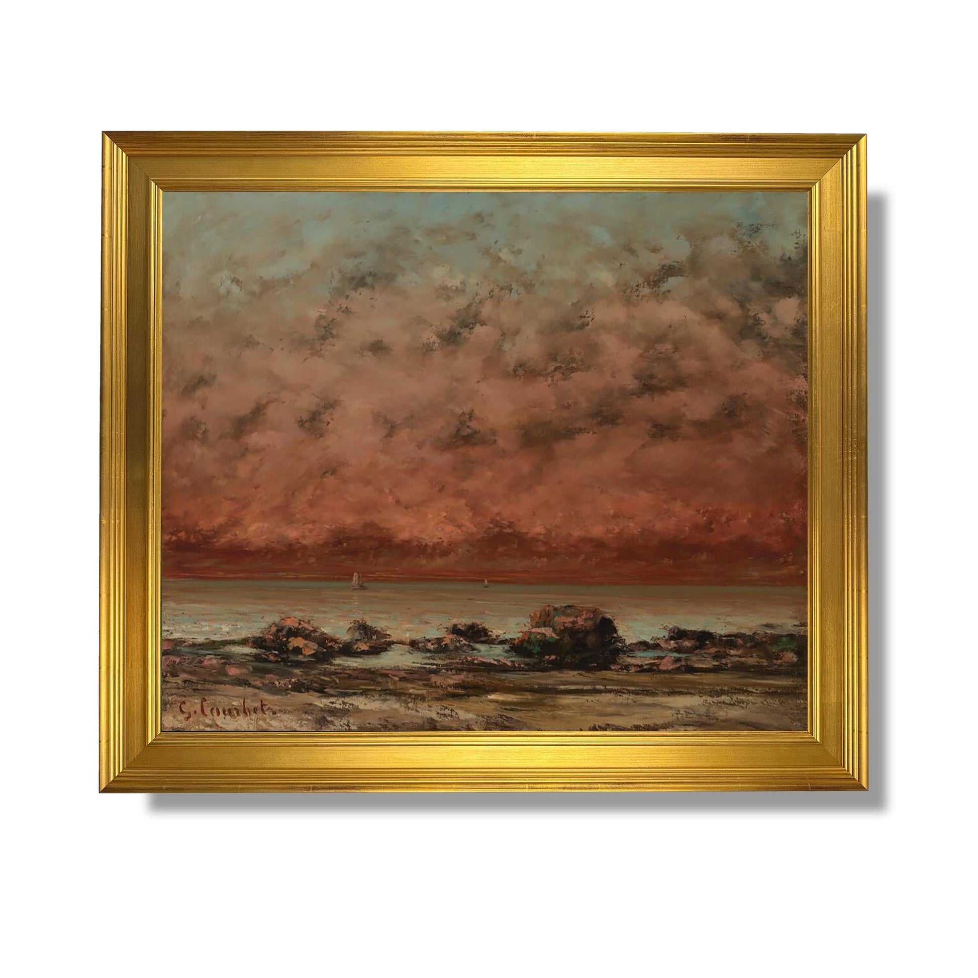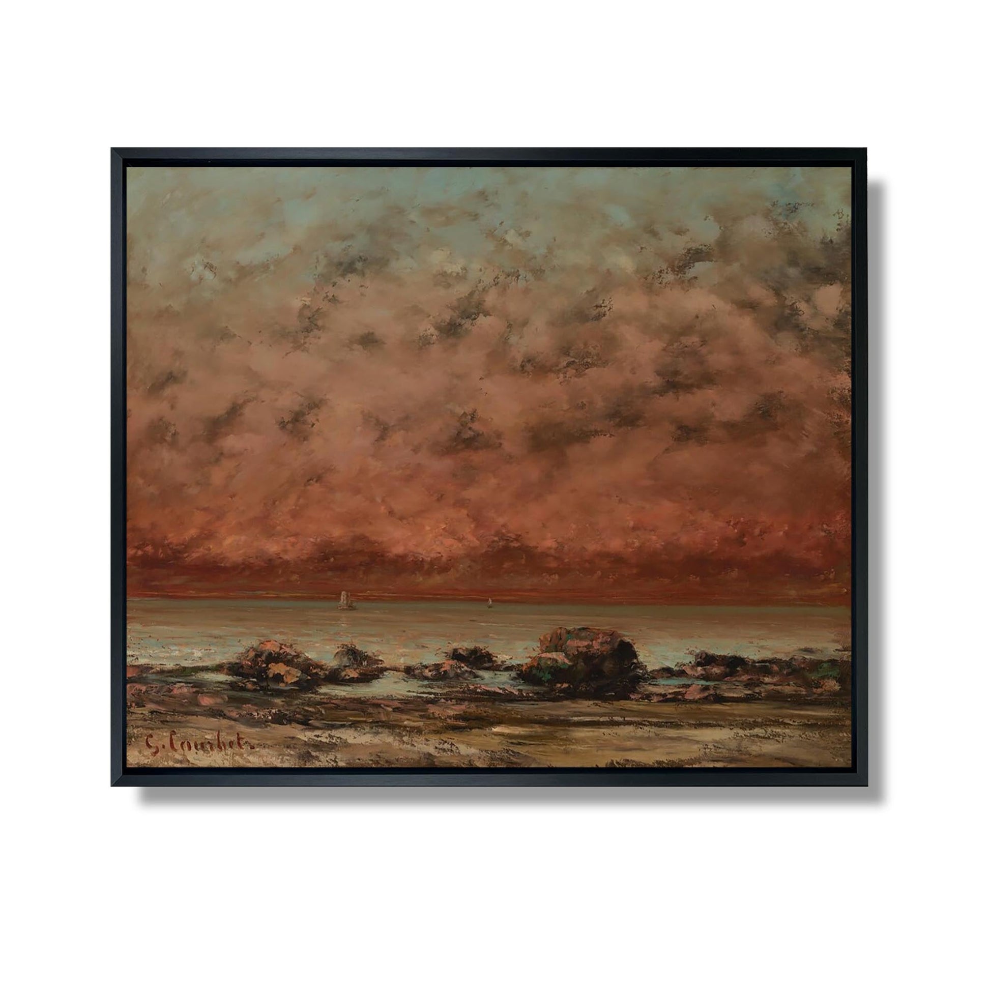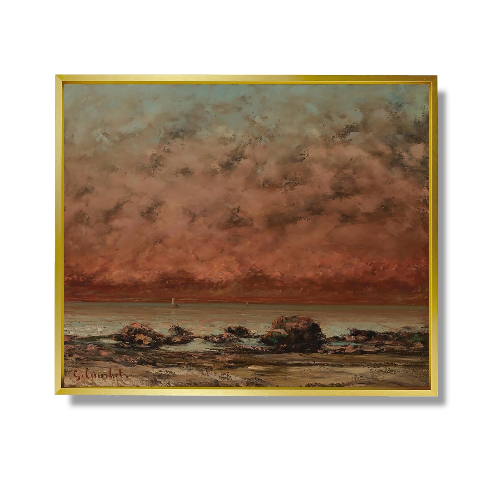 „Les Pierres rouges à Trouville“ ist ein emblematisches Werk von Gustave Courbet aus dem Jahr 1865. Dieses Gemälde veranschaulicht die dem Künstler so wichtige realistische Bewegung, die die Natur mit verblüffender Authentizität darzustellen sucht. Courbet fängt die Schönheit der Landschaften der Normandie ein und hebt die roten Felsen der Küste von Trouville hervor, die in sanftes Licht getaucht sind. Die dynamische und farbintensive Komposition zeigt sein Interesse an Texturen und Lichtspielen. Dieses Werk spiegelt sein Engagement wider, die Welt so darzustellen, wie sie ist, weit entfernt von den akademischen Idealen seiner Zeit.