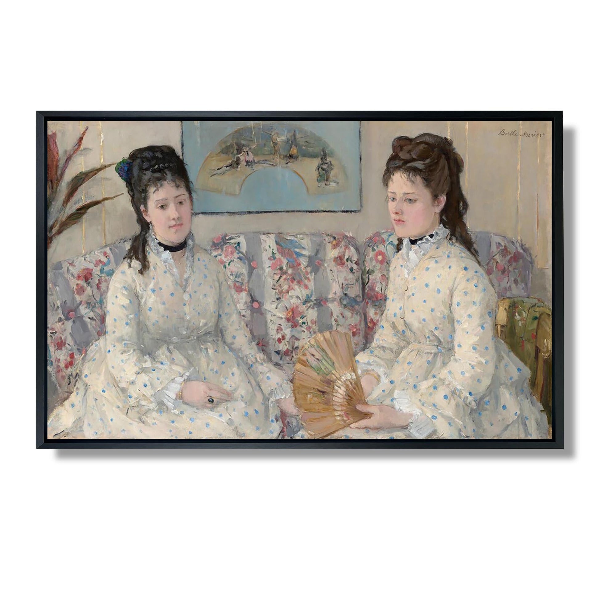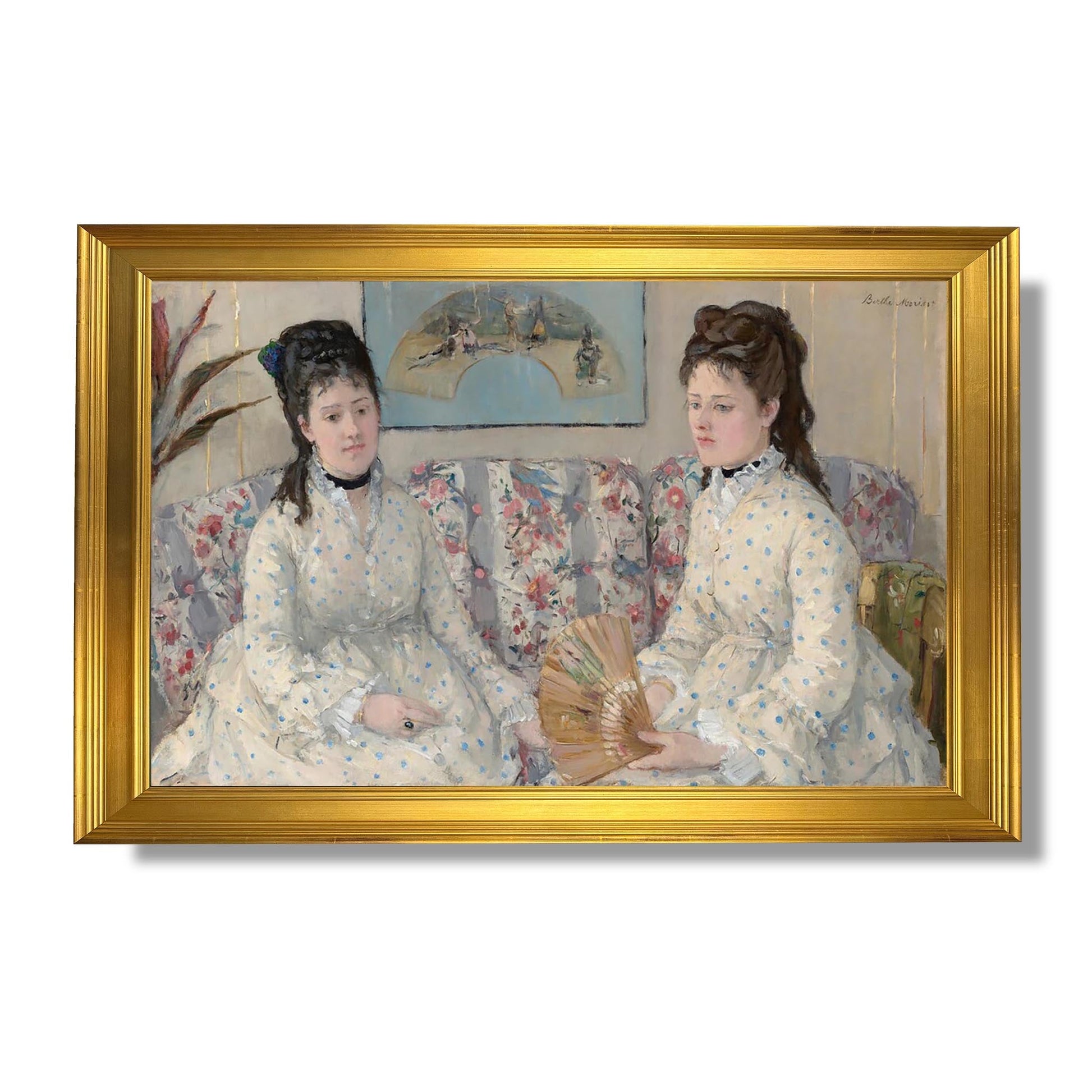 „Die Schwestern“ ist ein emblematisches Werk von Berthe Morisot, einer bedeutenden Persönlichkeit des Impressionismus. Dieses 1890 gemalte Gemälde zeigt zwei junge Frauen, wahrscheinlich Schwestern, in einer intimen und leuchtenden Umgebung. Morisot verwendet zarte Pinselstriche und sanfte Farben, um das natürliche Licht und die Atmosphäre der Komplizenschaft zwischen den Charakteren einzufangen. Das Werk veranschaulicht ihr Talent, den Alltag und weibliche Emotionen darzustellen und gleichzeitig die Konventionen ihrer Zeit herauszufordern. Mit ihrem einzigartigen Stil bietet Morisot eine poetische und moderne Vision der Weiblichkeit.