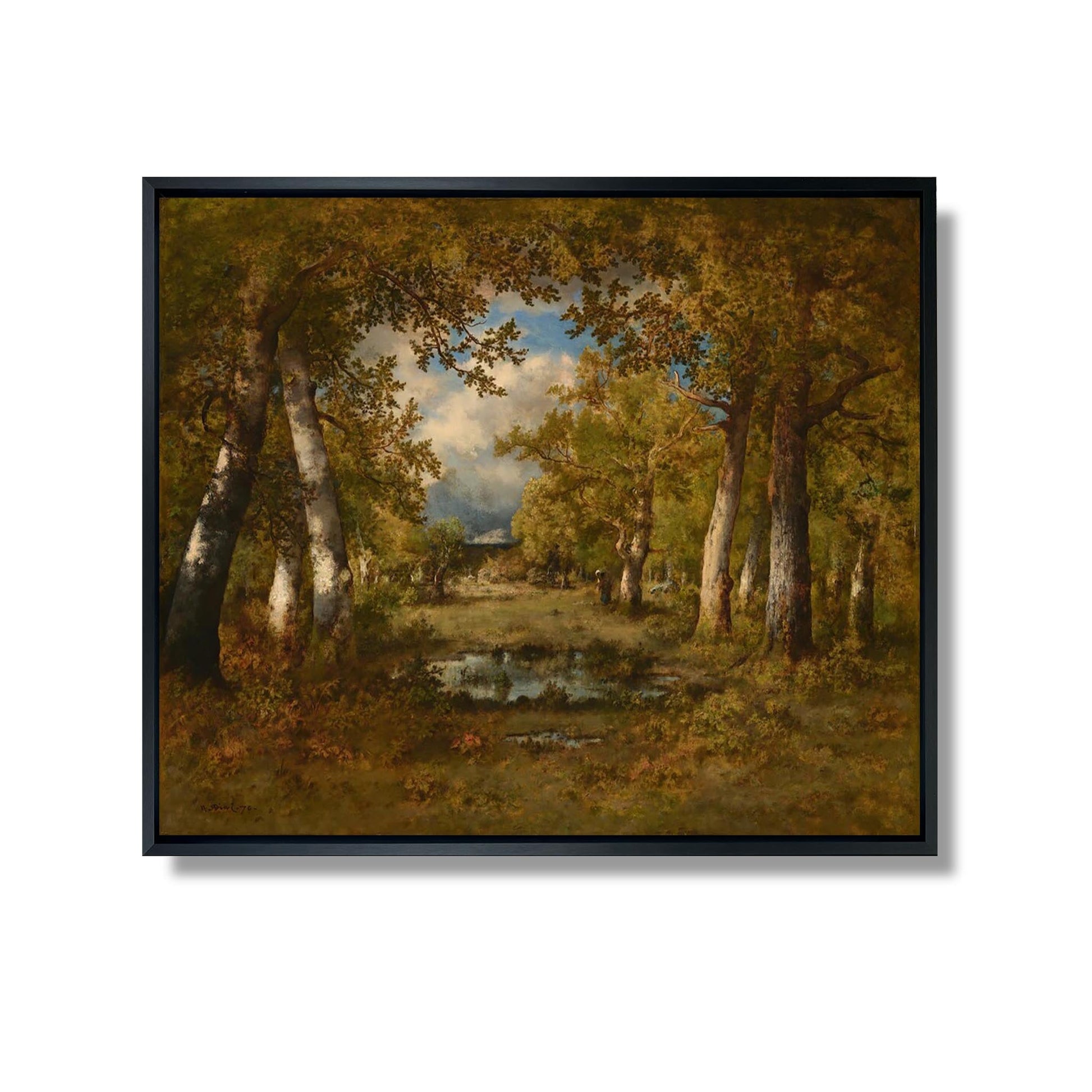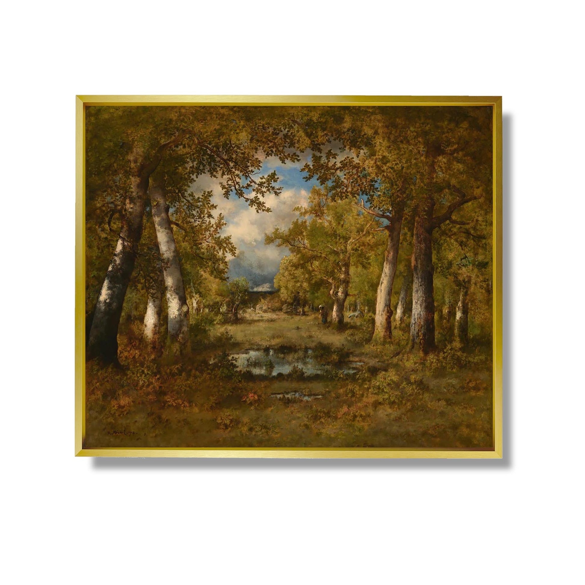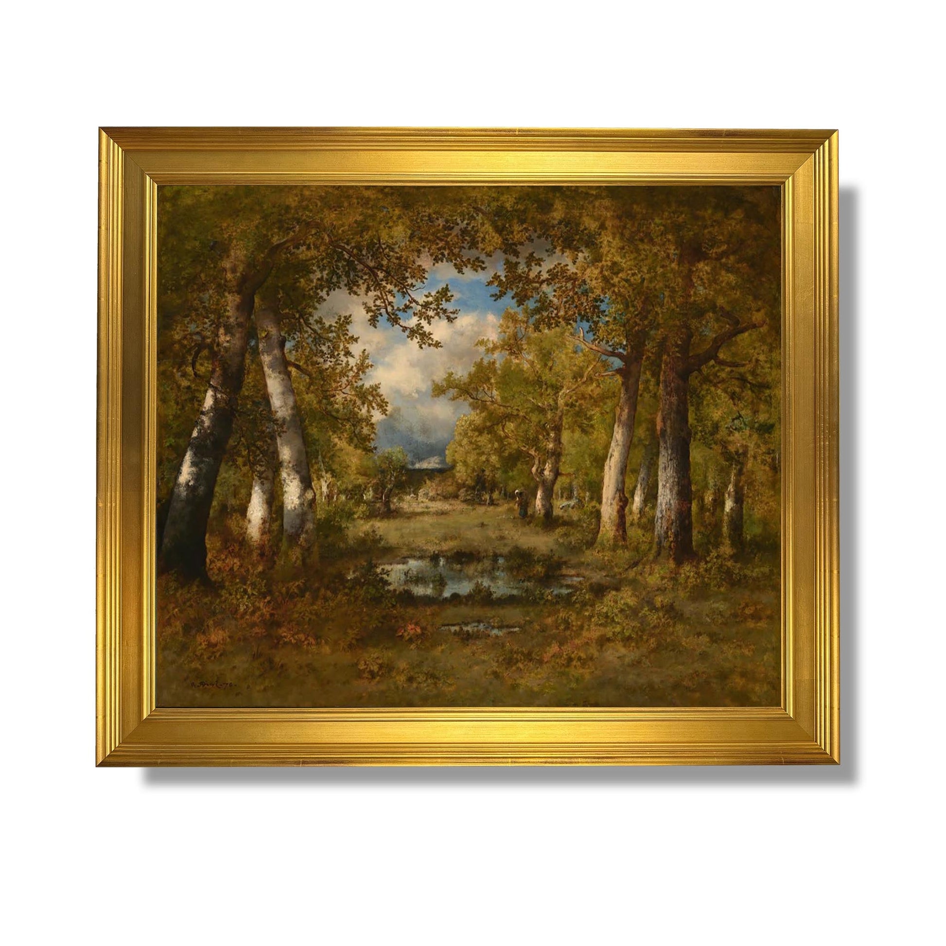 Das Werk „Der Froschteich“ von Narcisse Virgile Diaz de la Peña aus dem Jahr 1865 veranschaulicht die Meisterschaft des Künstlers in der romantischen Landschaft. Diaz, beeinflusst von der Schule von Barbizon, fängt die Schönheit der Natur mit einer reichen Palette und subtilen Lichtspielen ein. Der von üppiger Vegetation umgebene Teich wird zu einem Zufluchtsort für Frösche und symbolisiert Leben und Ruhe. Die Komposition lädt zum Nachdenken ein, während die Spiegelungen im Wasser eine poetische Dimension hinzufügen. Dieses Werk zeugt von der Harmonie zwischen Mensch und Natur, die für die aufkommende Impressionismus-Bewegung charakteristisch ist.