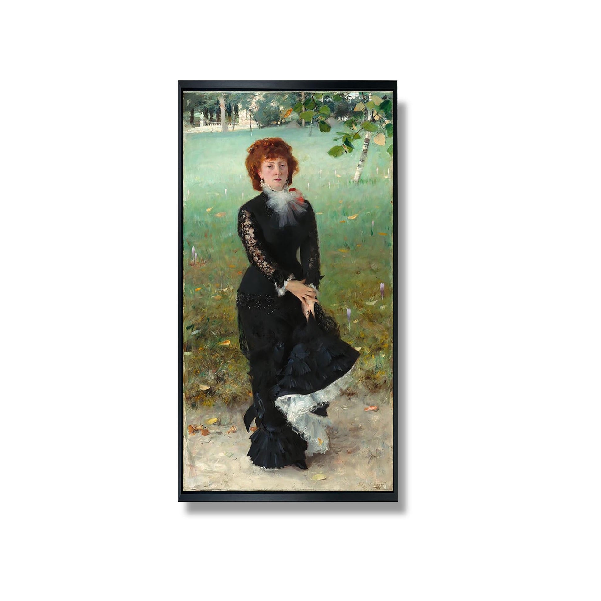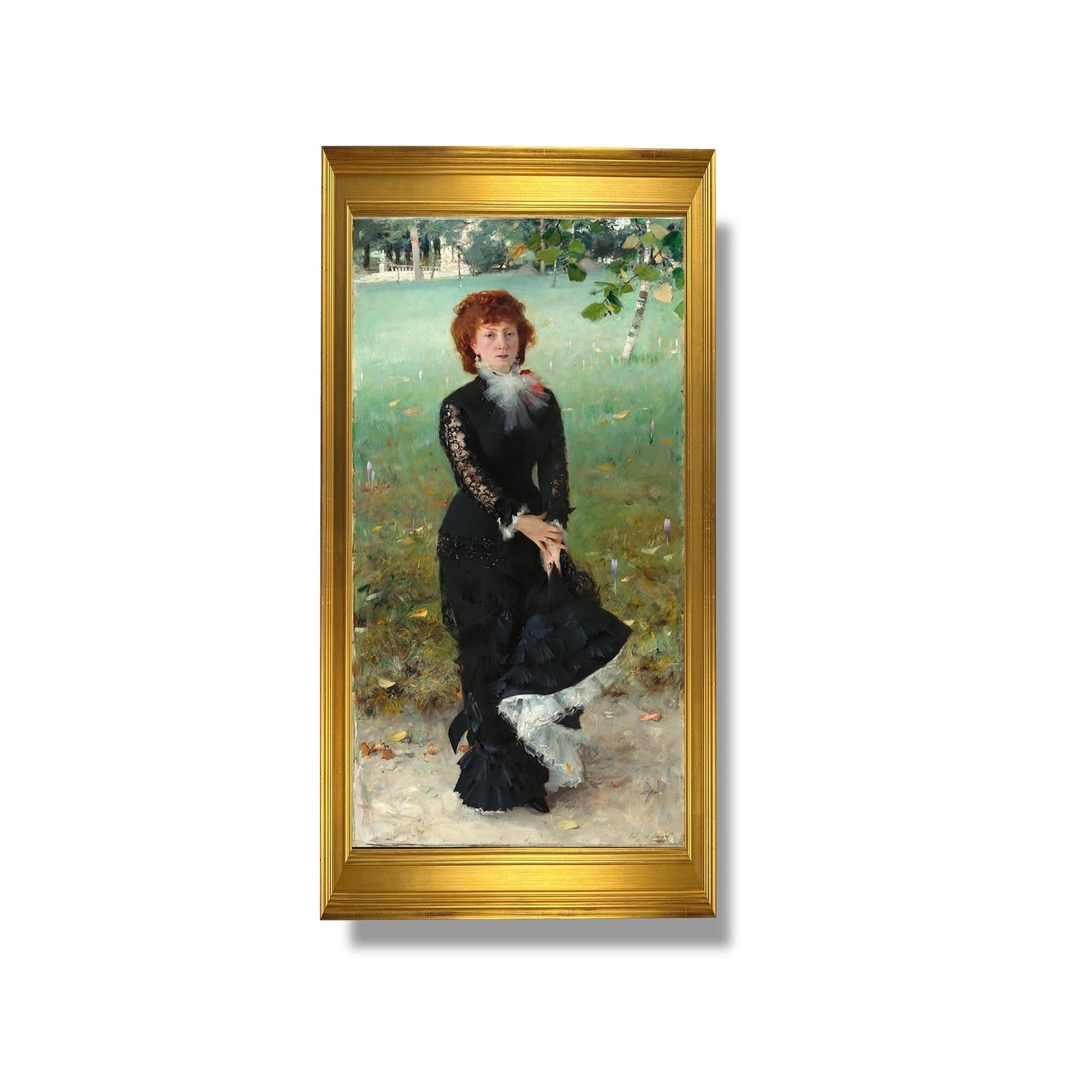 „Madame Édouard Pailleron“ ist ein ikonisches Werk von John Singer Sargent aus dem Jahr 1880. Dieses Porträt zeigt Marie Buloz Pailleron, die Frau eines französischen Schriftstellers, in einer eleganten und kultivierten Pose. Sargent, ein Meister der Porträtmalerei, fängt die Persönlichkeit seines Modells durch kleinste Details und eine reiche Farbpalette ein. Licht spielt eine wesentliche Rolle und hebt die Textur der Kleidung und das ausdrucksstarke Gesicht von Madame Pailleron hervor. Dieses Gemälde veranschaulicht nicht nur Sargents Talent zur realistischen Darstellung, sondern auch seine Fähigkeit, die Intimität und Würde seiner Motive zu vermitteln.
