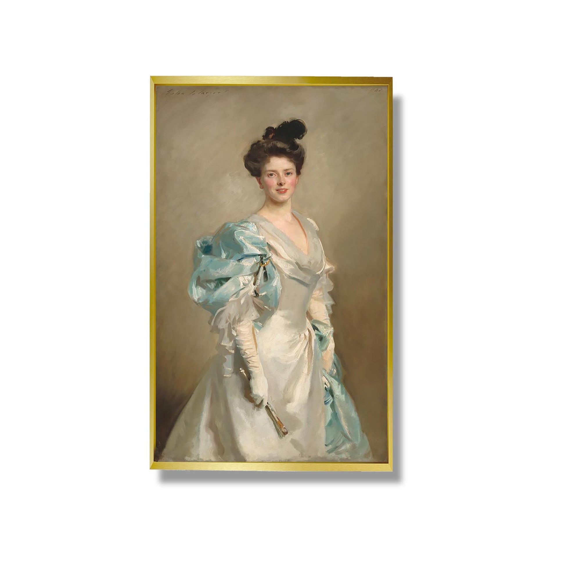 „Mary Crowninshield Endicott Chamberlain“ von John Singer Sargent aus dem Jahr 1904 ist ein eindrucksvolles Porträt, das die Eleganz und Persönlichkeit seines Motivs einfängt. Mary Chamberlain, die Frau eines britischen Politikers, ist in einem prächtigen Kleid in einem eleganten Interieur sitzend dargestellt. Sargent, ein Meister der Porträtmalerei, verwendet Lichtspiele und reiche Texturen, um die Anmut seines Modells hervorzuheben. Marias direkter Blick, kombiniert mit einer selbstbewussten Haltung, strahlt sowohl Stärke als auch Zartheit aus. Dieses Gemälde veranschaulicht perfekt Sargents Stil, der Realismus und Raffinesse vereint.