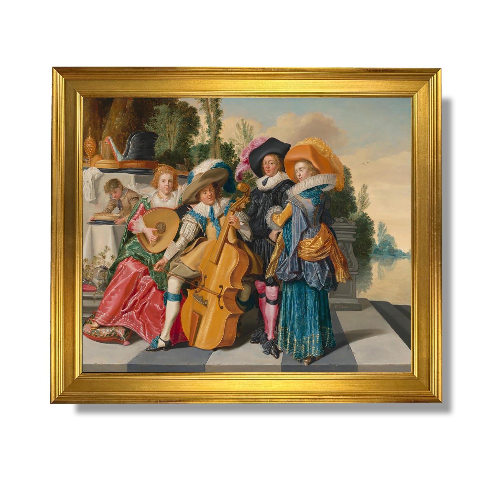 „Fröhliche Gesellschaft auf einer Terrasse“ ist ein ikonisches Werk von Dirck Hals, einem niederländischen Maler des 17. Jahrhunderts, der für seine lebhaften Genreszenen bekannt ist. Dieses Gemälde zeigt eine fröhliche Zusammenkunft auf einer Terrasse, wo elegant gekleidete Figuren sich lebhaft unterhalten und Brettspiele spielen. Die detailreiche Komposition unterstreicht die Harmonie der Farben und des natürlichen Lichts und schafft eine freundliche Atmosphäre. Hals fängt den Geist des bürgerlichen Lebens seiner Zeit ein, indem er Intimität und Festlichkeit vermischt und gleichzeitig sein Geschick beweist, menschliche Interaktionen mit einem Hauch von Leichtigkeit und Freude darzustellen.