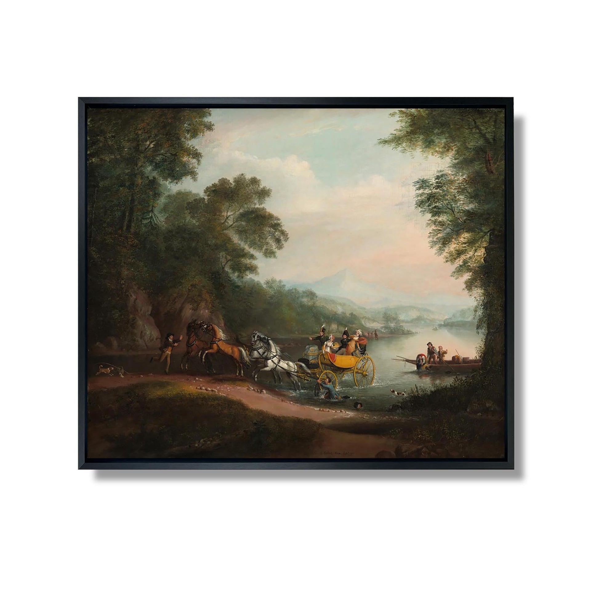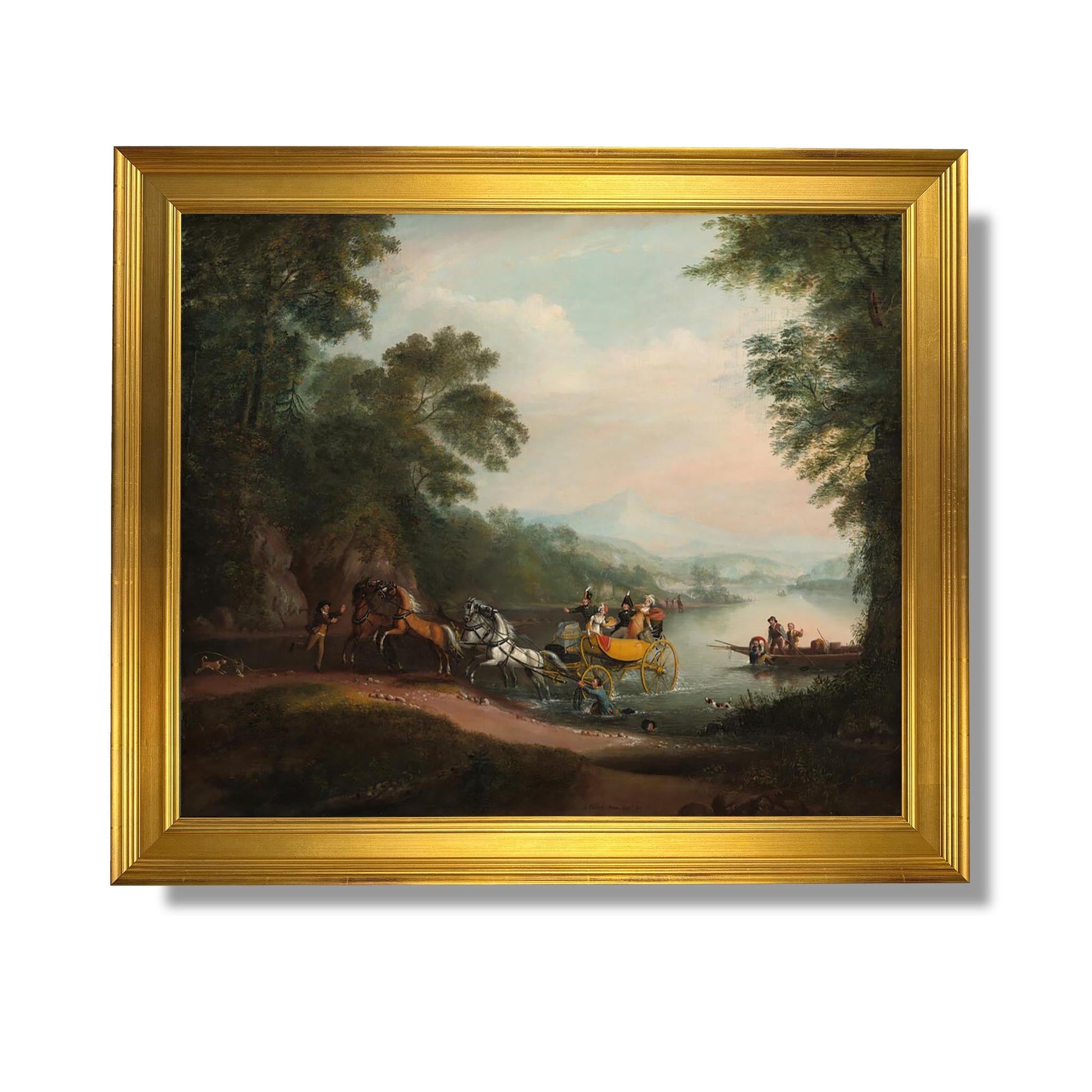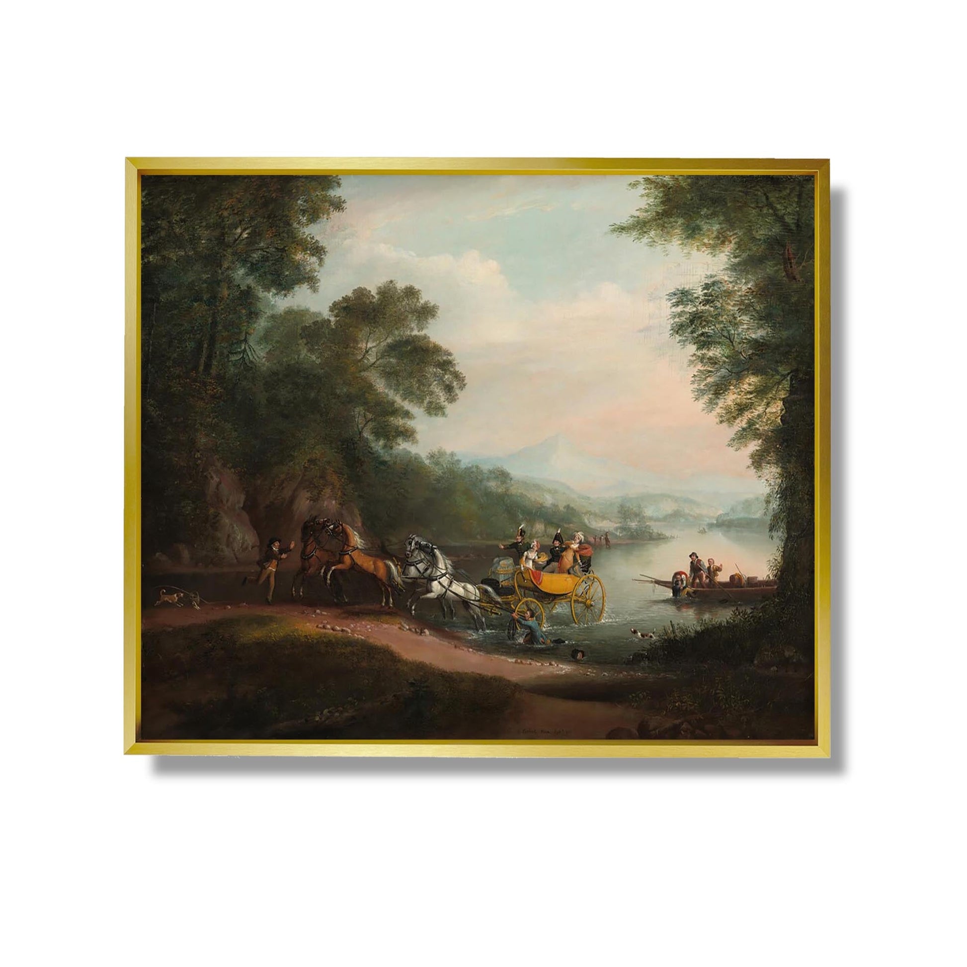 „Mishap at the Ford“ ist ein ikonisches Werk von Alvan T. Fisher, einem amerikanischen Maler des 19. Jahrhunderts, der für seine Landschaften und Szenen aus dem Alltag bekannt ist. Dieses Gemälde zeigt einen dramatischen Moment, als eine Gruppe Reisender beim Überqueren eines Flusses in Schwierigkeiten gerät. Fisher fängt die Emotionen der Charaktere subtil ein und vermischt Spannung und Verletzlichkeit. Die detailreiche Komposition hebt die natürliche Schönheit der Landschaft hervor und betont gleichzeitig die Zerbrechlichkeit des Menschen angesichts der Kräfte der Natur. Dieses Gemälde zeigt Fishers Fähigkeit, Realismus und Romantik zu verbinden und bietet eine Reflexion über die Interaktion zwischen dem Menschen und seiner Umwelt.
