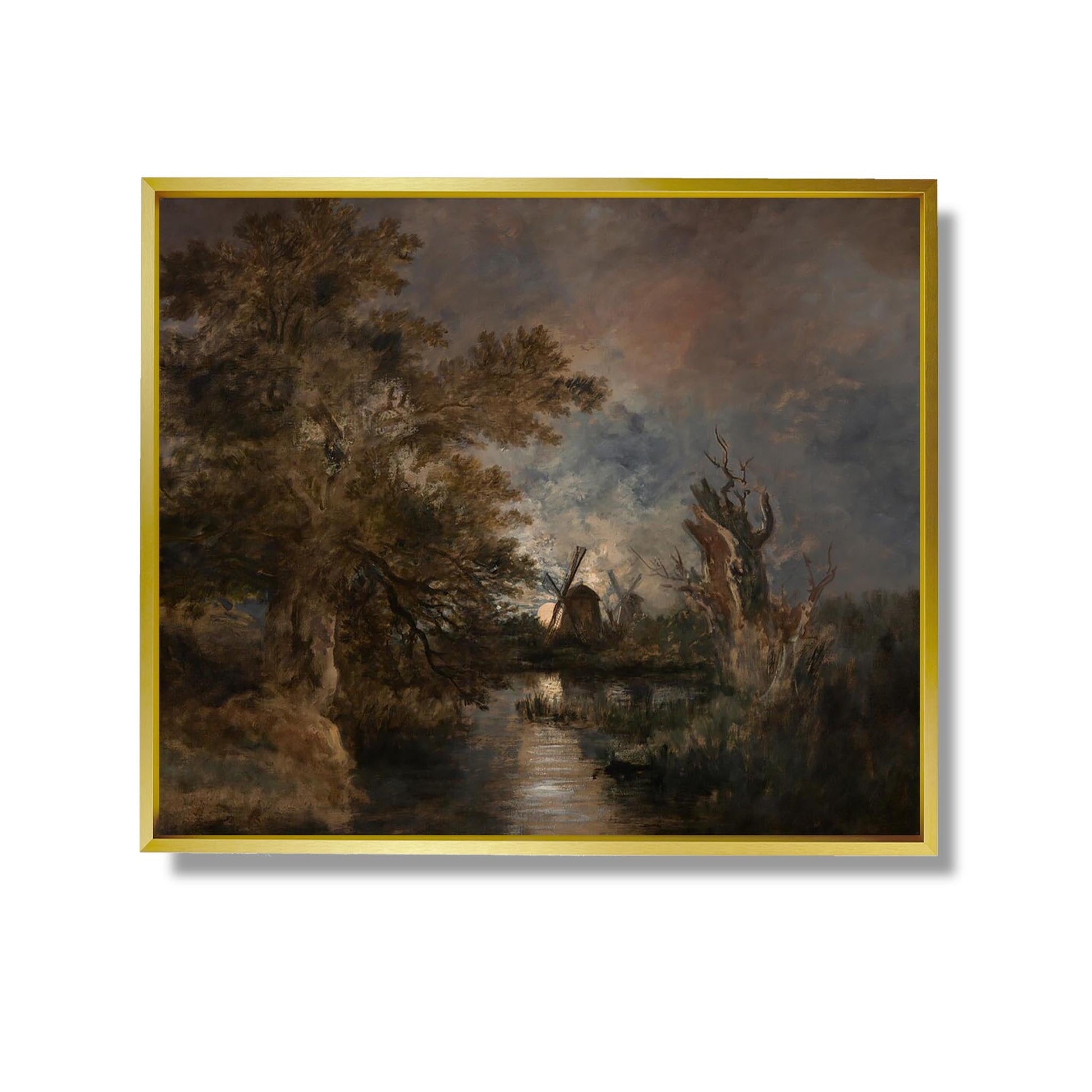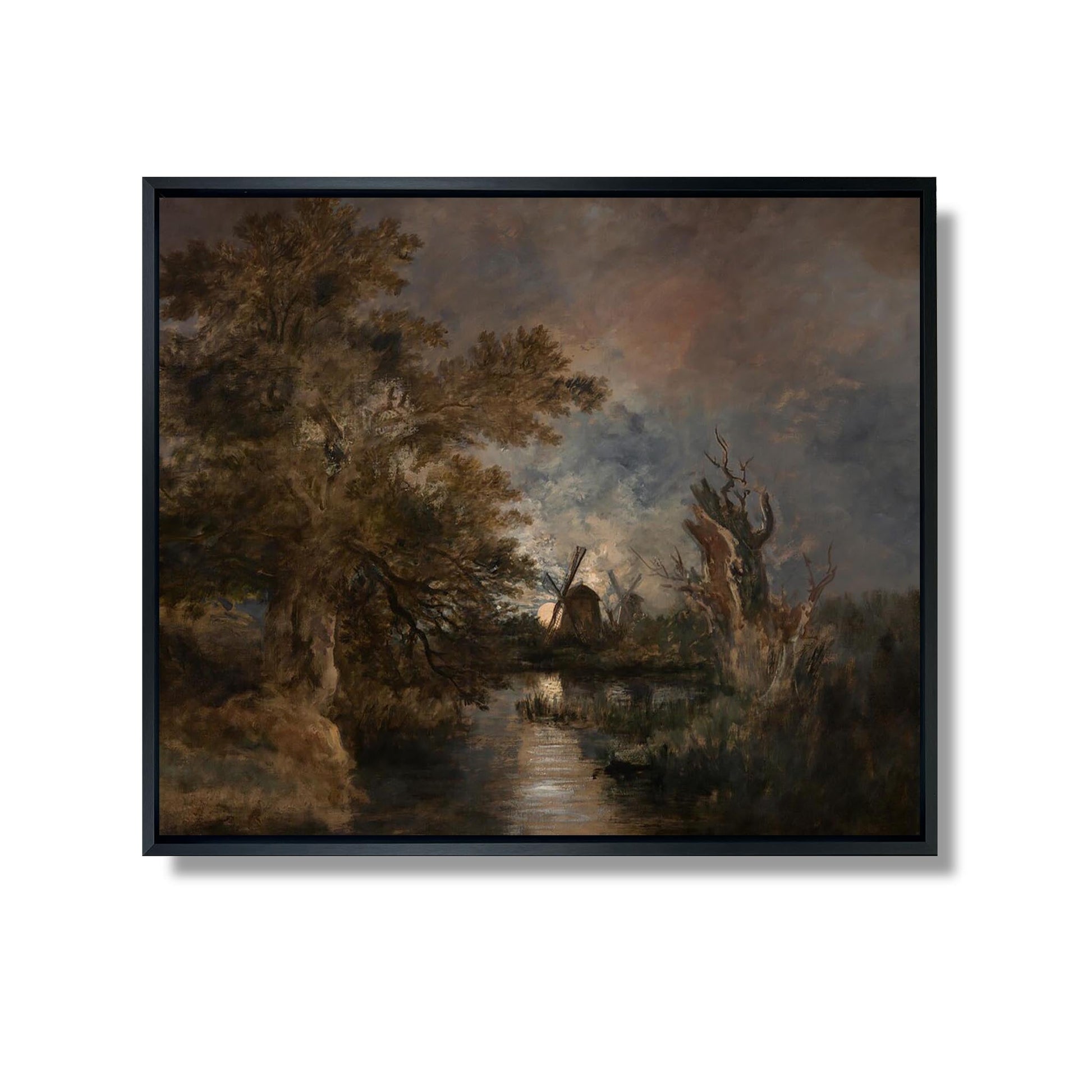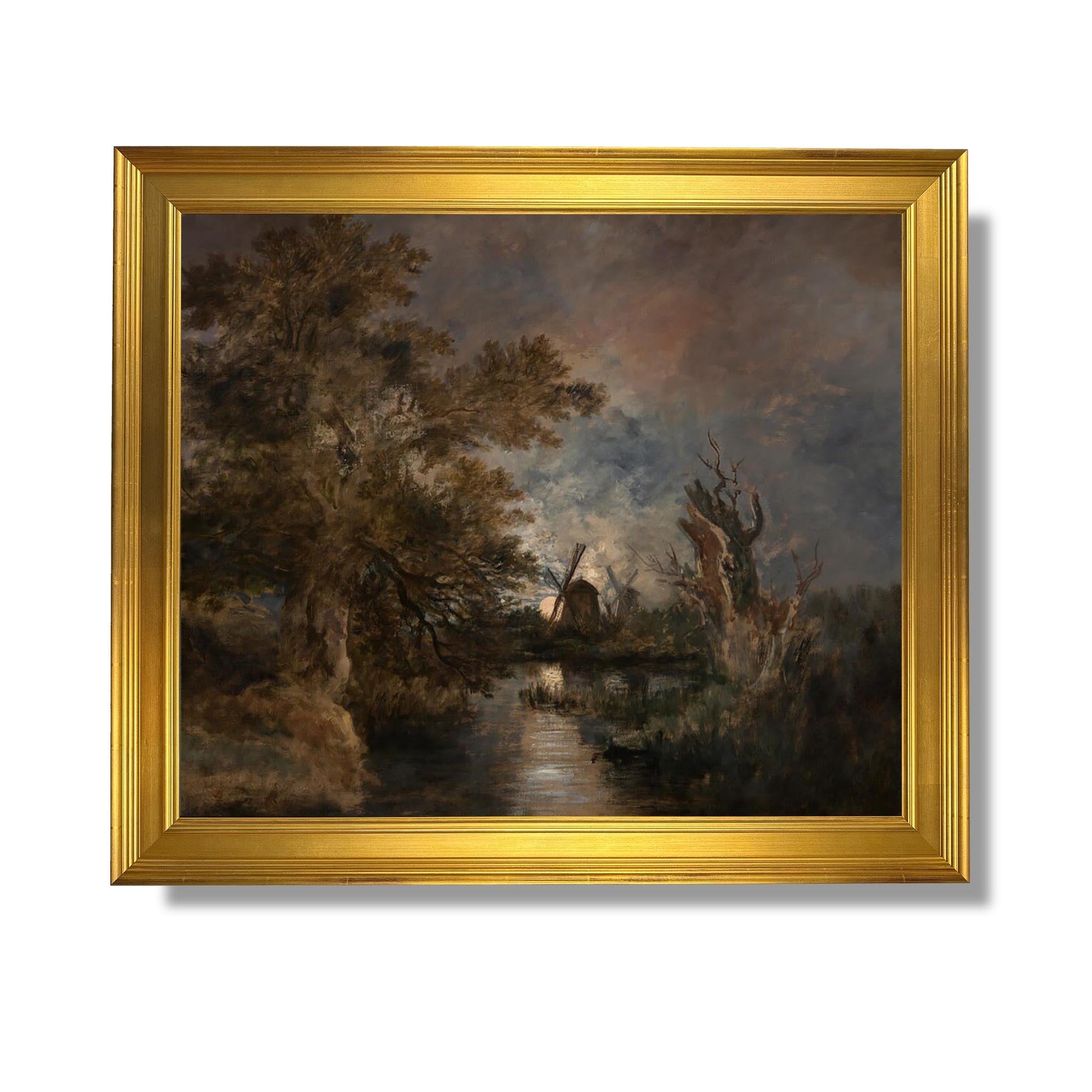 „Mondschein auf dem Yare“ ist ein ikonisches Werk von John Crome, einem englischen Maler des frühen 19. Jahrhunderts, der für seine Rolle in der Romantik und seine Hingabe zur Natur bekannt ist. Dieses 1826 entstandene Gemälde fängt die heitere Schönheit einer nächtlichen Landschaft am Fluss Yare in Norfolk ein. Das sanfte Licht des Mondes spiegelt sich im Wasser und schafft eine poetische und besinnliche Atmosphäre. Crome verwendet subtile Farben und feine Details, um die Ruhe des Augenblicks hervorzurufen. Seine Arbeit zeugt von einer tiefen Verbundenheit mit der englischen Landschaft und einem Gespür für Licht, die für seinen Stil charakteristisch sind.