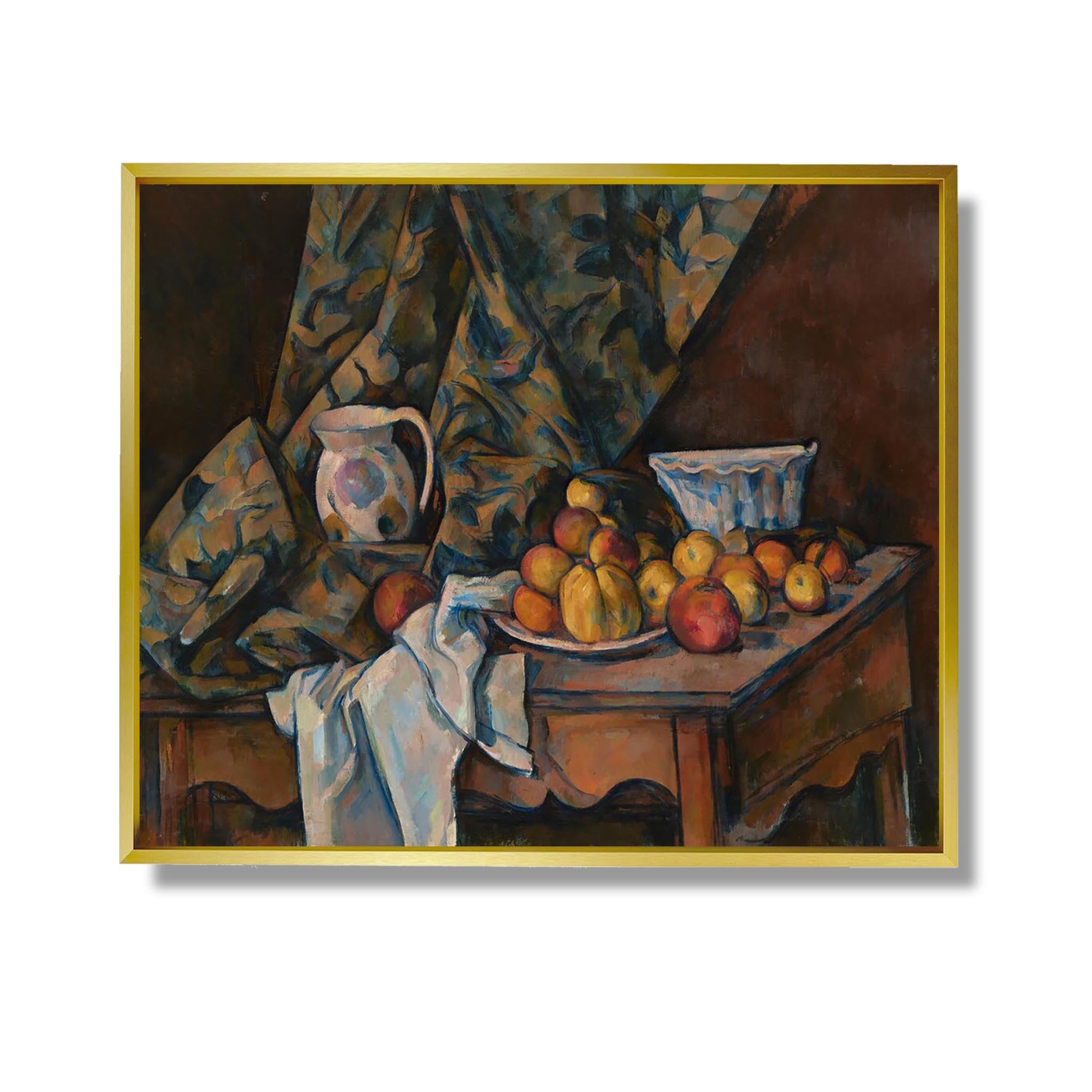 „Stillleben mit Äpfeln und Pfirsichen“ ist ein ikonisches Werk von Paul Cézanne, das zwischen 1890 und 1894 entstand. In dieser Komposition untersucht Cézanne die Beziehung zwischen Formen und Farben und hebt die Einfachheit der Früchte hervor. Auf einem Tisch angeordnete Äpfel und Pfirsiche werden mit deutlichen Pinselstrichen wiedergegeben, wodurch eine lebendige Textur entsteht. Der Künstler verwendet warme Töne und subtile Schatten, um einen Eindruck von Volumen und Tiefe zu vermitteln. Dieses Stillleben veranschaulicht den Übergang zur Moderne, in der Cézanne versuchte, das wahre Wesen der Gegenstände einzufangen und damit viele spätere Künstler beeinflusste.