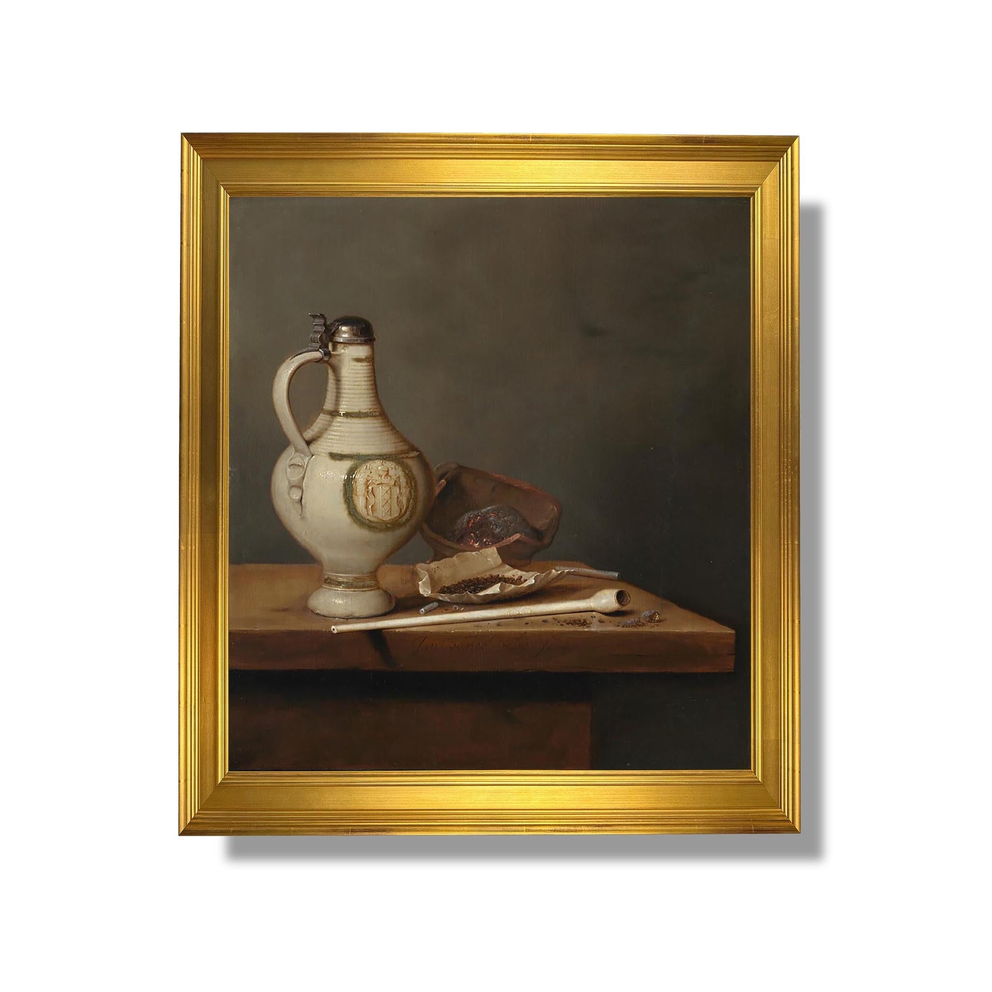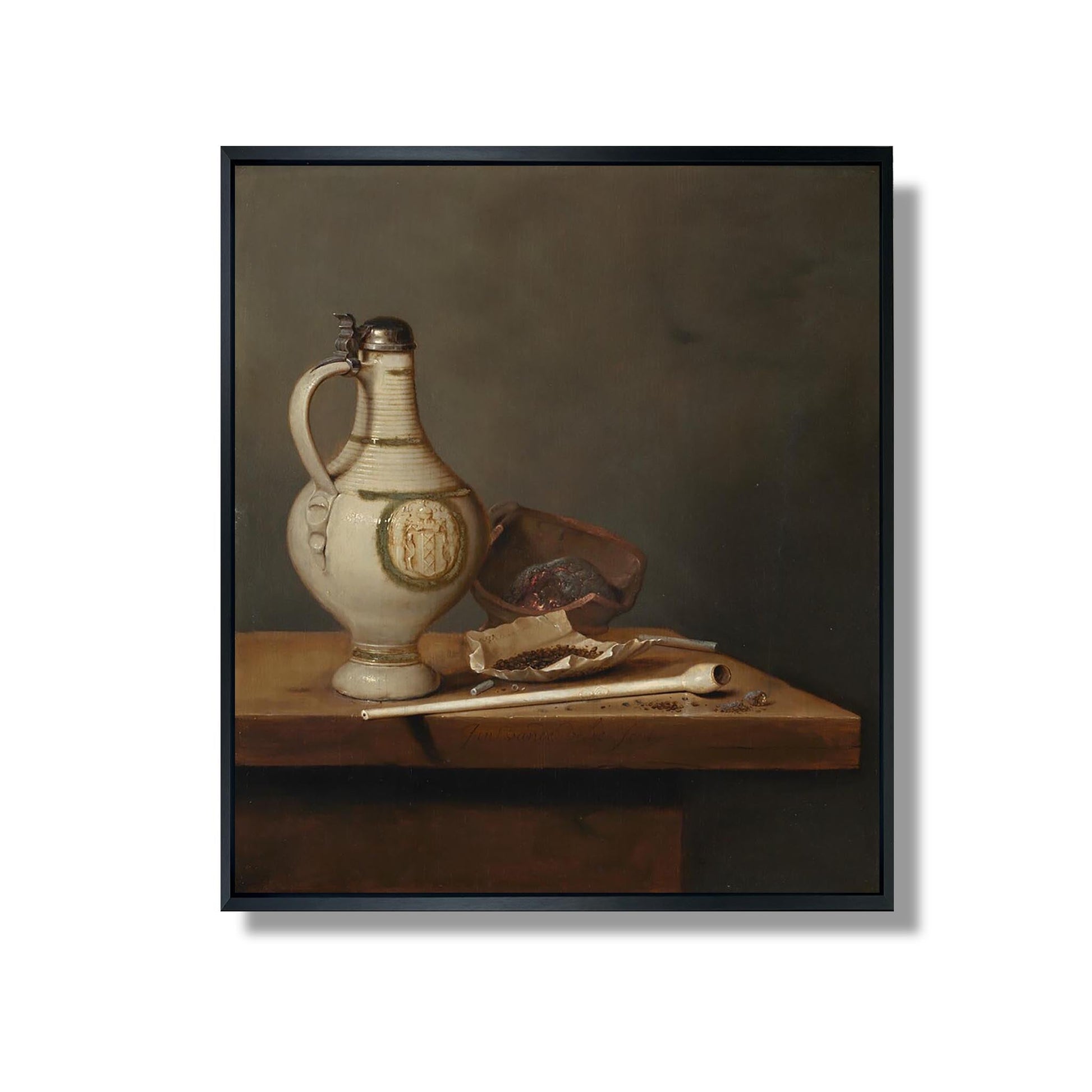 Jan Jansz van de Velde III, ein niederländischer Maler des 17. Jahrhunderts, ist für seine Stillleben bekannt, die die Schönheit alltäglicher Gegenstände einfangen. In seinem Werk „Stillleben mit Steingutkrug und Pfeife“ stellt er eine harmonische Komposition dar, bei der ein Steingutkrug und eine Pfeife auf einem Tisch platziert sind, umgeben von Früchten und anderen Elementen. Das sanfte Licht und die winzigen Details offenbaren sein Geschick im Spiel mit Texturen und Reflexionen. Dieses Werk veranschaulicht nicht nur die technische Meisterschaft des Künstlers, sondern auch sein Interesse an der Symbolik von Objekten, die die Eitelkeit und Vergänglichkeit des Lebens hervorrufen.
