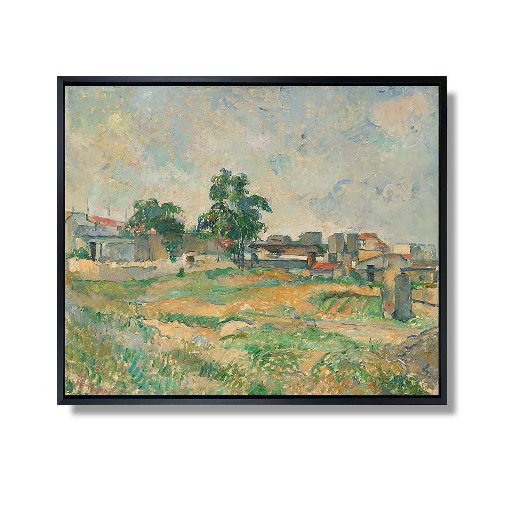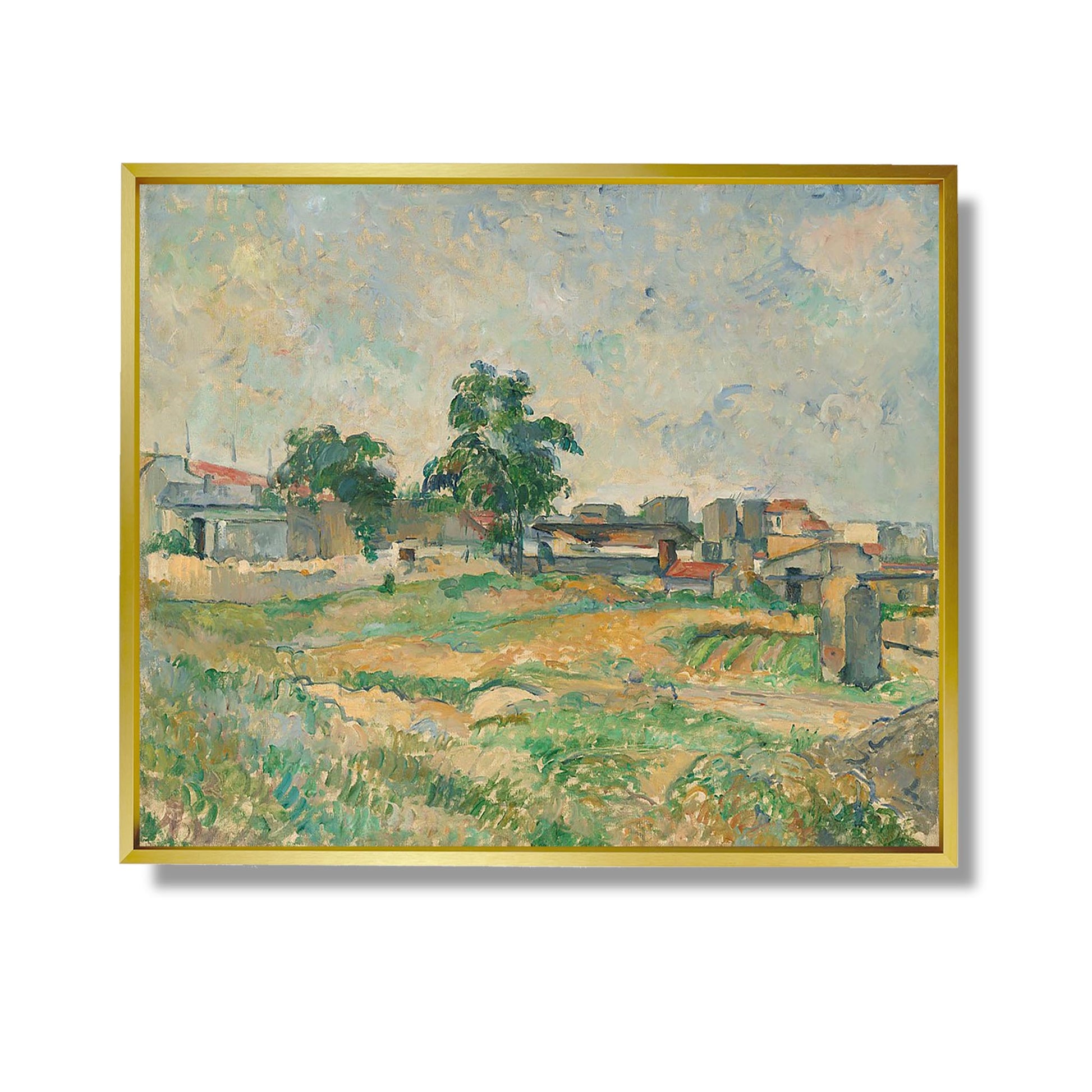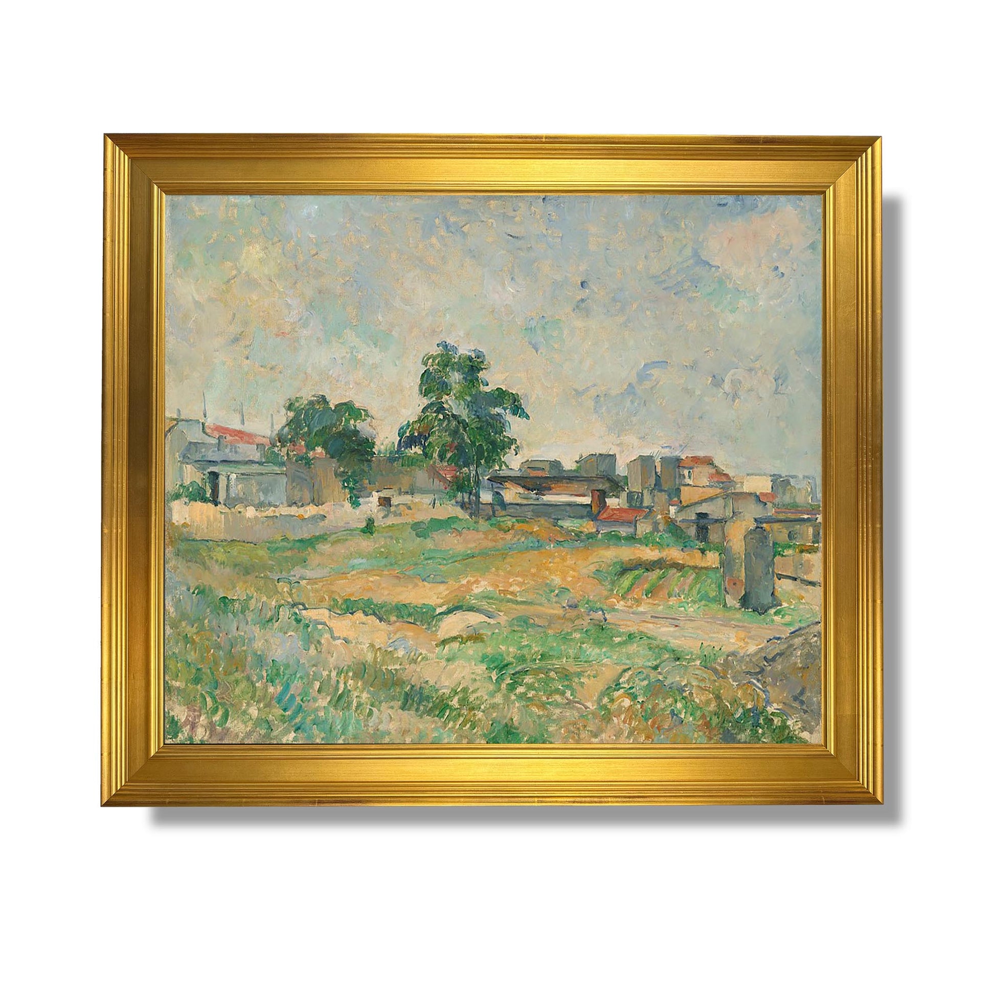 „Landschaft bei Paris“ ist ein emblematisches Werk von Paul Cézanne, das zwischen 1880 und 1885 entstand. Dieses Gemälde veranschaulicht den Übergang zwischen Realismus und Impressionismus, der für Cézannes Stil charakteristisch ist. Die Komposition zeigt eine ländliche Landschaft, in der die Natur mit geometrischen Formen und leuchtenden Farben dargestellt wird. Die zugleich zarten und strukturierten Pinselstriche erzeugen eine Atmosphäre der Gelassenheit. Indem Cézanne sich von winzigen Details entfernt, lädt er den Betrachter ein, die Harmonie zwischen Mensch und Natur zu spüren, und nimmt so moderne Strömungen in der Kunst vorweg.