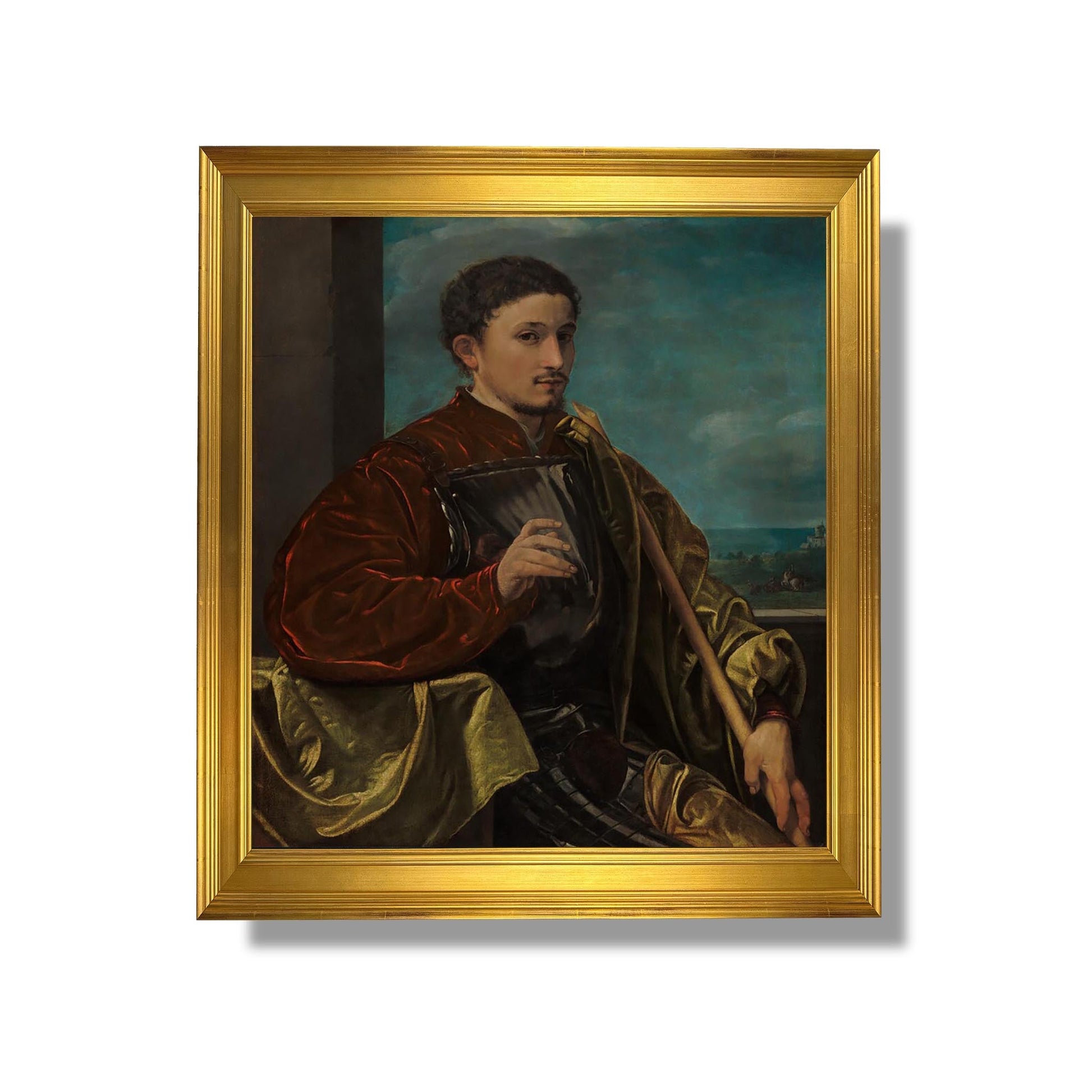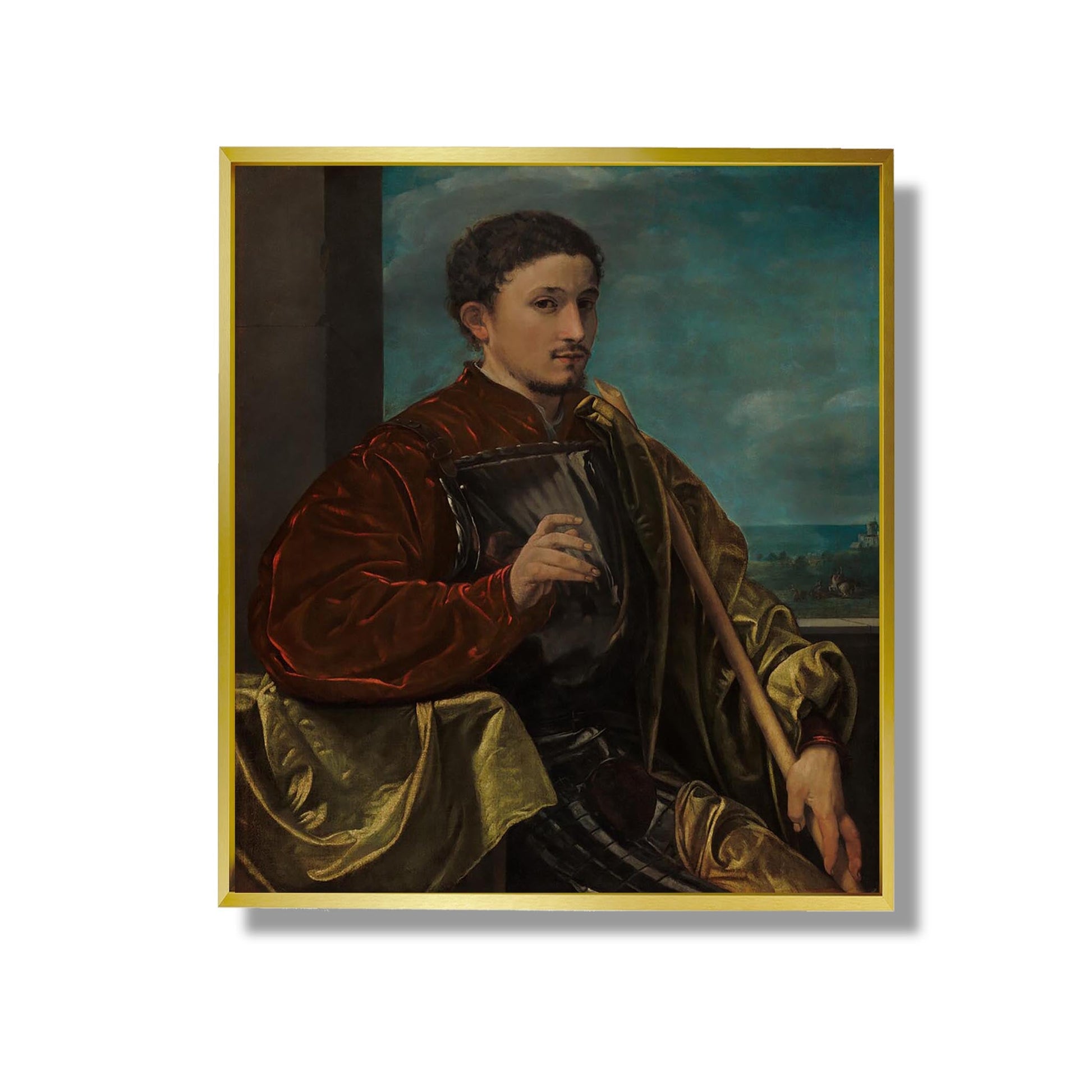 „Porträt eines Ritters“ von Giovanni Girolamo Savoldo ist ein ikonisches Werk der italienischen Renaissance, das um 1520 entstand. Dieses Gemälde zeigt einen Edelmann in Rüstung, dessen intensiver Blick und stolze Haltung eine Aura der Würde und des Geheimnisvollen ausstrahlen. Savoldo, ein Meister des Hell-Dunkel-Malens, nutzt Lichtspiele, um die Details der Rüstung und des Gesichts hervorzuheben und so eine Atmosphäre zu schaffen, die sowohl realistisch als auch symbolisch ist. Der dunkle Hintergrund hebt das Motiv hervor und unterstreicht die Bedeutung des Porträts für die Darstellung des sozialen Status. Dieses Werk veranschaulicht Savoldos Talent, das menschliche Wesen und die Psychologie seiner Modelle einzufangen.