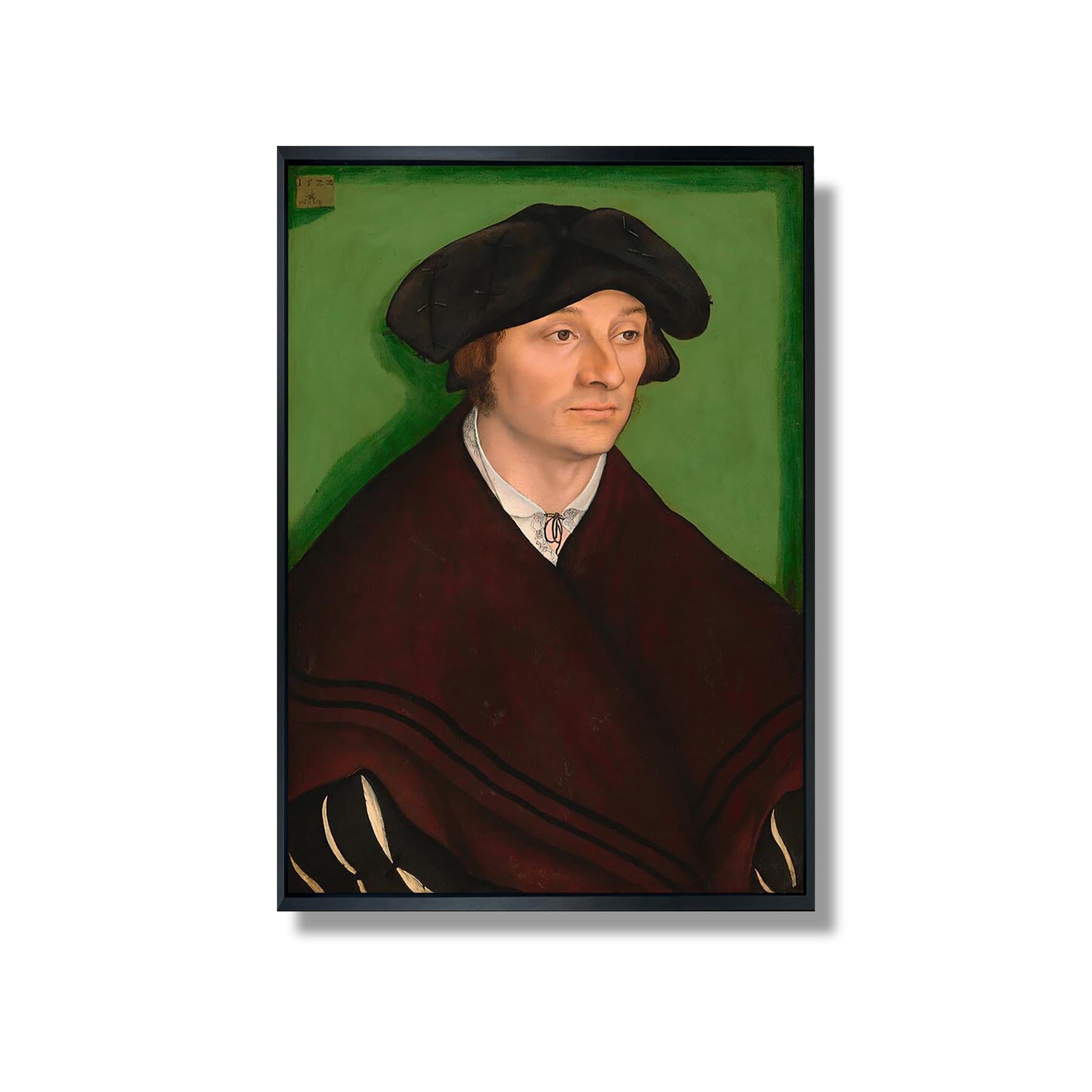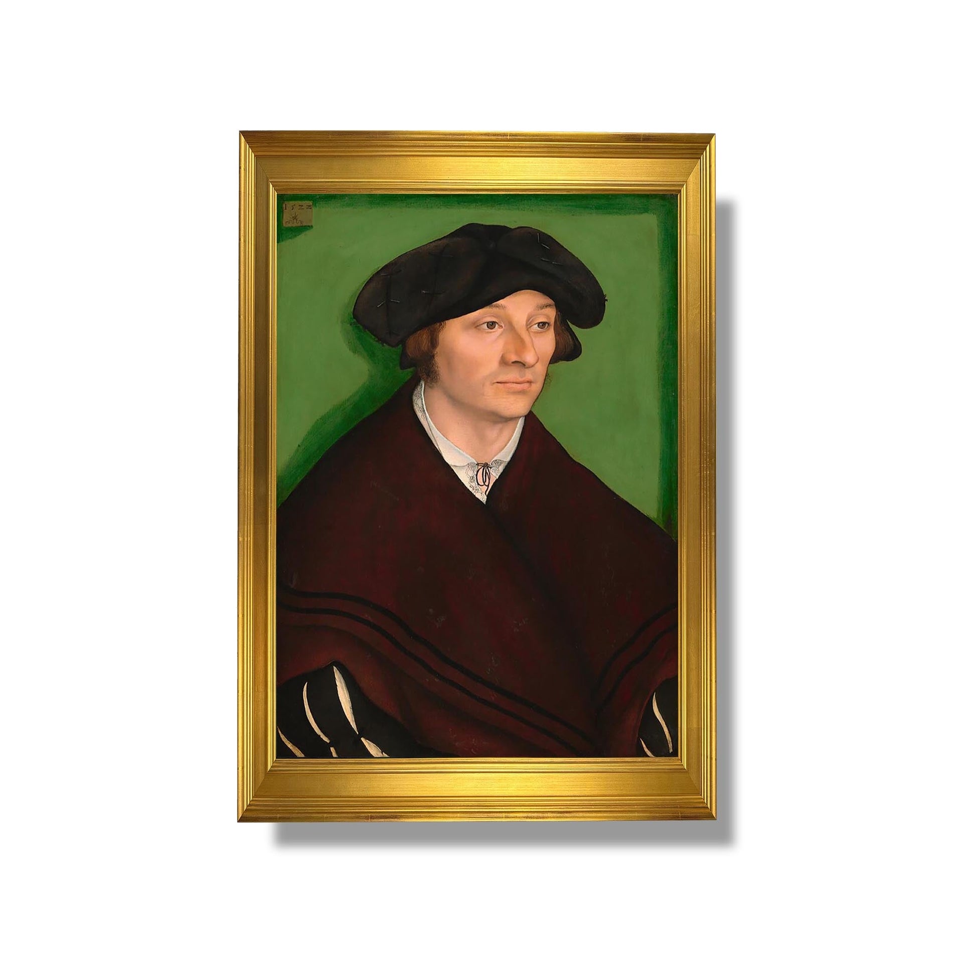 „Bildnis eines Mannes“ von Lucas Cranach dem Älteren, gemalt im frühen 16. Jahrhundert, ist ein ikonisches Werk der deutschen Renaissance. Dieses Gemälde zeigt einen Mann mittleren Alters, gekleidet in ein dunkles Gewand, mit durchdringendem Blick und nachdenklichem Gesichtsausdruck. Cranach, bekannt für seine meisterhafte Porträtmalerei, verwendet kräftige Farben und kleinste Details, um die Persönlichkeit des Motivs einzufangen. Das Werk veranschaulicht die Bedeutung von Individualität und Psychologie in der Kunst dieser Zeit. Dieses Porträt zeugt auch vom Einfluss des Humanismus und hebt die Würde und den Wert des Einzelnen hervor.