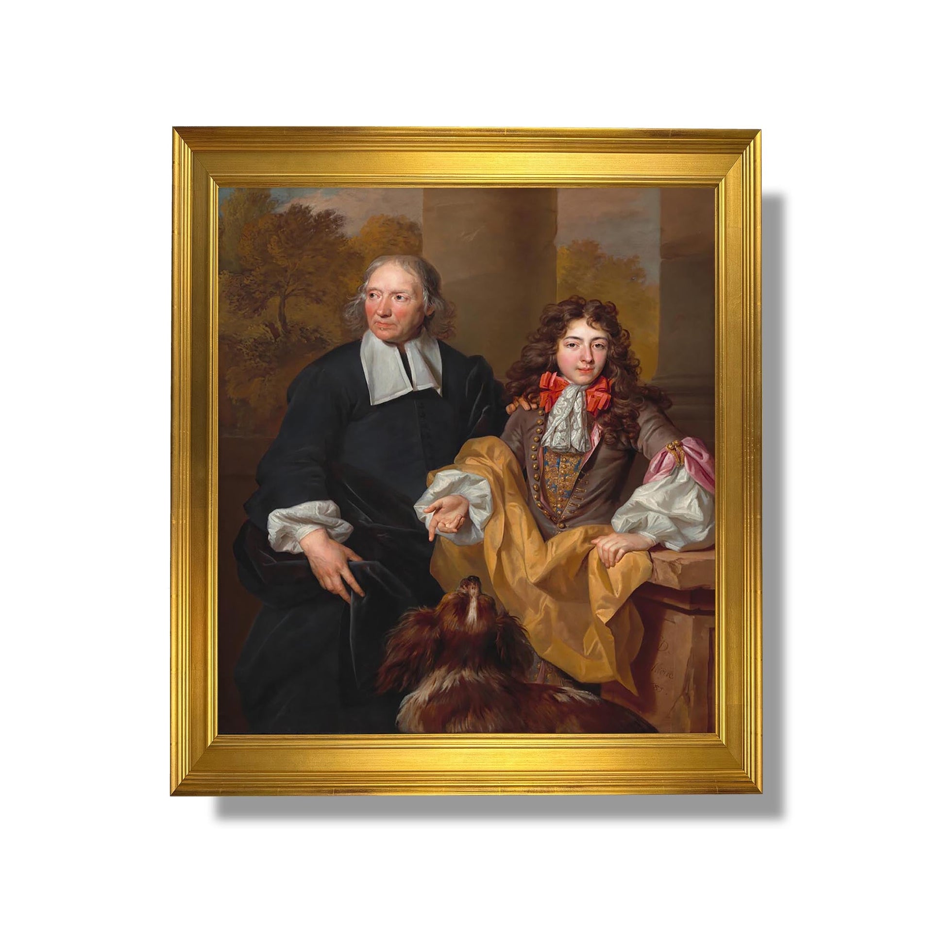 Nicolas de Largillierre, ein französischer Maler des 17. Jahrhunderts, ist berühmt für seine Porträts, die das Wesen seiner Motive mit großer Finesse einfangen. In „Porträt eines jungen Mannes und seines Tutors“ illustriert er die Beziehung zwischen dem Schüler und seinem Mentor, als Symbol für Bildung und Wissensvermittlung. Der elegant gekleidete junge Mann wird mit aufmerksamem Gesichtsausdruck dargestellt, während der Lehrer im Hintergrund Weisheit verkörpert. Largillierre erweckt diese intime Szene durch kräftige Farben und subtile Beleuchtung zum Leben und verdeutlicht so die Tiefe menschlicher Verbindungen und die Bedeutung des Lernens.