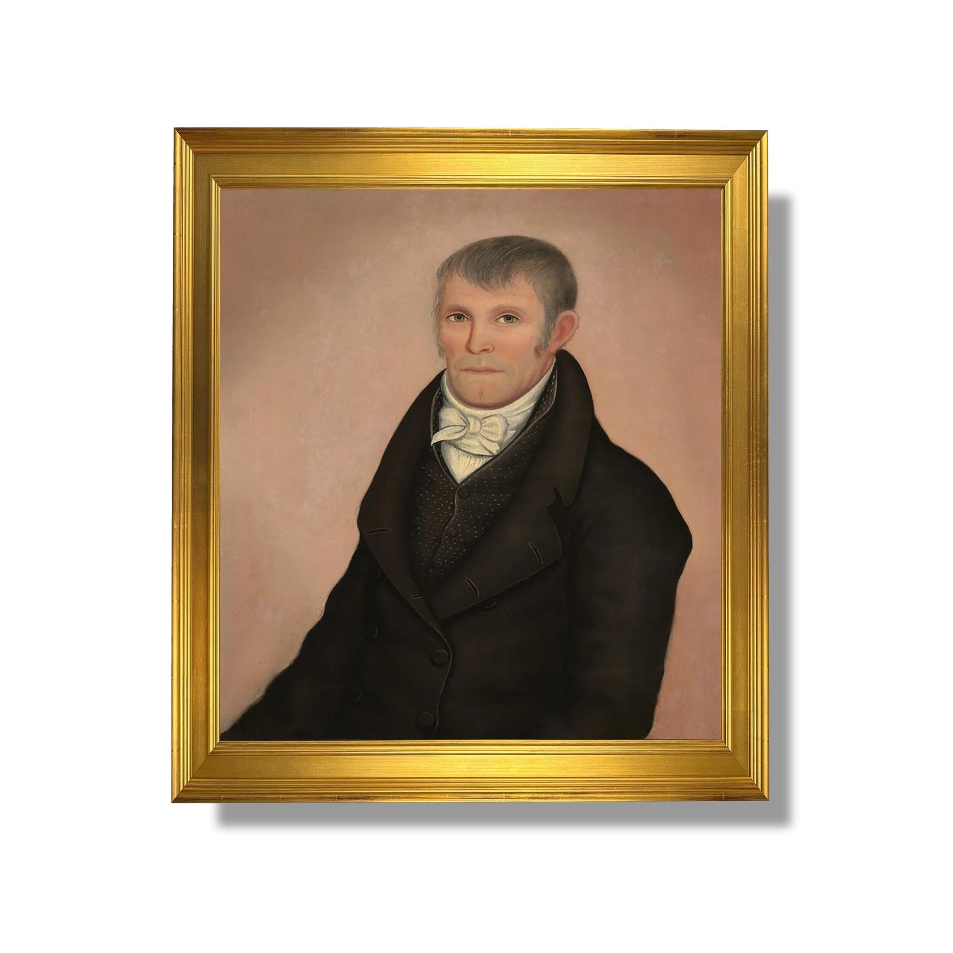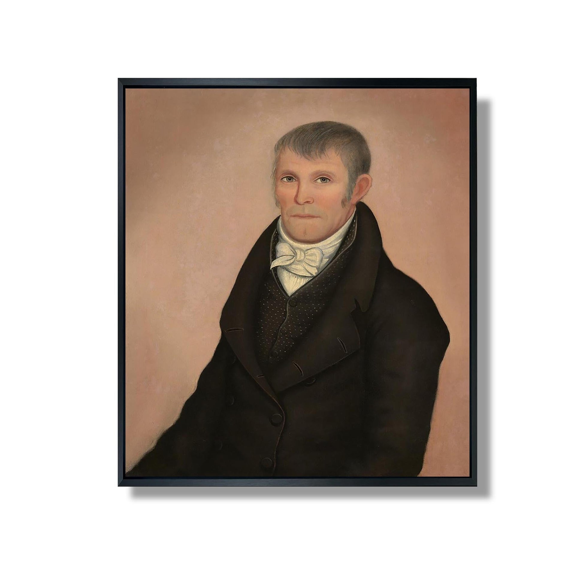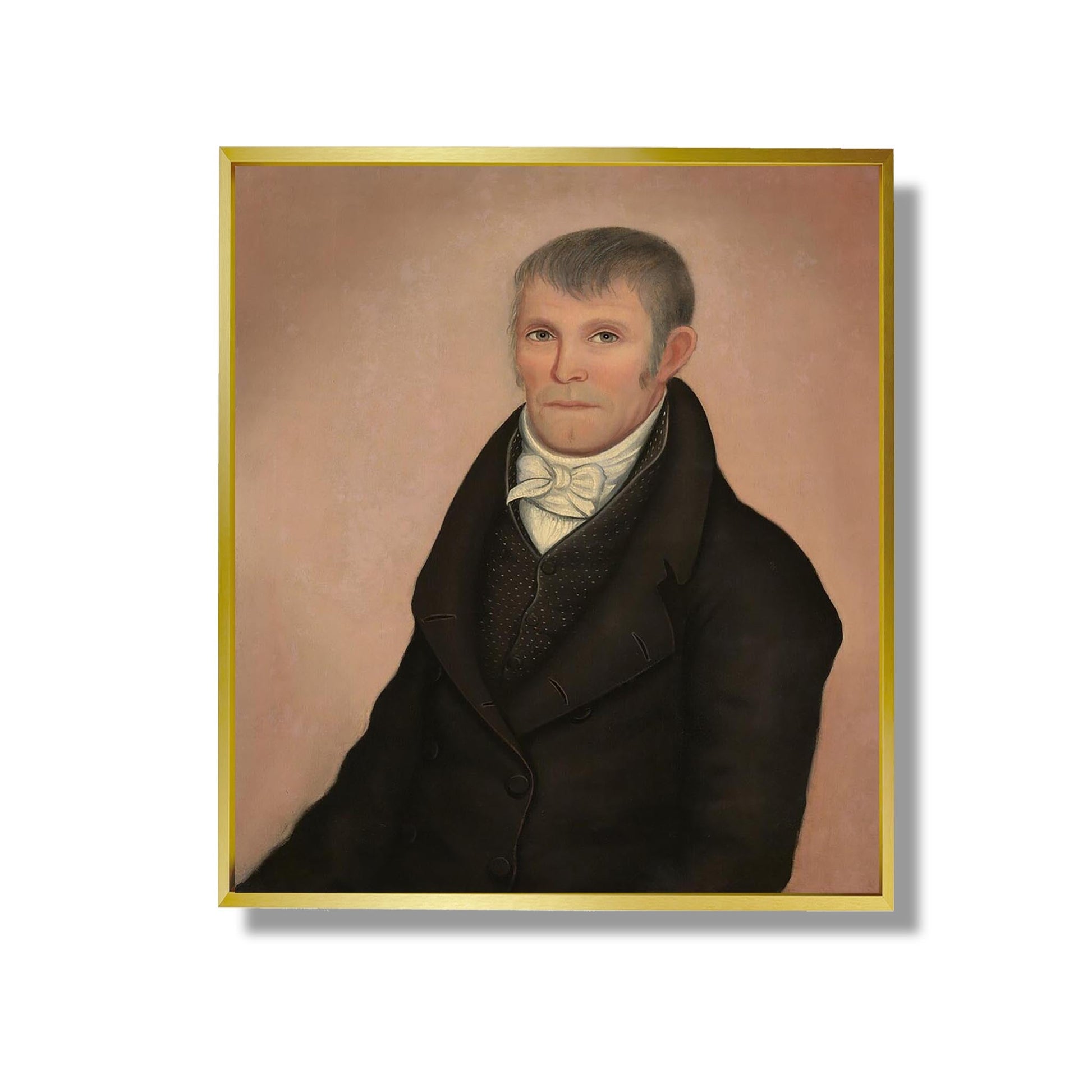 „Portrait of a Gentleman“ von Ammi Phillips ist ein ikonisches Werk der amerikanischen Malerei des 19. Jahrhunderts. Dieses um 1830 gemalte Porträt zeigt einen Mann von schlichter Eleganz, gekleidet in einen schwarzen Anzug und ein weißes Hemd, mit einem durchdringenden Blick, der die Aufmerksamkeit auf sich zieht. Phillips, der für seinen naiven Stil und seine lebendigen Porträts bekannt ist, gelingt es, die Persönlichkeit des Motivs durch kleinste Details und eine reiche Farbpalette zu vermitteln. Dieses Gemälde veranschaulicht nicht nur das Talent des Künstlers, sondern auch die Bedeutung der individuellen Darstellung in der amerikanischen Kunst dieser Zeit.