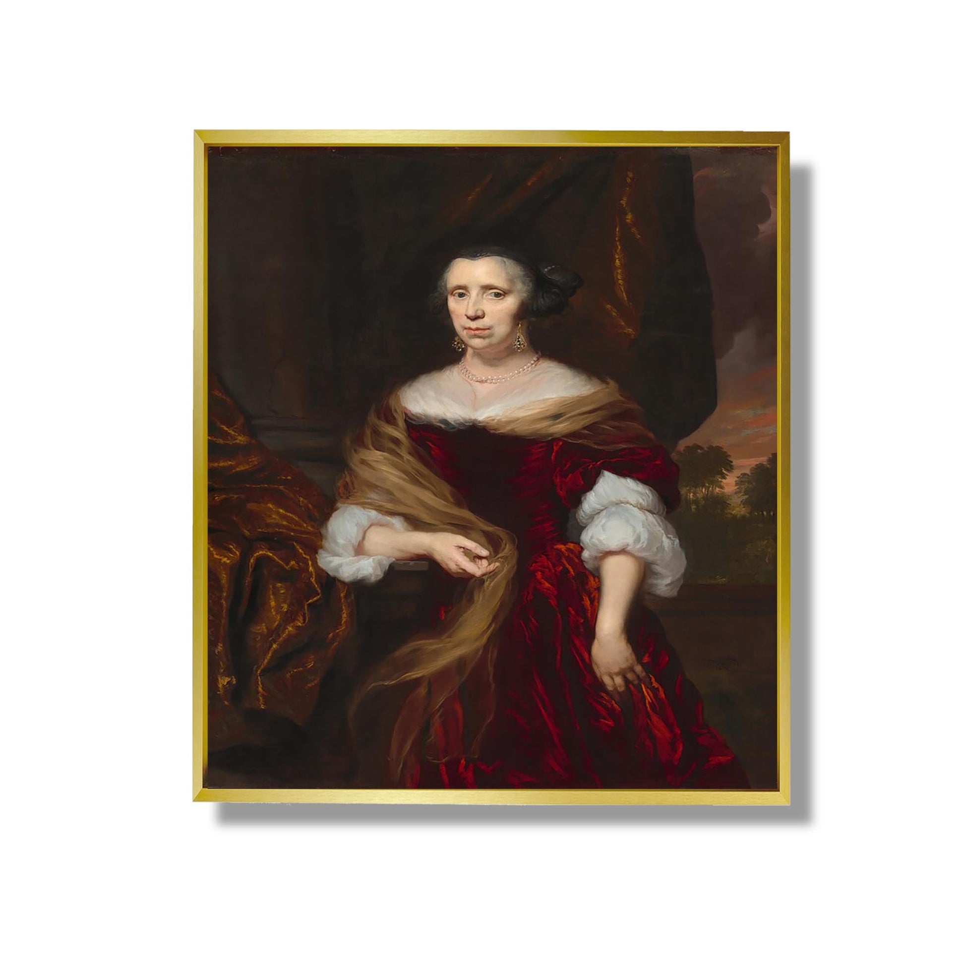 „Porträt einer Dame“ von Nicolaes Maes, einem niederländischen Maler des 17. Jahrhunderts, ist ein emblematisches Werk des Barockstils. Dieses um 1655 gemalte Gemälde fängt die Eleganz und Würde einer Frau der High Society ein. Maes, ein Schüler Rembrandts, nutzt das Spiel von Licht und Schatten, um die Textur der Kleidung und die Weichheit des Gesichts hervorzuheben. Der Blick der Dame, zugleich geheimnisvoll und fesselnd, lädt den Betrachter ein, ihre Identität und ihre Geschichte zu hinterfragen. Dieses Porträt veranschaulicht perfekt Maes' Fähigkeit, Realismus und Intimität zu verbinden, und macht dieses Werk zu einem Meisterwerk der Porträtmalerei.
