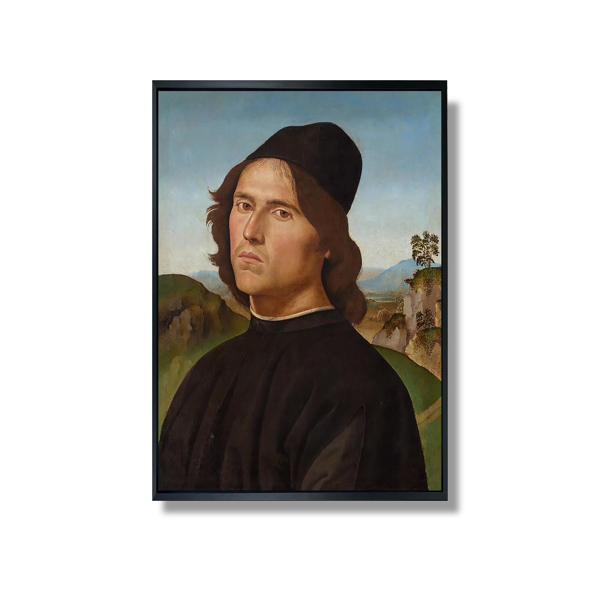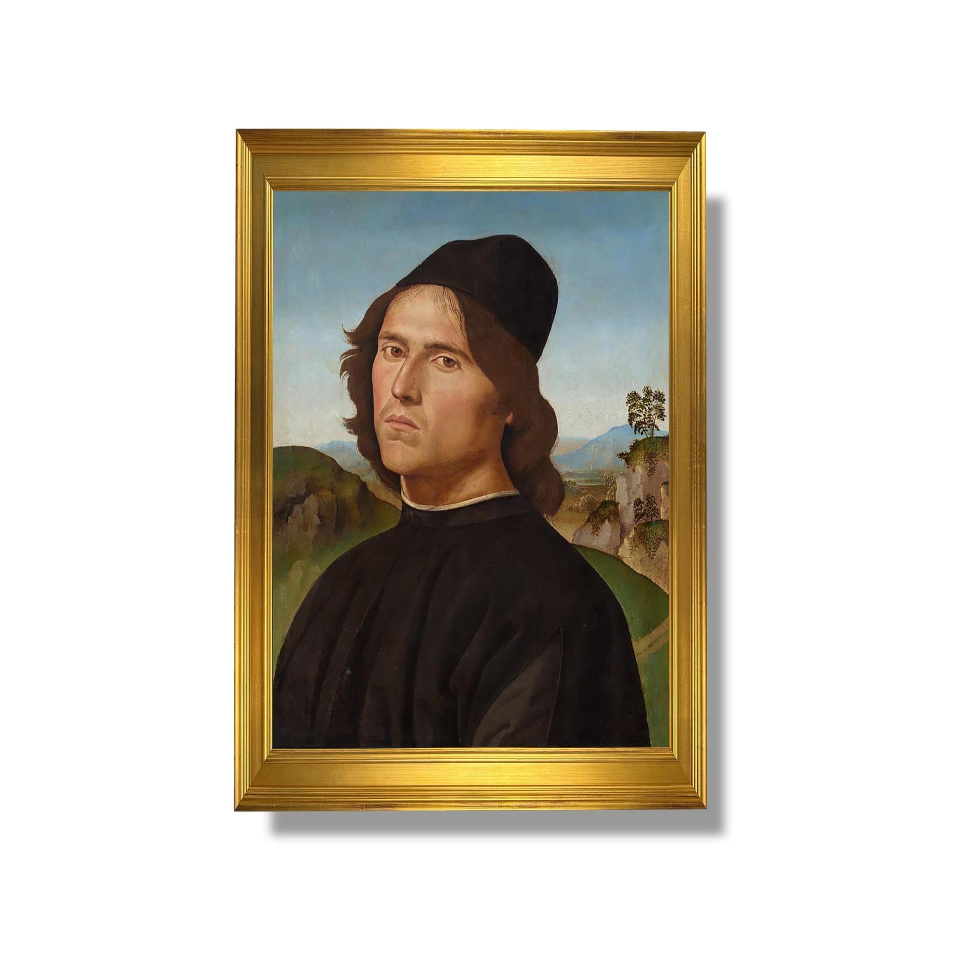 Das „Porträt des Lorenzo di Credi“ von Pietro Perugino ist ein emblematisches Werk der italienischen Renaissance, entstanden gegen Ende des 15. Jahrhunderts. Dieses Gemälde unterstreicht das Talent von Lorenzo di Credi, einem Schüler Verrocchios, indem es sein intellektuelles und künstlerisches Wesen einfängt. Perugino, Meister des Sfumato und der harmonischen Komposition, verwendet sanfte Farben und subtiles Licht, um eine heitere Atmosphäre zu schaffen. Lorenzos nachdenklicher Blick, kombiniert mit einem friedlichen Hintergrund, erinnert an die Suche nach Wissen und die Tiefe des menschlichen Geistes, die für diese blühende künstlerische Periode charakteristisch sind.