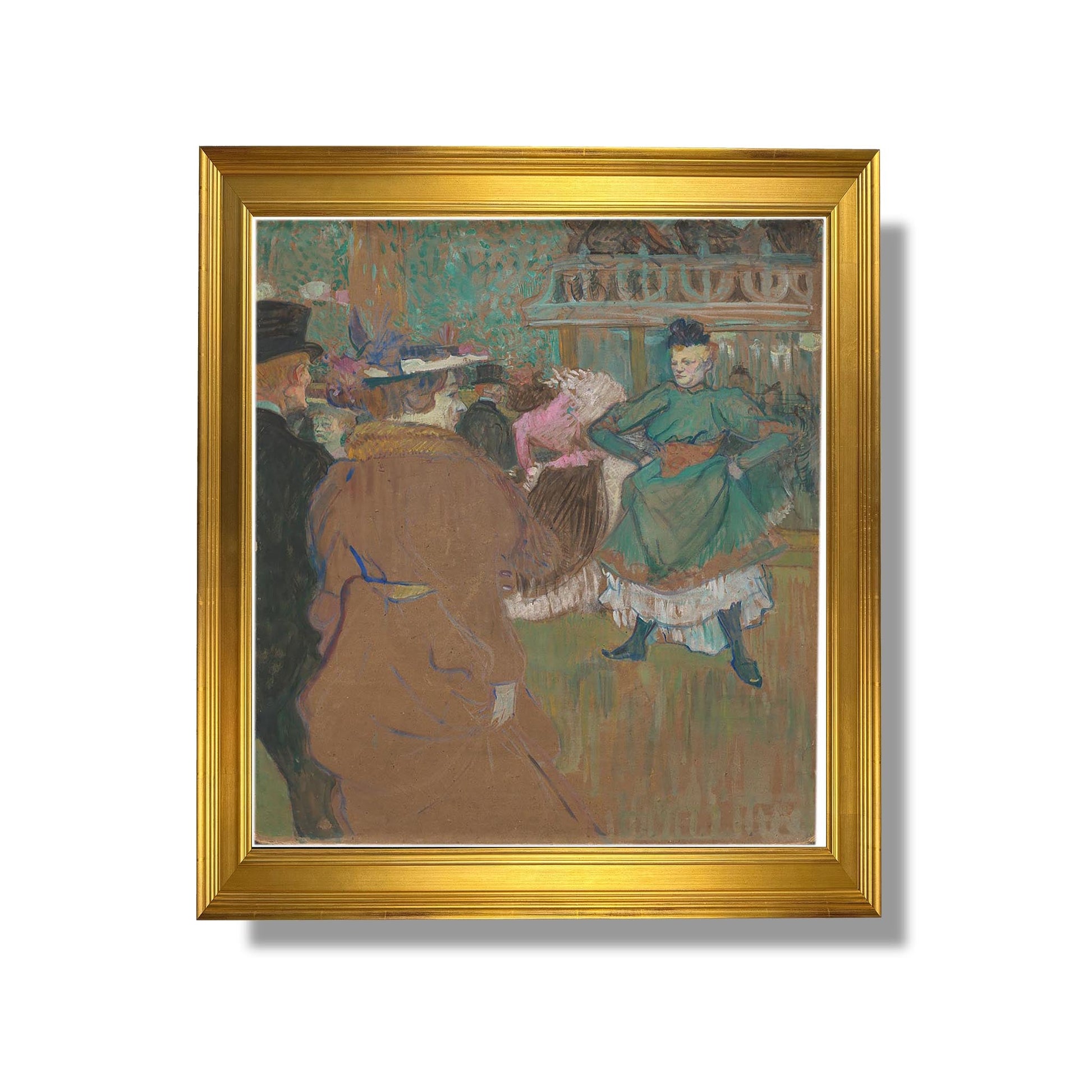 „Quadrille“ ist ein ikonisches Werk von Henri de Toulouse-Lautrec aus dem Jahr 1892. Dieses Gemälde zeigt eine Tanzszene in einem Pariser Kabarett und fängt die Aufregung des Nachtlebens von Montmartre ein. Toulouse-Lautrec, bekannt für seinen postimpressionistischen Stil, verwendet helle Farben und dynamische Linien, um die Bewegung und Energie der Tänzer zu vermitteln. Die Charaktere, oft aus der Arbeiterklasse, werden mit großer Ausdruckskraft dargestellt und spiegeln sowohl die Freude als auch die Melancholie der Zeit wider. „Quadrille“ verkörpert den Bohème-Geist und die Anziehungskraft von Kabarettshows und zeigt gleichzeitig das einzigartige Talent des Künstlers, das städtische Leben zu verewigen.