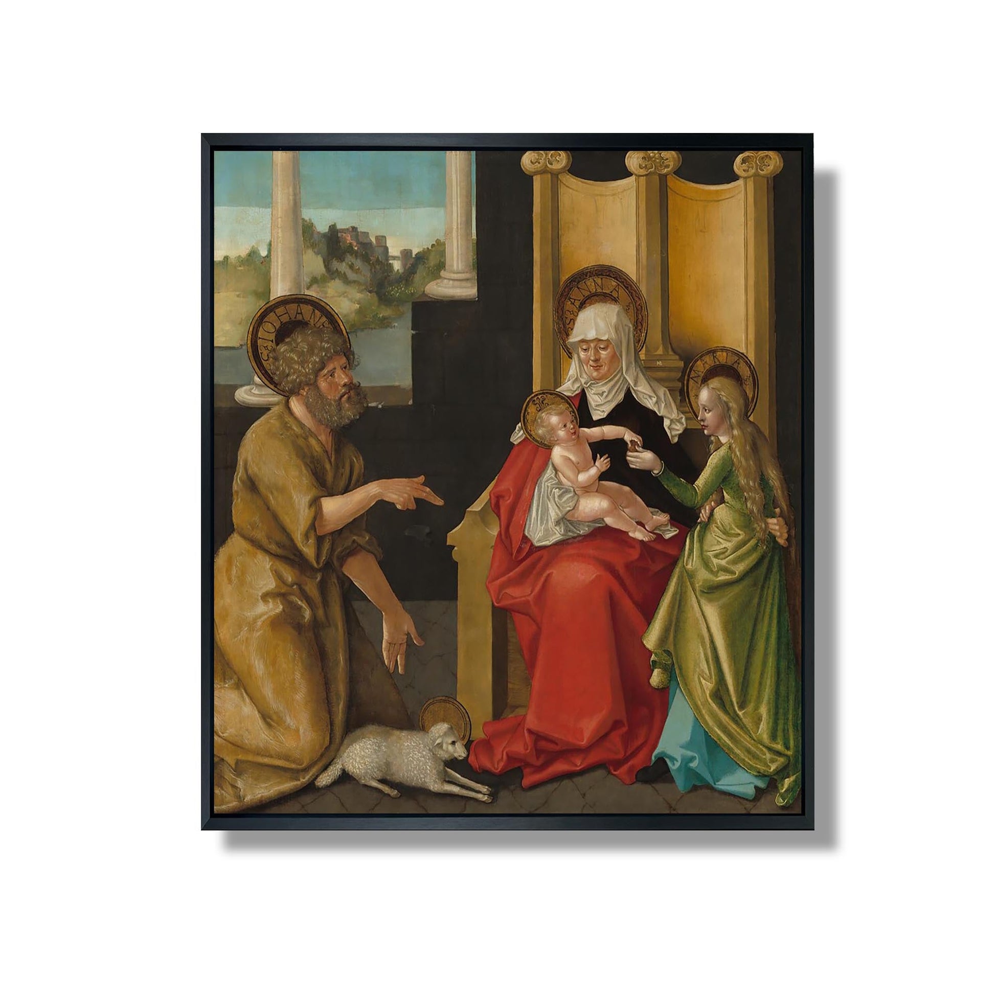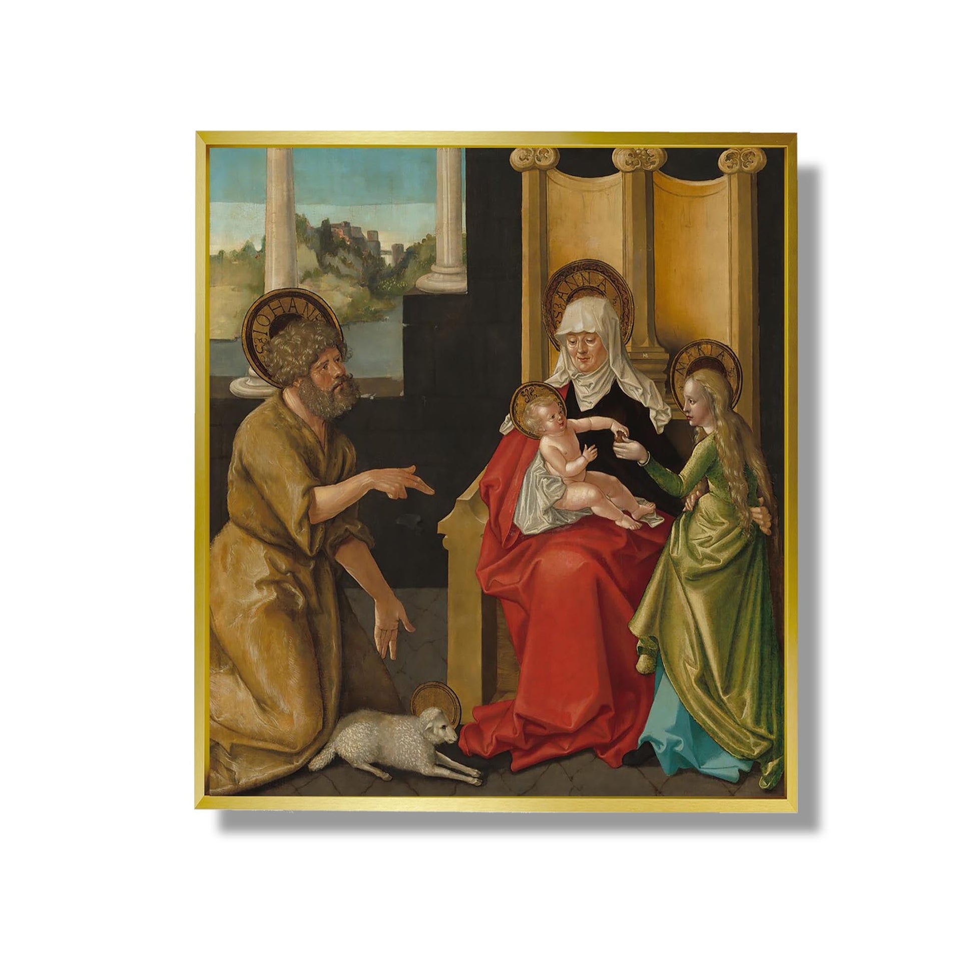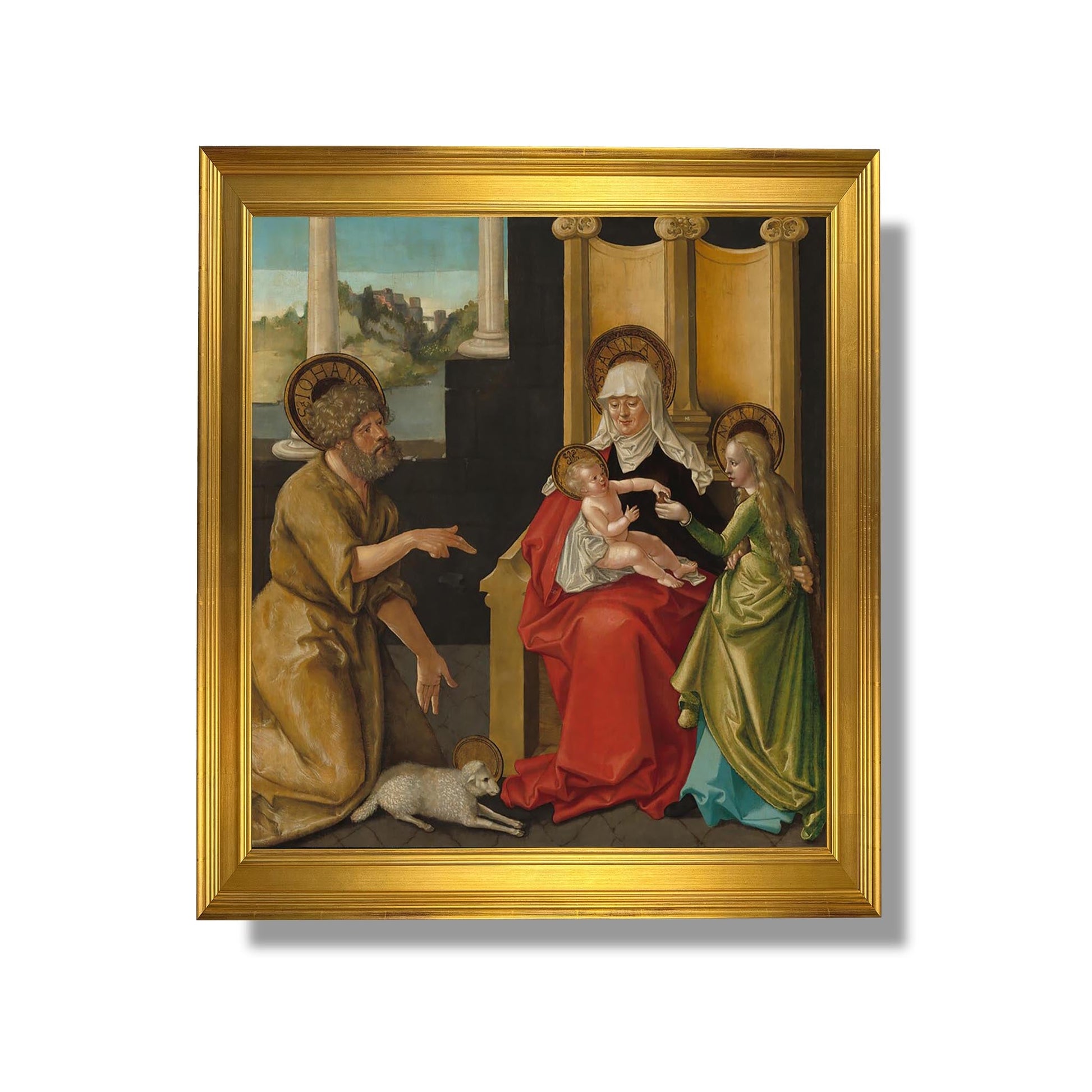 Das zu Beginn des 16. Jahrhunderts entstandene Werk „Die heilige Anna mit dem Jesuskind, der Jungfrau Maria und dem heiligen Johannes dem Täufer“ von Hans Baldung Grien veranschaulicht den Reichtum der deutschen Renaissance. Dieses Gemälde zeigt die Jungfrau Maria, ihre Mutter, die heilige Anna, und das Jesuskind, begleitet von Johannes dem Täufer. Der Künstler, ein Schüler Dürers, verwendet leuchtende Farben und sorgfältige Details, um Zärtlichkeit und Spiritualität zum Ausdruck zu bringen. Die Figuren sind harmonisch angeordnet und erzeugen eine Atmosphäre der Ruhe. Baldung Grien verbindet mit seinem einzigartigen Stil Tradition und Innovation und zeugt von der Tiefe des christlichen Glaubens.