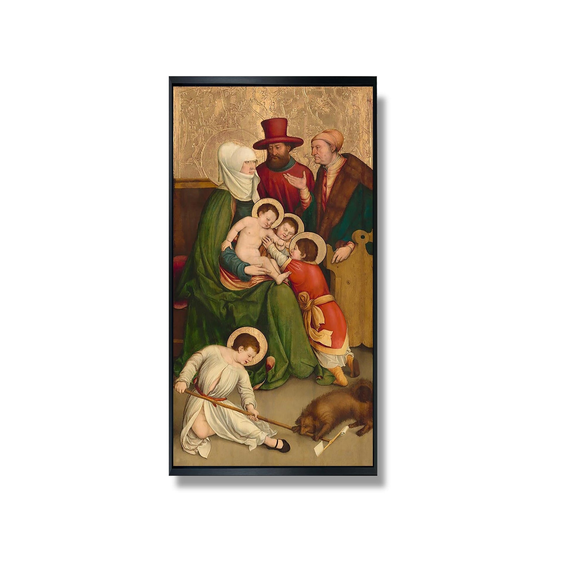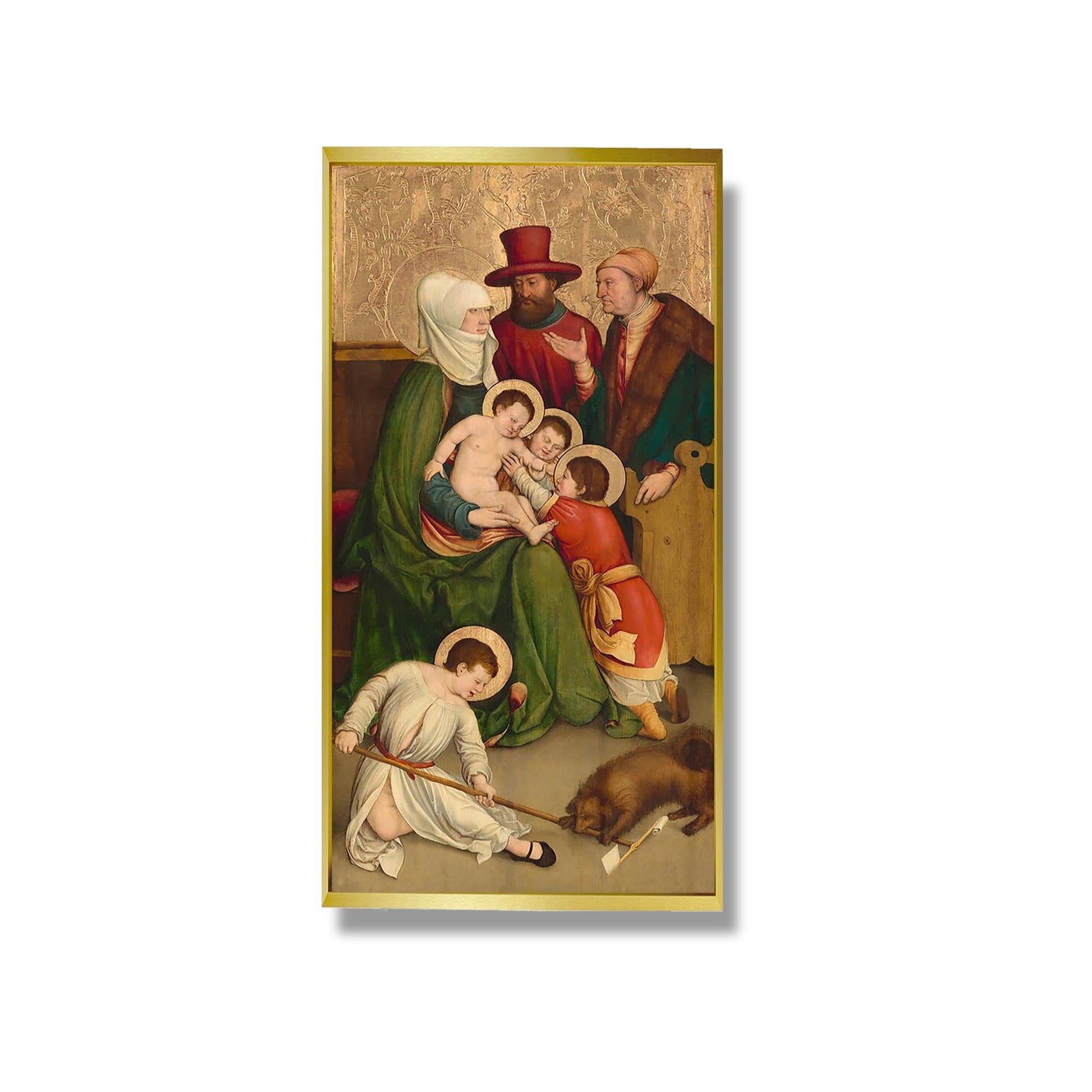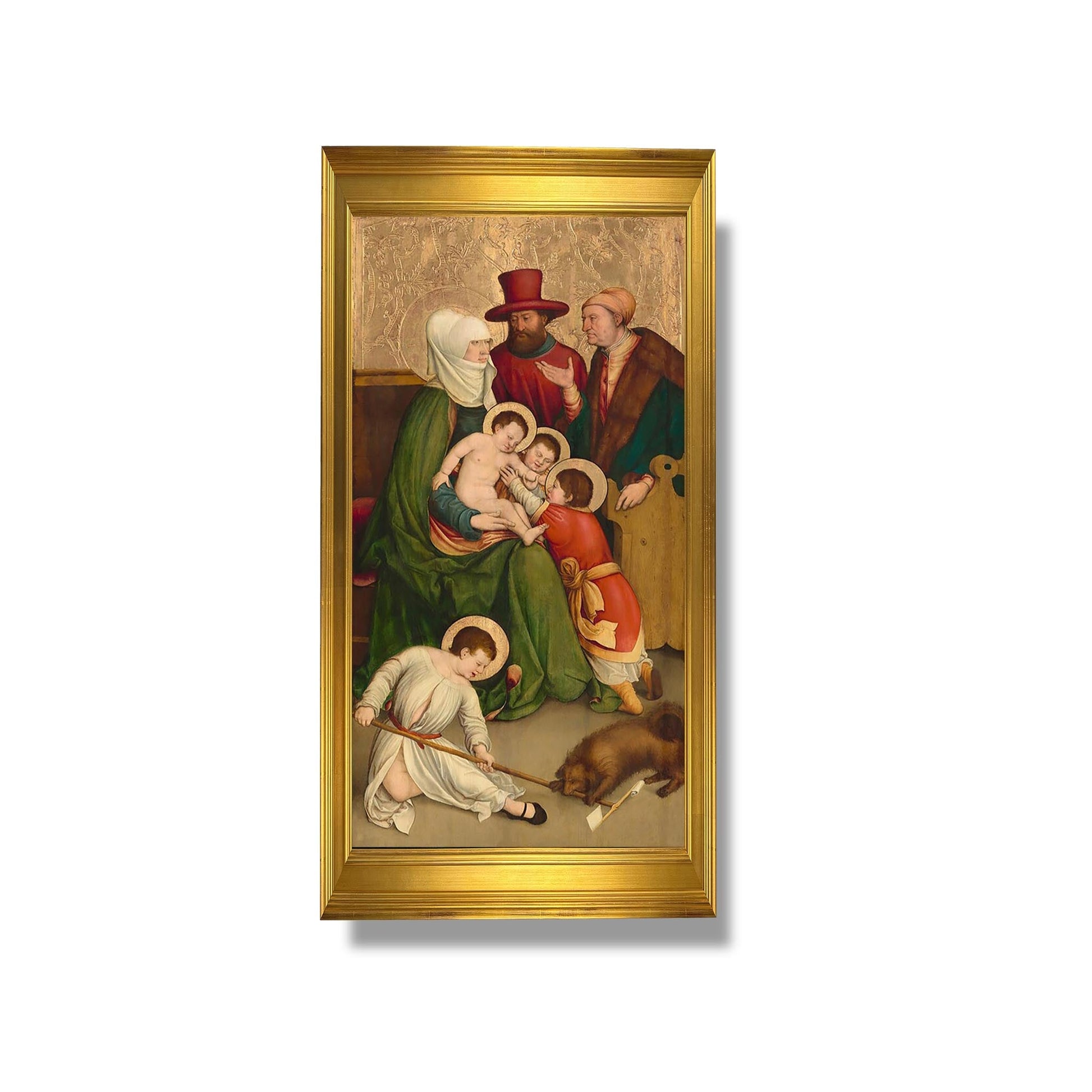 Bernhard Strigels „Die heilige Maria Kleopas und ihre Familie“, gemalt im frühen 16. Jahrhundert, ist ein ikonisches Gemälde der deutschen Renaissance. Es zeigt die Figur von Maria Kleopas, der Mutter von Jakobus dem Jüngeren, umgeben von ihren Kindern und verdeutlicht so die Bedeutung weiblicher Figuren im Christentum. Strigel, bekannt für seine Liebe zum Detail und seine meisterhafte Beherrschung der Farbe, schafft eine intime und spirituelle Atmosphäre. Der Ausdruck der Figuren sowie die prächtige Kleidung zeugen vom damaligen Alltagsleben und vermitteln zugleich eine Botschaft der Hingabe und Familie.