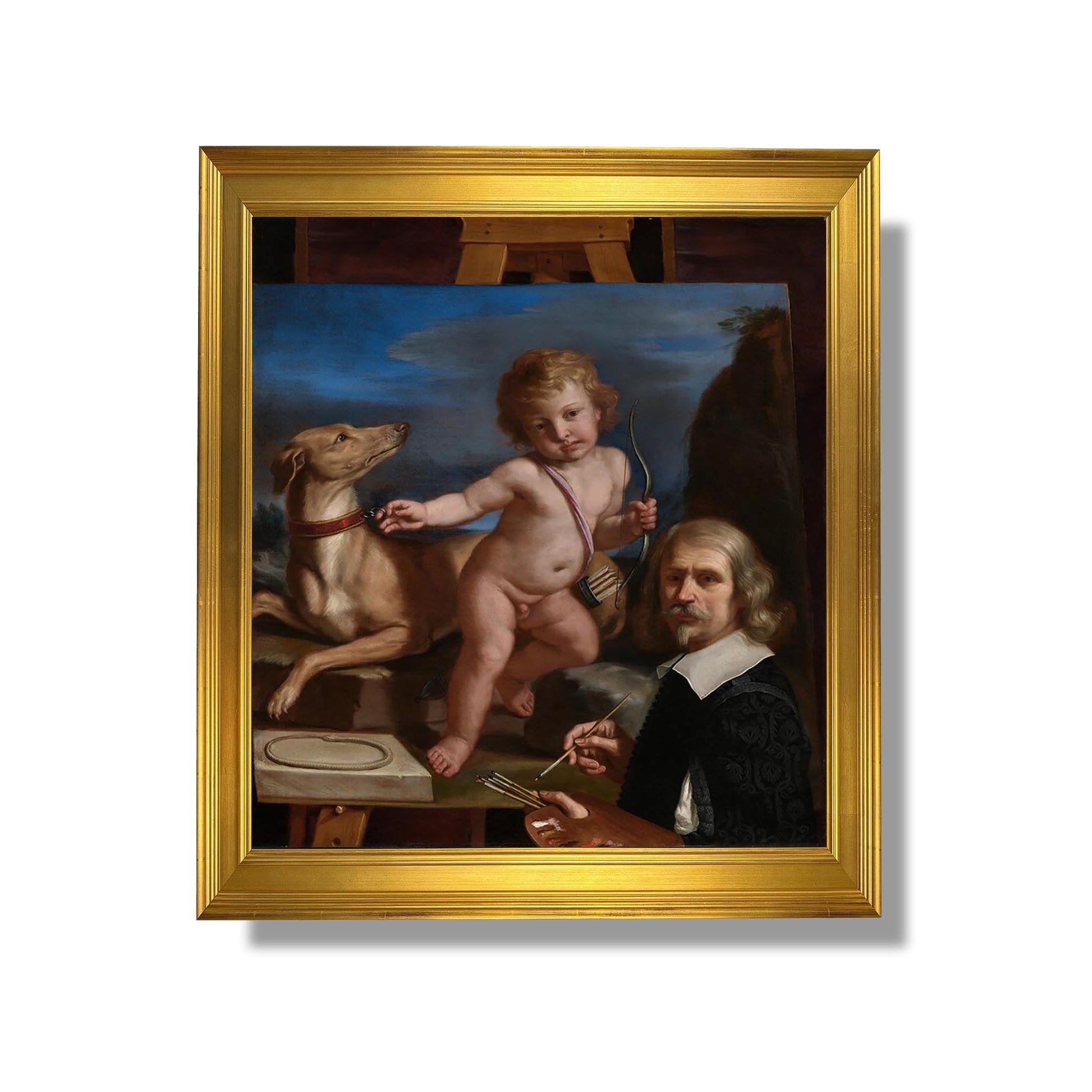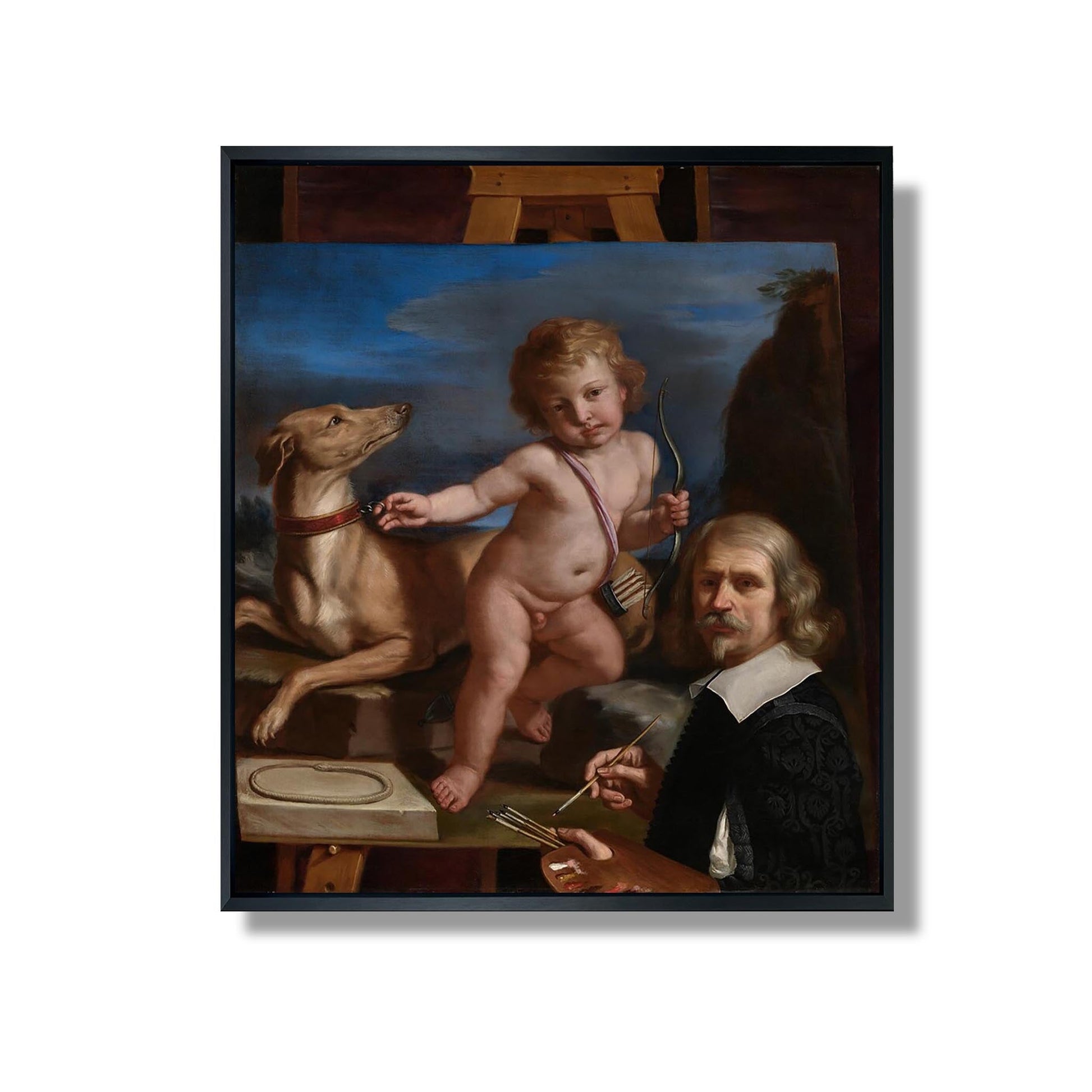 Selbstporträt vor einem Gemälde von Amor Fedele - Giovanni Francesco Barbieri, genannt Guercino