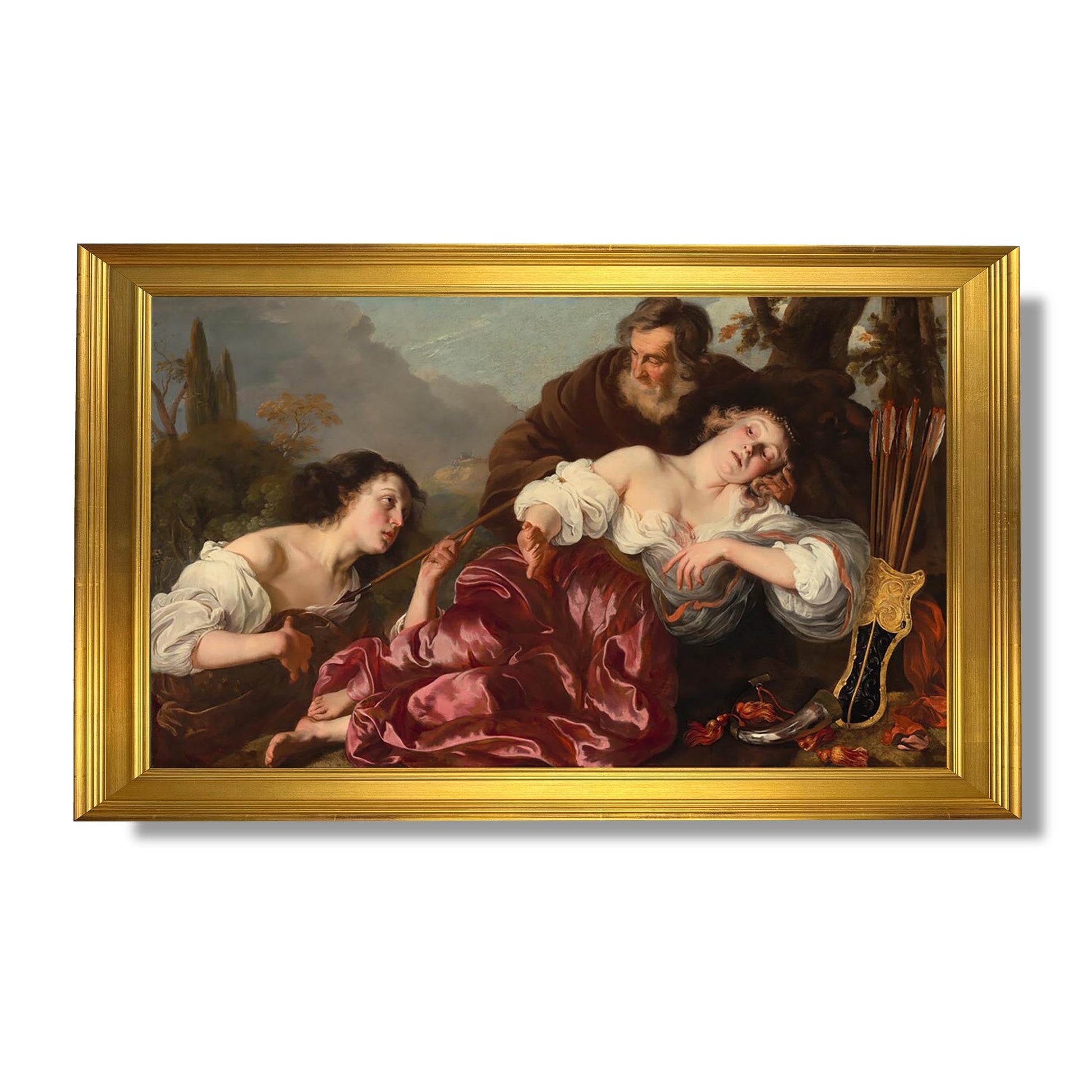„Silvio mit der verwundeten Dorinda“ ist ein eindrucksvolles Werk von Louis Vallée, das die Begegnung zwischen Schönheit und Leid illustriert. In dieser ergreifenden Szene unterstützt Silvio, eine mitfühlende Figur, Dorinda, eine verletzte Frau, und symbolisiert so die menschliche Verletzlichkeit. Vallée verwendet lebendige Farben und ausdrucksstarke Details, um die emotionale Intensität des Augenblicks einzufangen. Das Werk ruft universelle Themen wie Liebe, Schmerz und Widerstandskraft hervor. Durch diese Darstellung lädt der Künstler den Betrachter ein, über die Zerbrechlichkeit des Lebens und die Stärke menschlicher Bindungen nachzudenken.