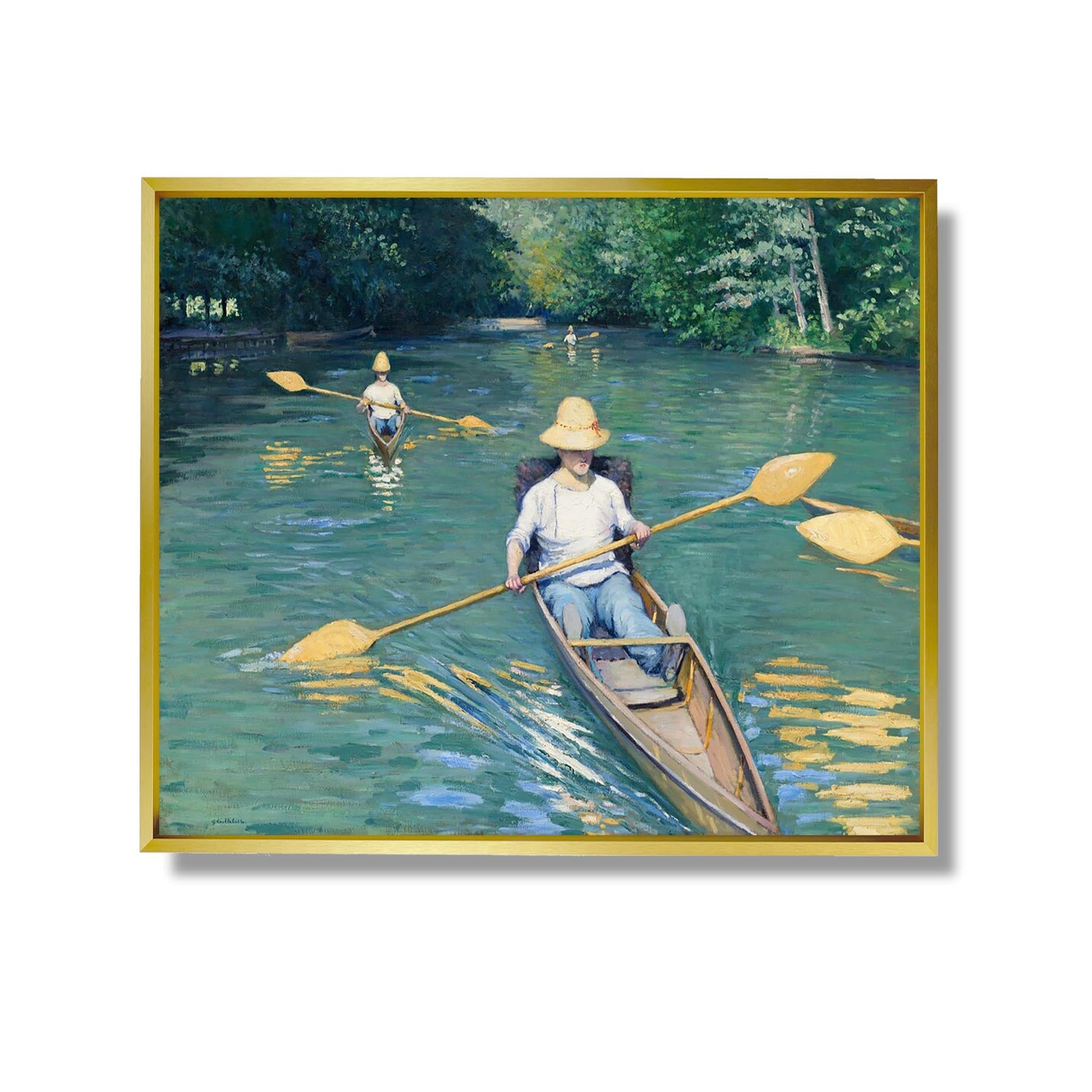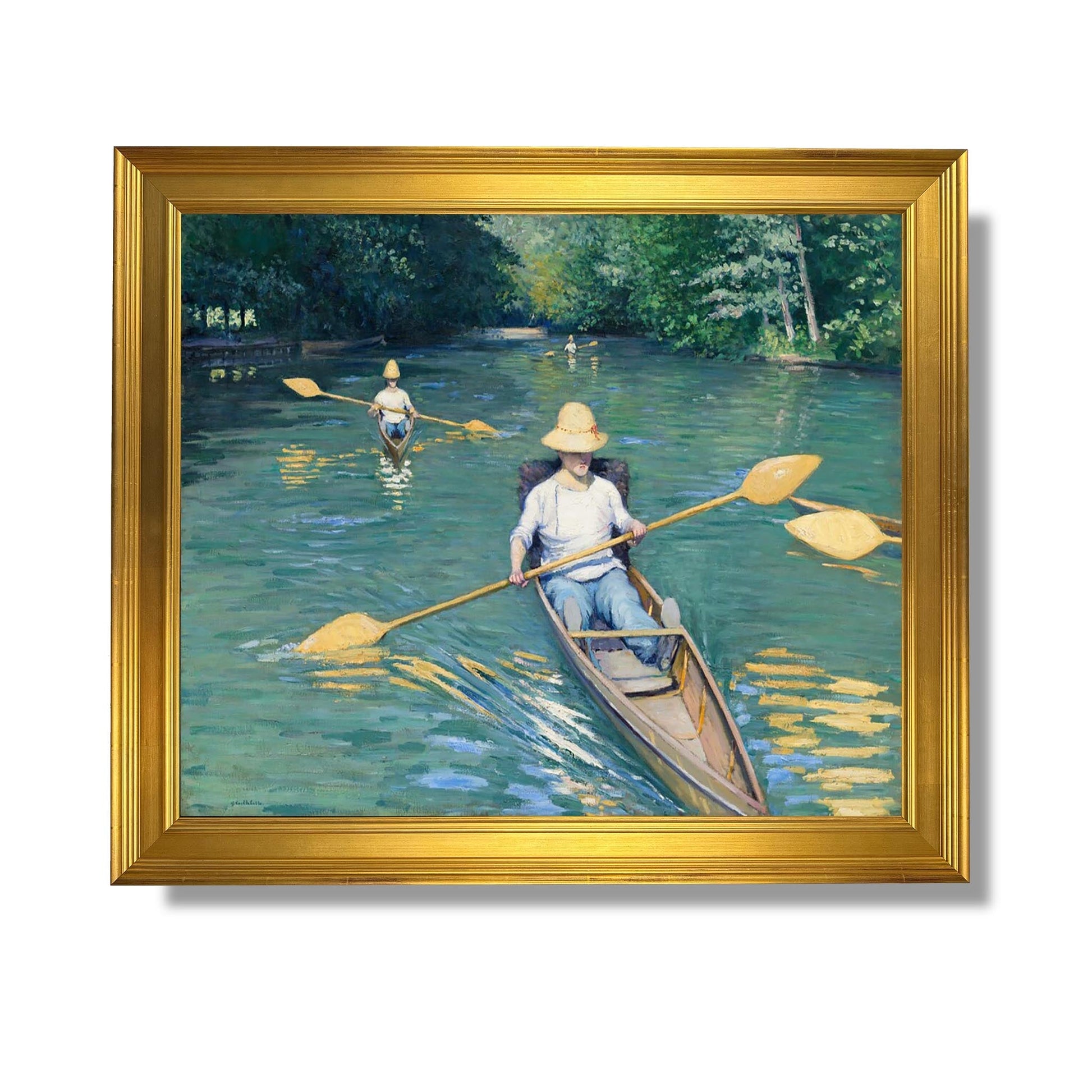 „Skiffs“ ist ein ikonisches Werk von Gustave Caillebotte, gemalt im Jahr 1877. Dieses impressionistische Gemälde fängt eine Freizeitszene auf der Seine ein, wo Kanus friedlich über das Wasser gleiten. Die Komposition hebt Perspektive und Licht hervor, Merkmale von Caillebottes Stil. Die menschlichen Figuren sind zwar vorhanden, aber gegenüber der umgebenden Natur zweitrangig. Der Künstler verwendet leuchtende Farben und dynamische Pinselstriche, um Bewegung und Ruhe hervorzurufen. „Skiffs“ veranschaulicht perfekt die Harmonie zwischen dem Menschen und seiner Umwelt und zeugt gleichzeitig von der Entwicklung der Malerei zu dieser Zeit.