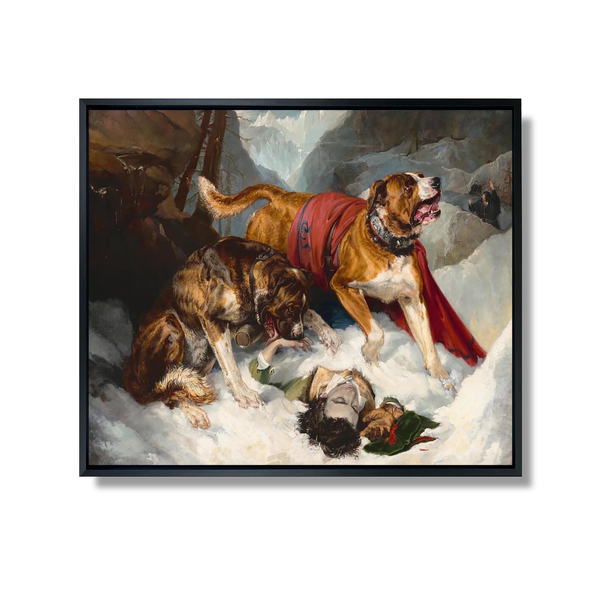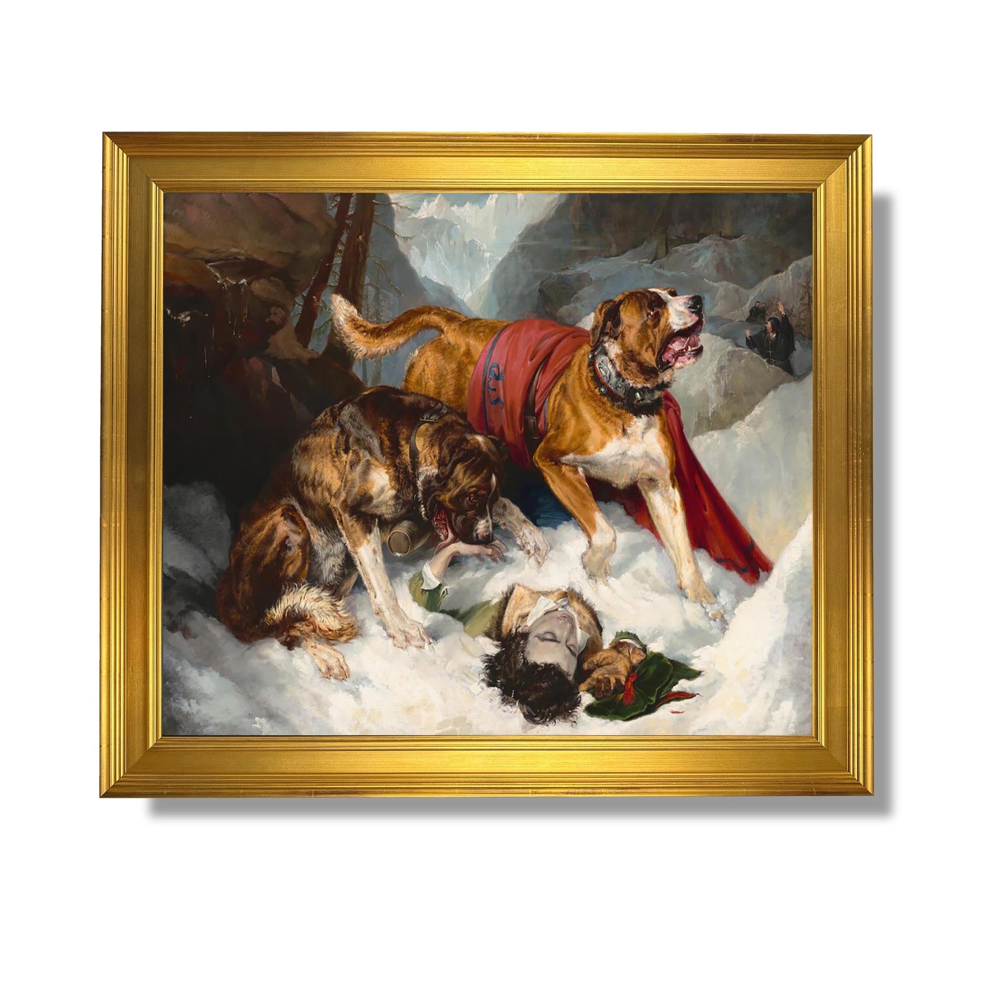 Sir Edwin Landseer, ein britischer Maler des 19. Jahrhunderts, ist berühmt für seine Tierdarstellungen, darunter sein ikonisches Werk „Bernhardinerhunde“. Dieses Gemälde veranschaulicht die Noblesse und Treue der Bernhardiner, die oft mit Rettungseinsätzen in den Schweizer Alpen in Verbindung gebracht werden. Landseer fängt die Majestät dieser Tiere durch realistische Details und sanftes Licht ein und ruft so sowohl ihre Stärke als auch ihre Zartheit hervor. Das Werk zeigt die Zuneigung des Künstlers zur Natur und den Tieren und betont gleichzeitig die tiefe Bindung zwischen dem Menschen und seinem treuen Begleiter.