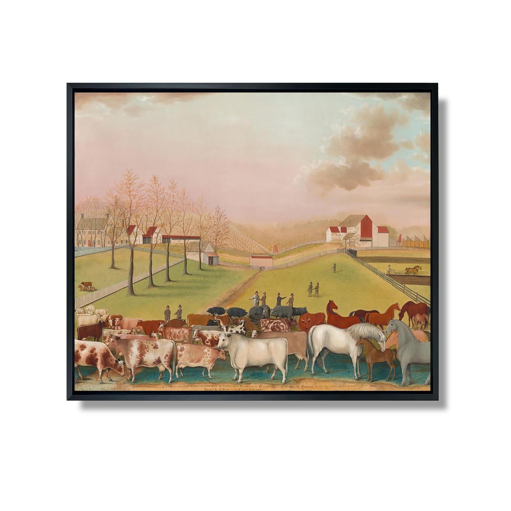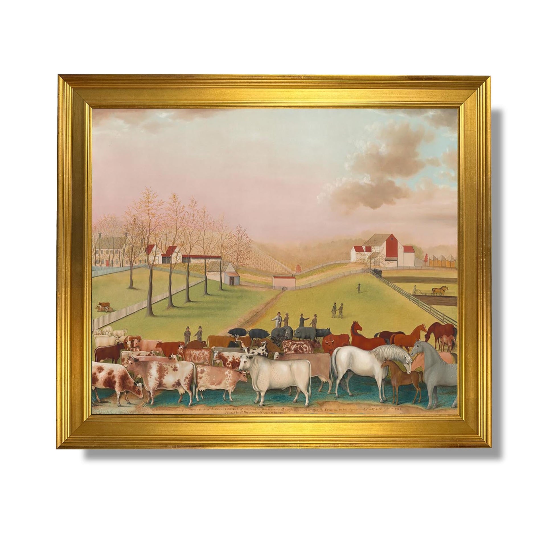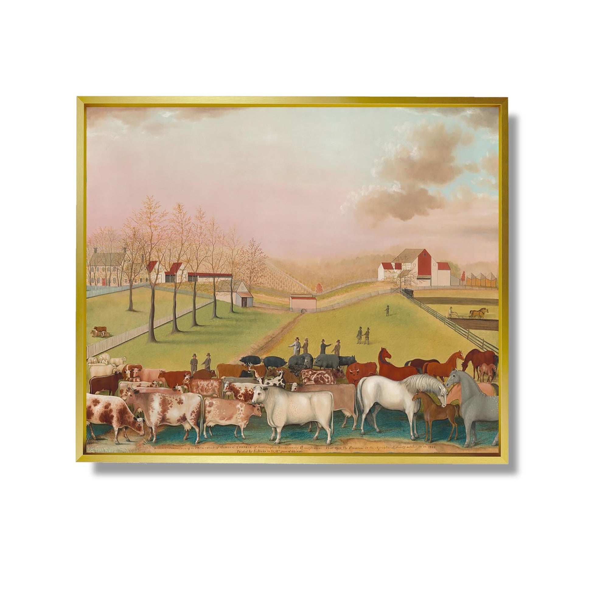 „The Cornell Farm“ ist ein ikonisches Werk von Edward Hicks, einem amerikanischen Maler des 19. Jahrhunderts, der für seine naiven und witzigen Darstellungen bekannt ist. Dieses um 1845 gemalte Gemälde illustriert die utopische Vision von Frieden und Harmonie zwischen Mensch und Tier, inspiriert von der Bibelstelle zum Weltfrieden. Hicks stellt eine idyllische Farm dar, auf der Wild- und Haustiere friedlich zusammenleben, und symbolisiert damit die Hoffnung auf eine versöhnte Welt. Sein naiver und farbenfroher Stil, kombiniert mit religiösen Themen, macht dieses Werk zu einem ergreifenden Zeugnis der Suche nach Frieden und menschlicher Natur.