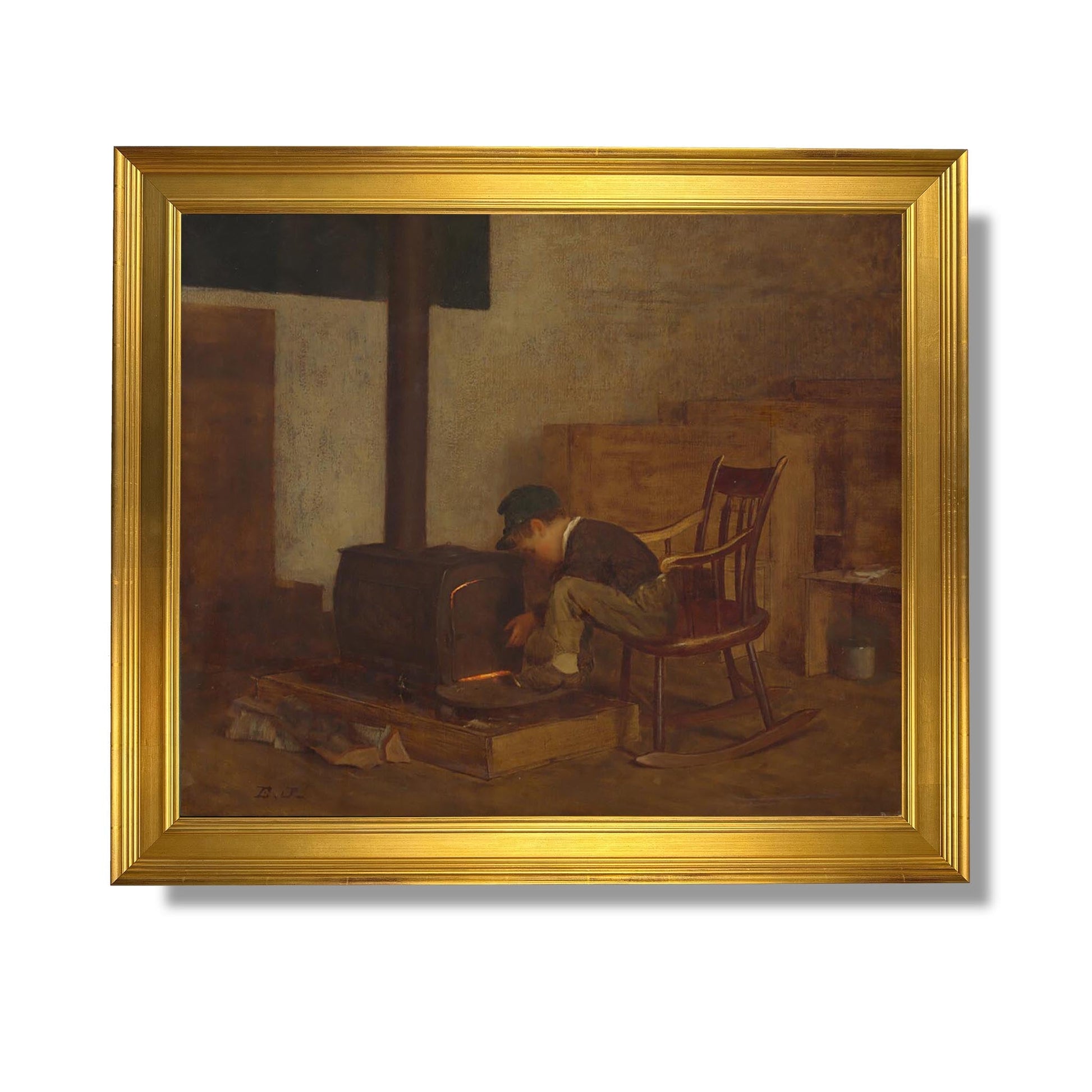 „The Early Scholar“ ist ein ikonisches Werk des amerikanischen Künstlers Eastman Johnson aus dem Jahr 1856. Dieses Gemälde zeigt einen kleinen Jungen, der in eine Lektüre vertieft an einem Holztisch sitzt und von Büchern und Lernobjekten umgeben ist. Johnson, bekannt für seine Porträts und Szenen aus dem Alltag, fängt hier die Unschuld und intellektuelle Neugier der Kindheit ein. Das sanfte Licht, das das Gesicht des Jungen erhellt, unterstreicht sein Engagement und seine Konzentration. Mit diesem Werk unterstreicht Johnson die Bedeutung von Bildung und Kultur und bietet gleichzeitig einen intimen Einblick in das Familienleben im 19. Jahrhundert.