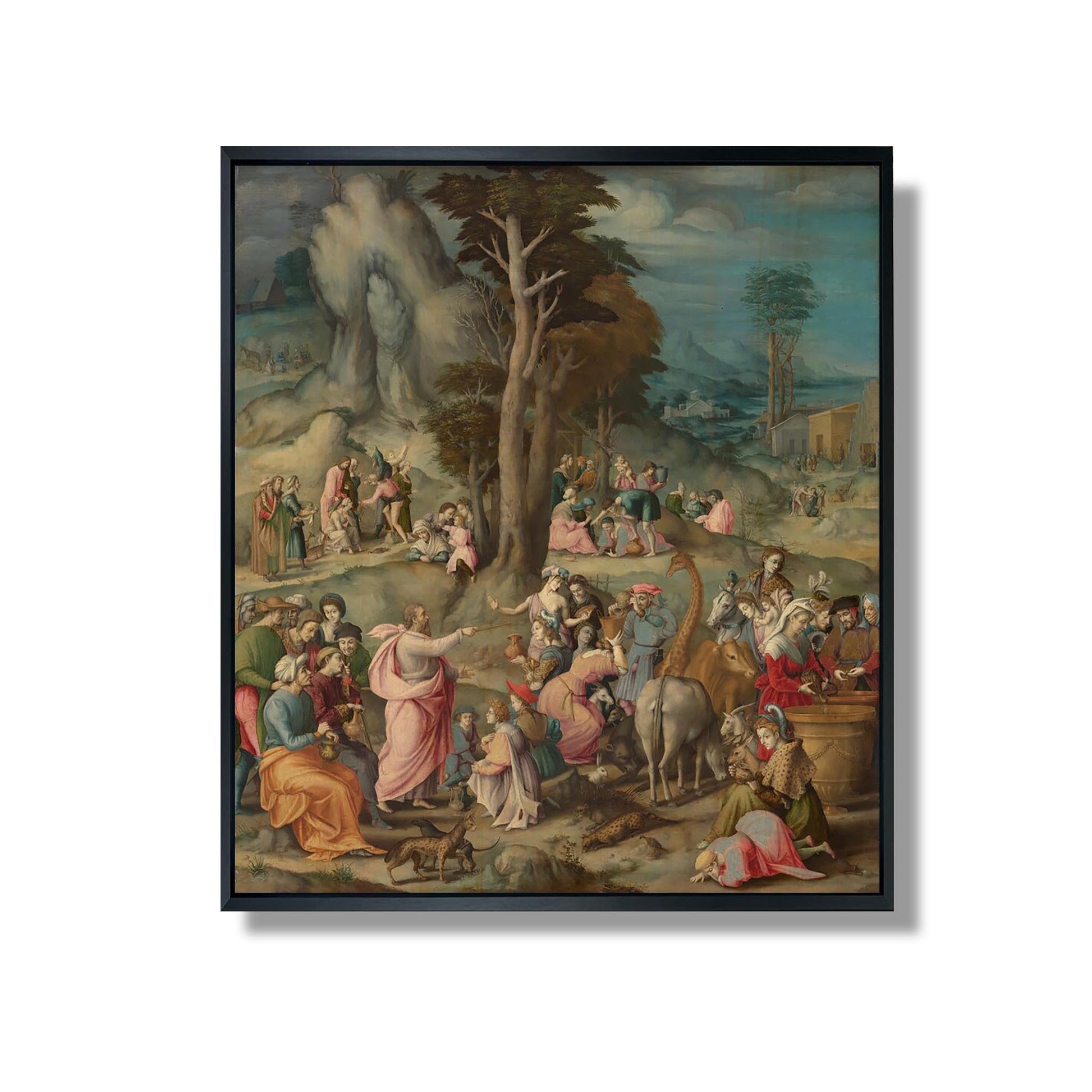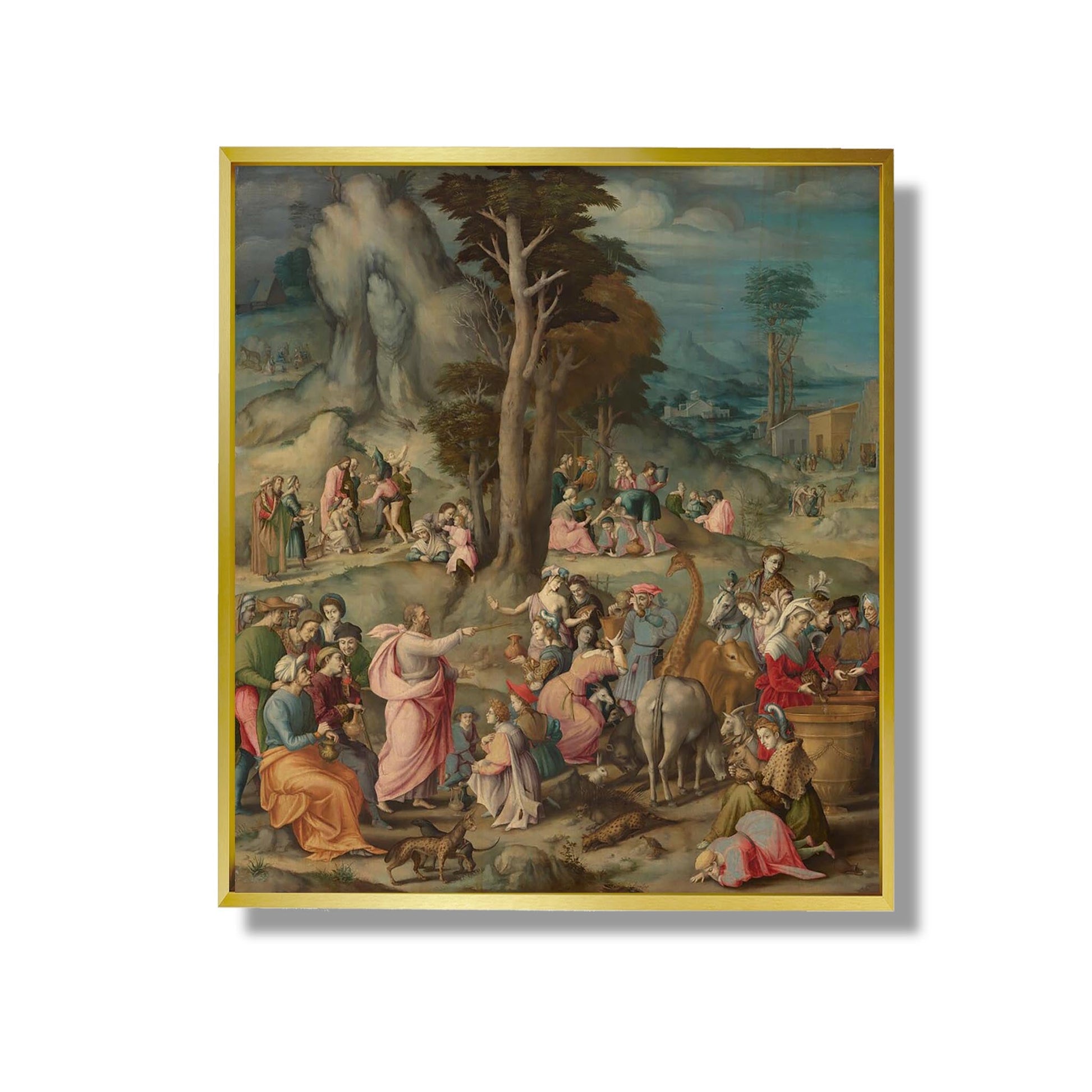 „Die Sammlung des Manna“ ist ein ikonisches Werk von Bachiacca, einem Florentiner Maler des 16. Jahrhunderts. Dieses um 1540 entstandene Gemälde illustriert eine biblische Episode, in der das Volk Israel in der Wüste Manna erhält. Bachiacca, bekannt für seinen raffinierten Stil und seine akribische Detailgenauigkeit, verwendet lebendige Farben und eine dynamische Komposition, um die Szene einzufangen. Die Charaktere werden mit großer Ausdruckskraft dargestellt und spiegeln sowohl Leid als auch Hoffnung wider. Das Werk zeugt vom Einfluss der italienischen Renaissance, vermischt Spiritualität und Humanismus und hebt gleichzeitig die Schönheit der umgebenden Natur hervor.